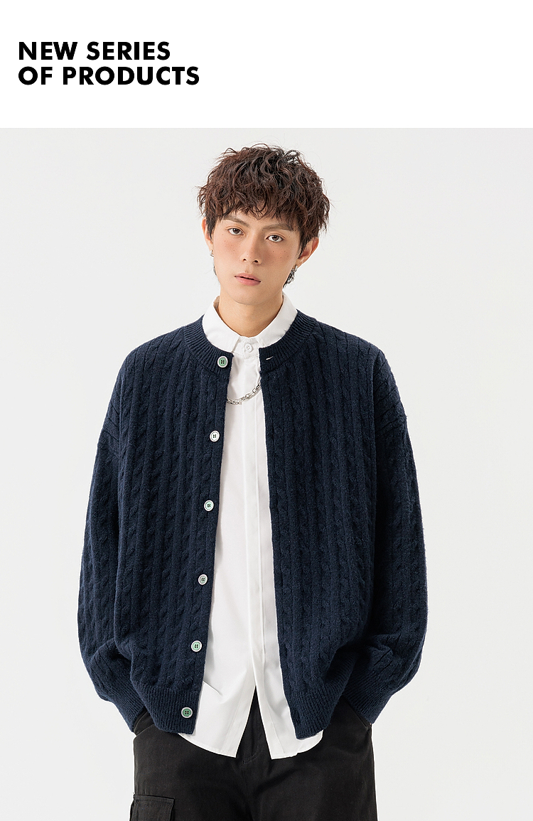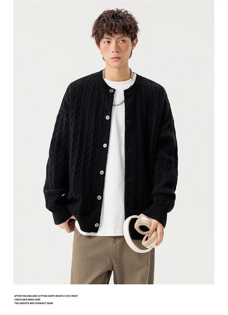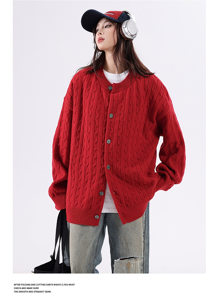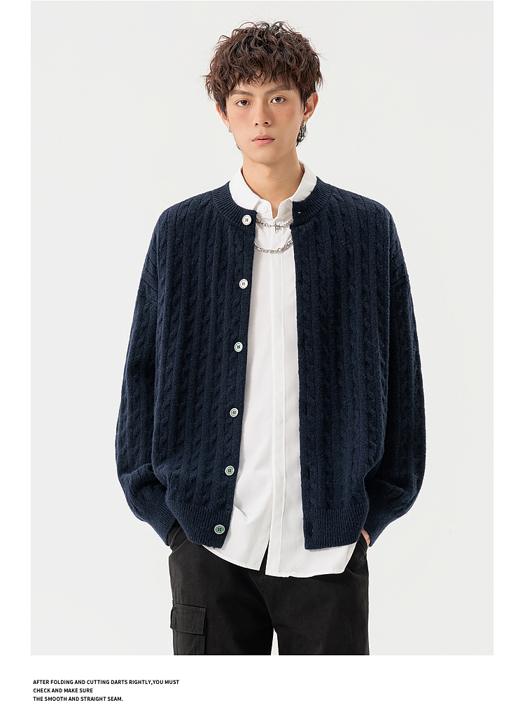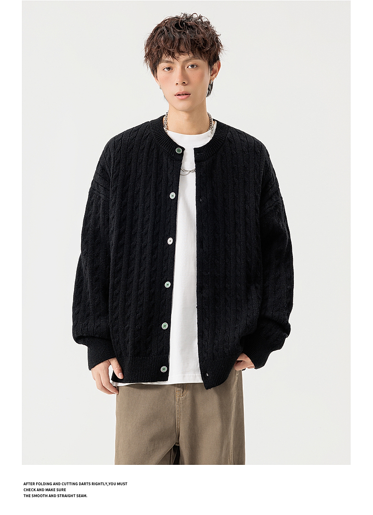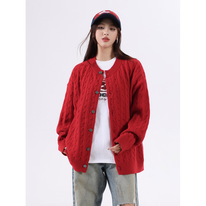 悟空有貨復古絞花紋理感開衫毛衣男女秋季慵懶寬松情侶休閒針織衫