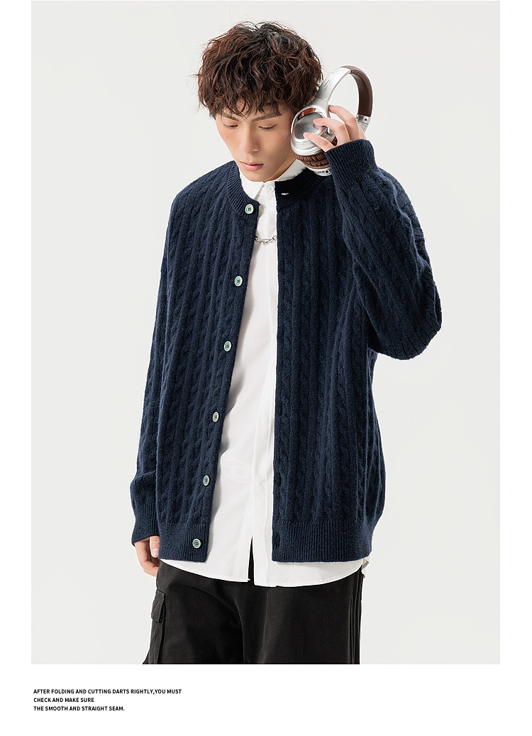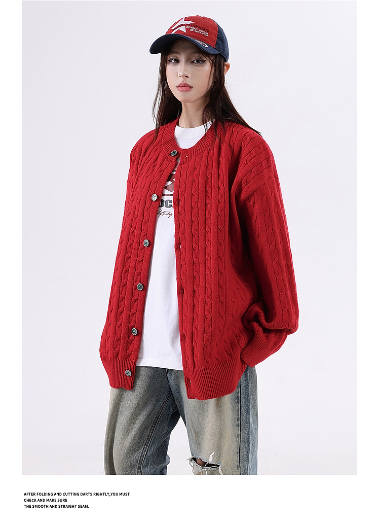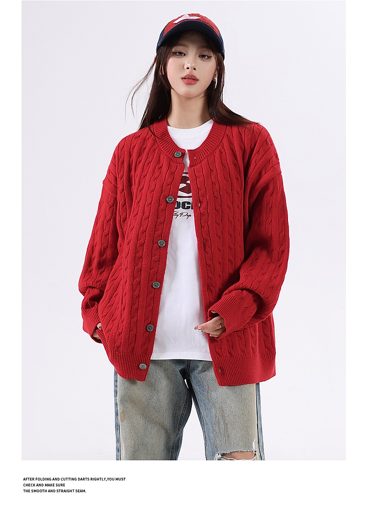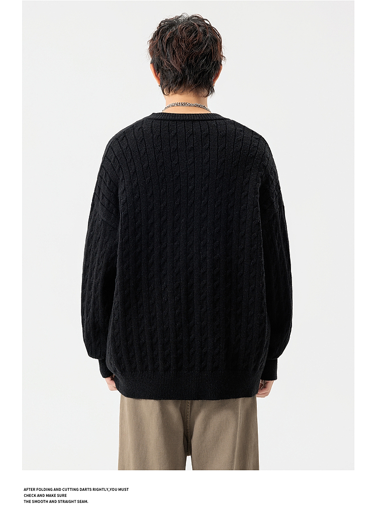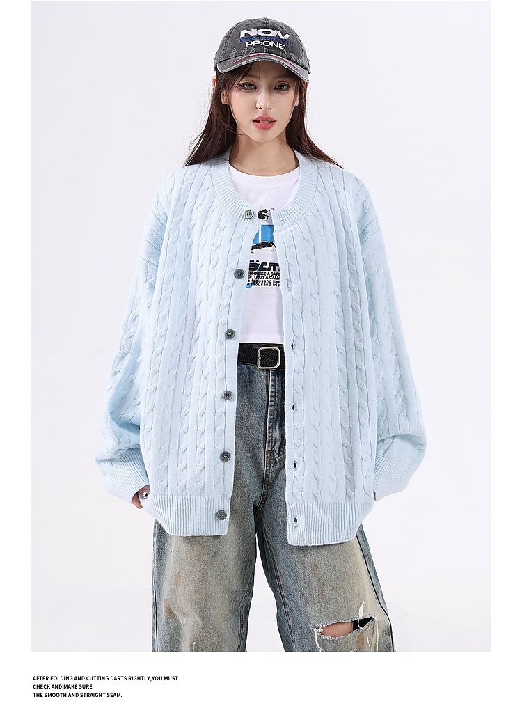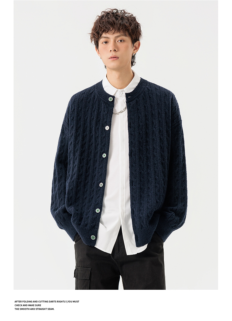 悟空有貨復古絞花紋理感開衫毛衣男女秋季慵懶寬松情侶休閒針織衫