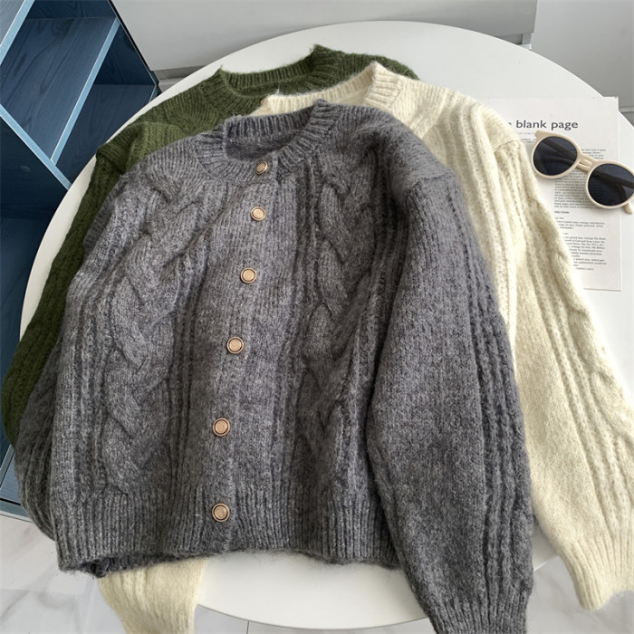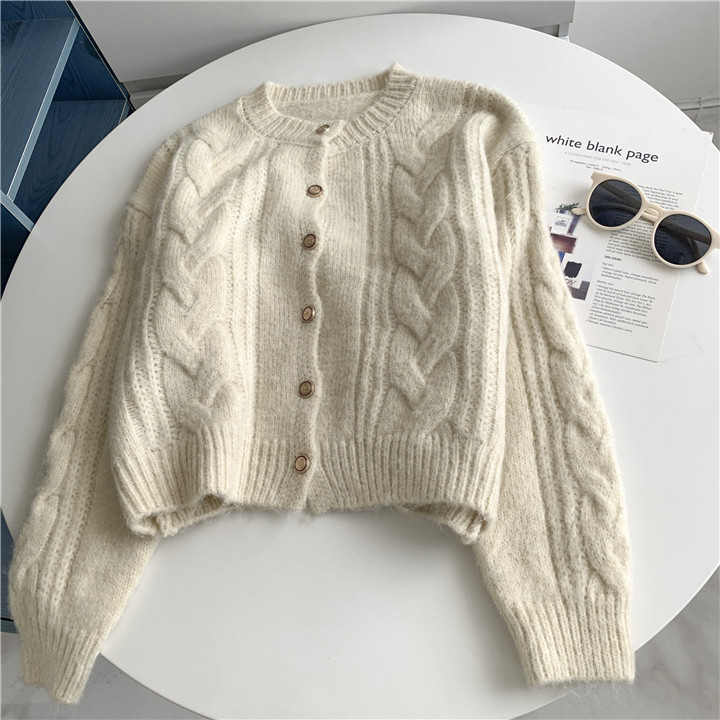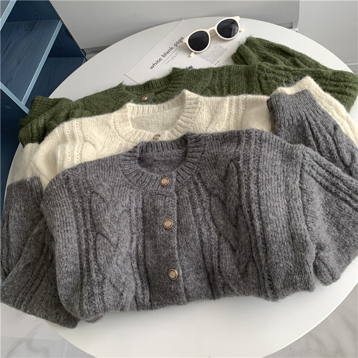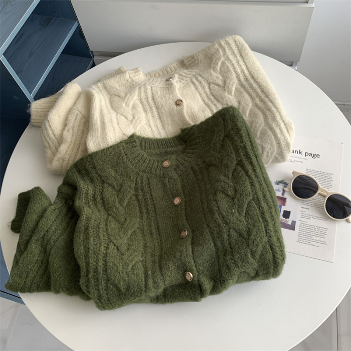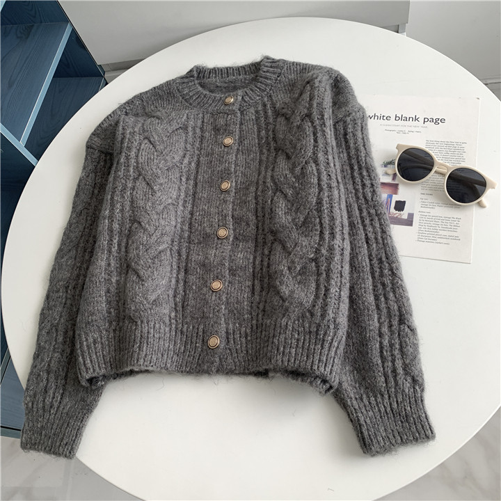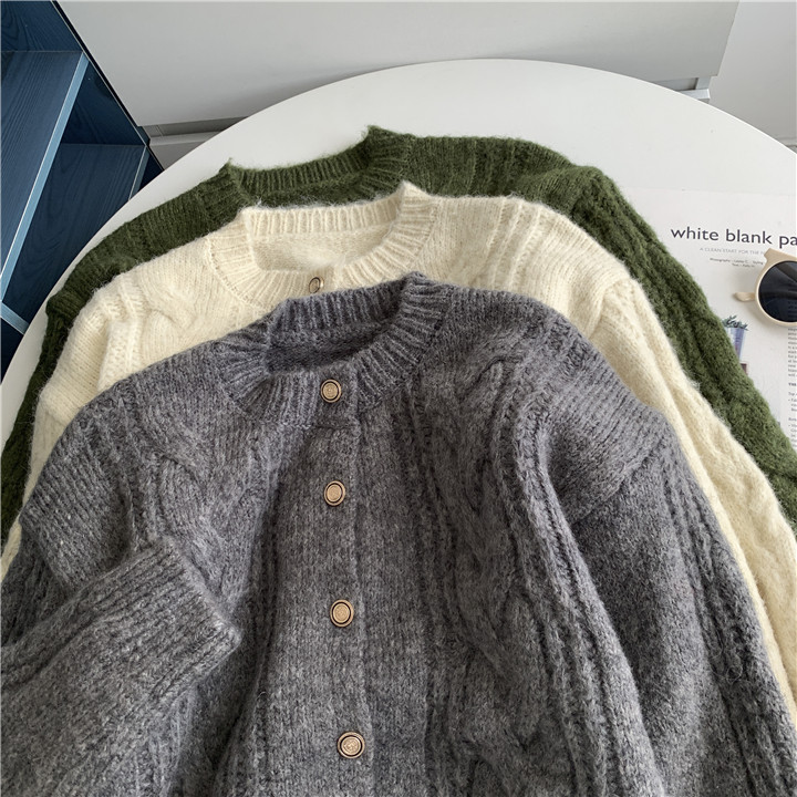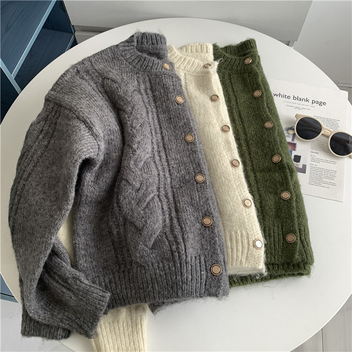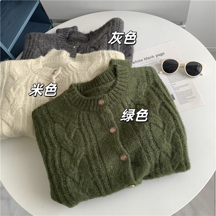 復古日系糯米小金釦毛衣開衫外套韓系高級感小香風爆款針織上衣新