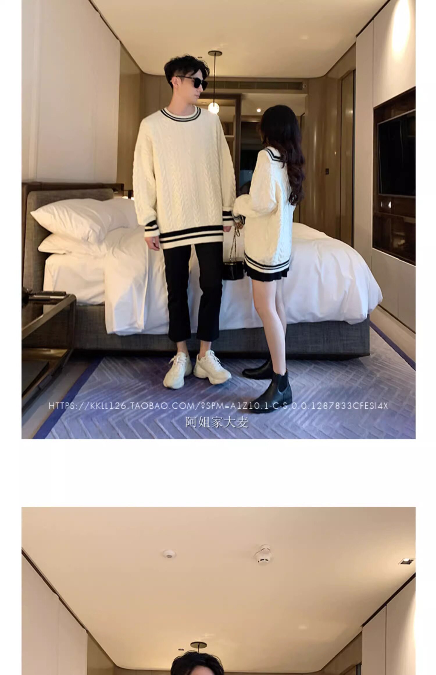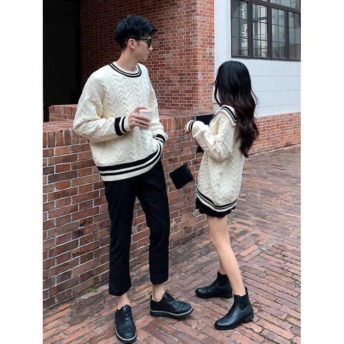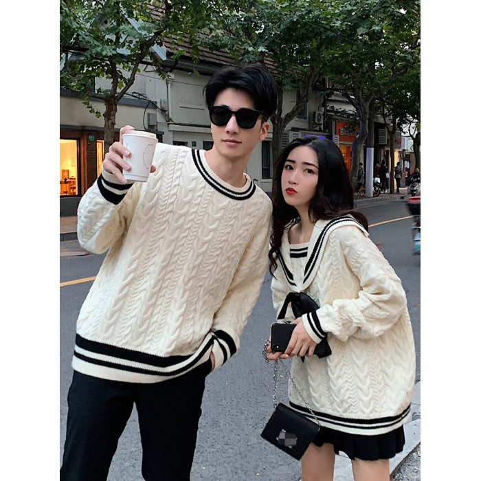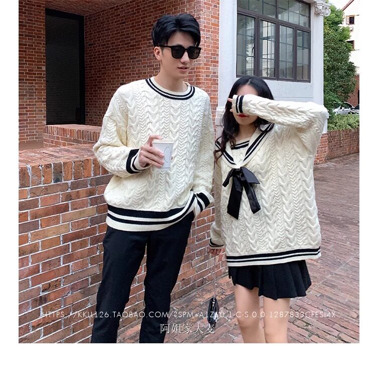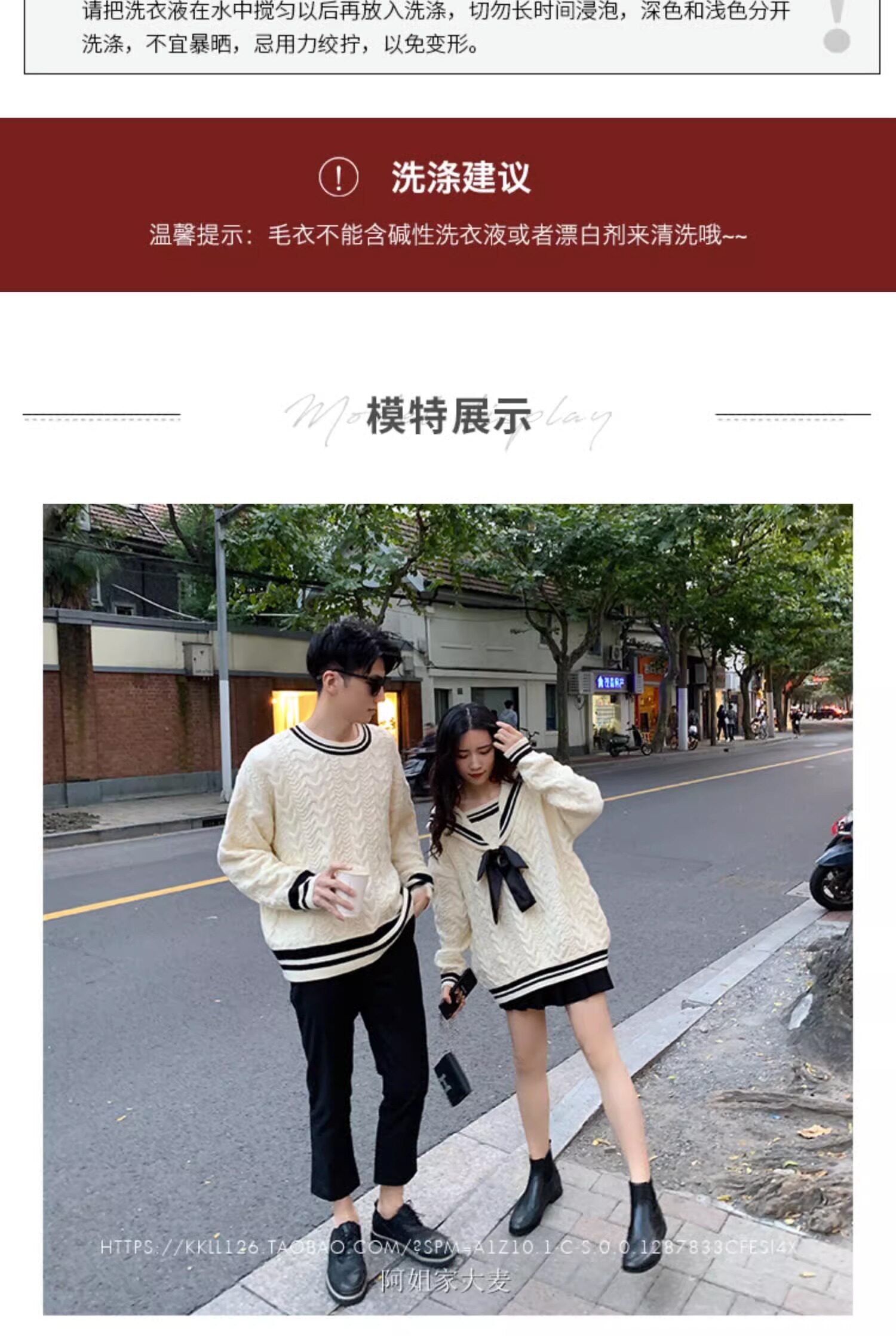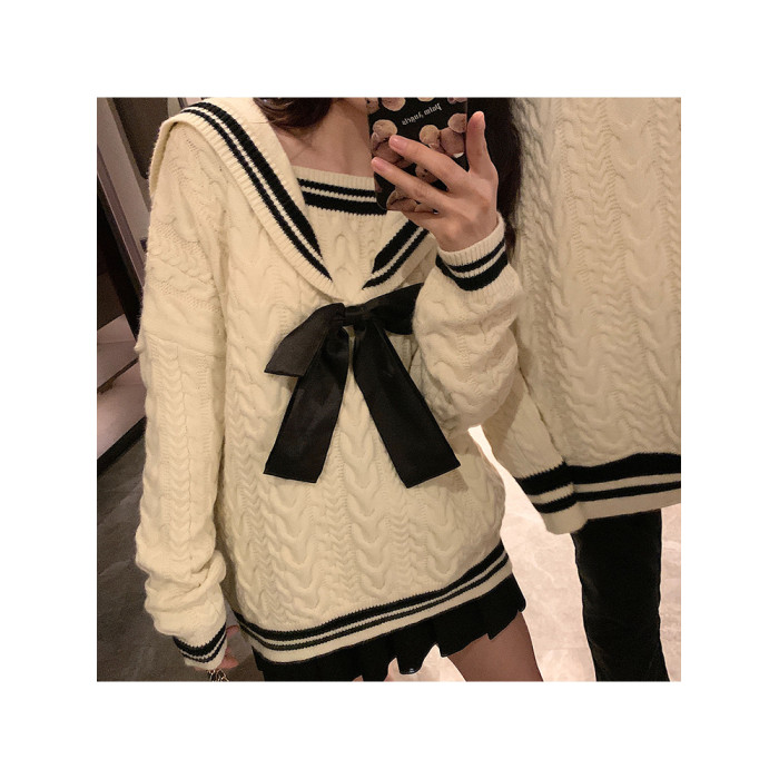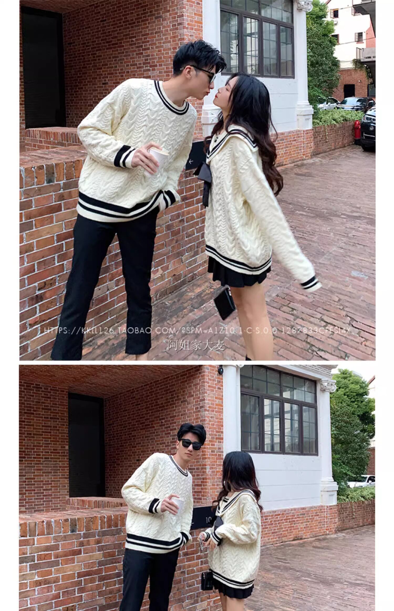 情侶裝春季2025新款潮流復古蝴蝶結針織衫上衣學院風海軍領毛衣女