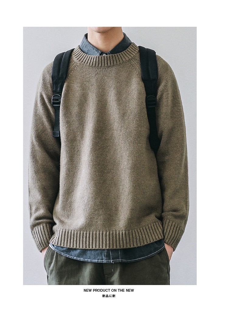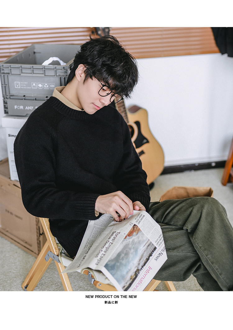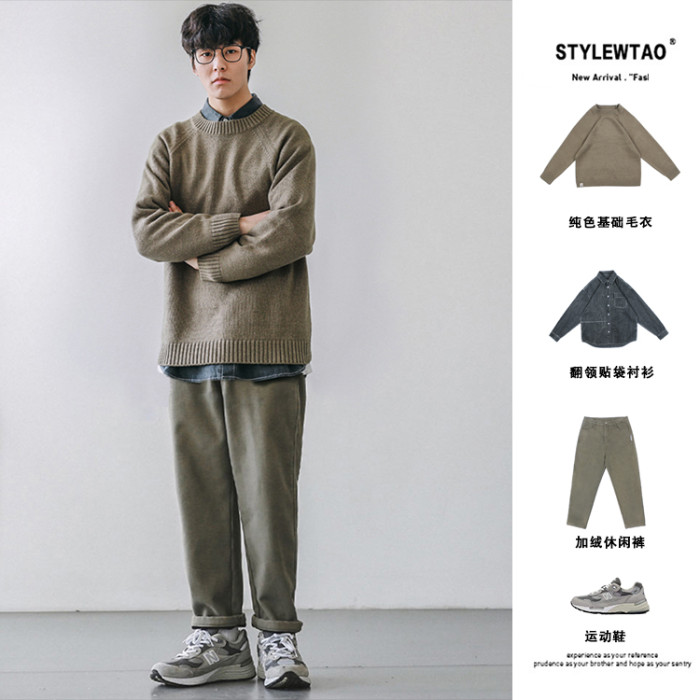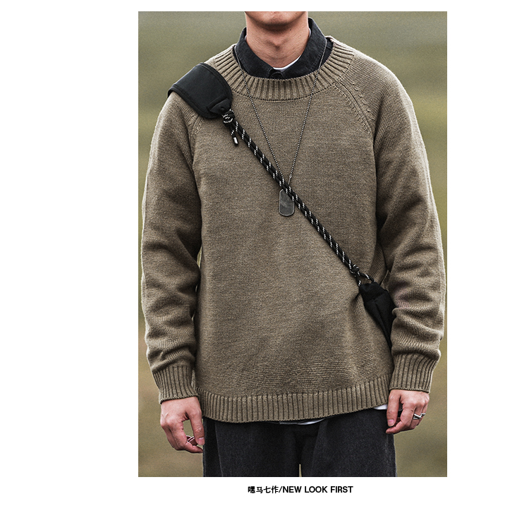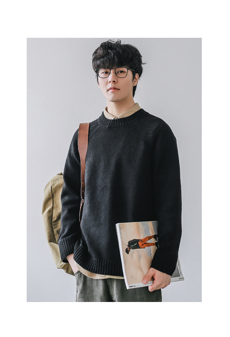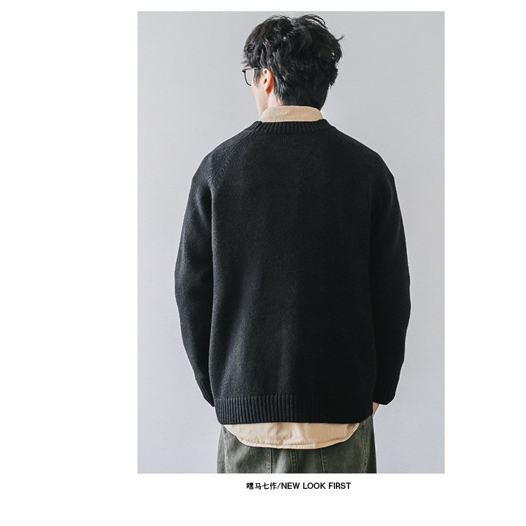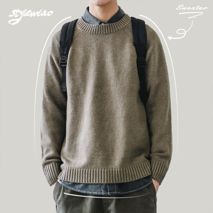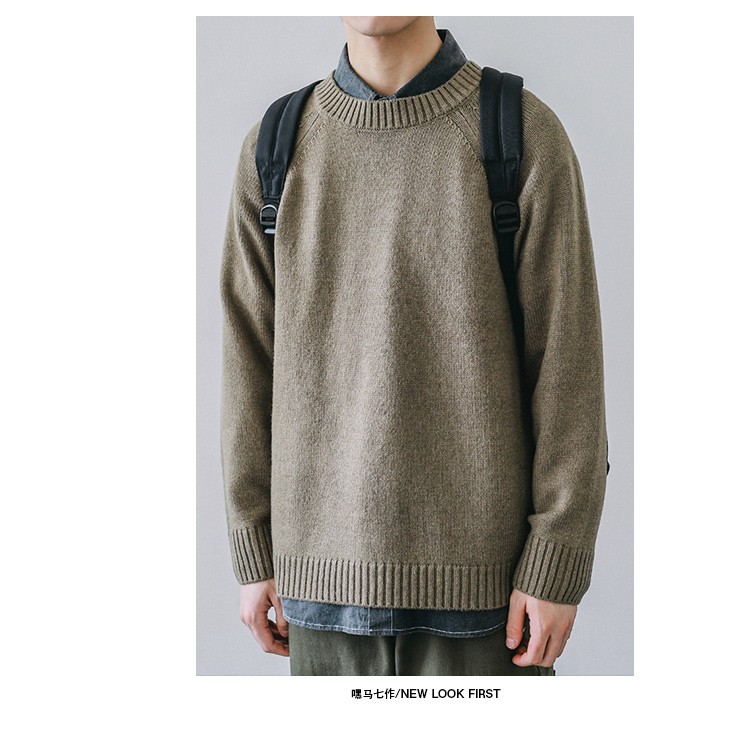 HEEMKIZOO日系秋冬季新款圓領純色毛衣男寬松針織衫情侶線衣潮牌