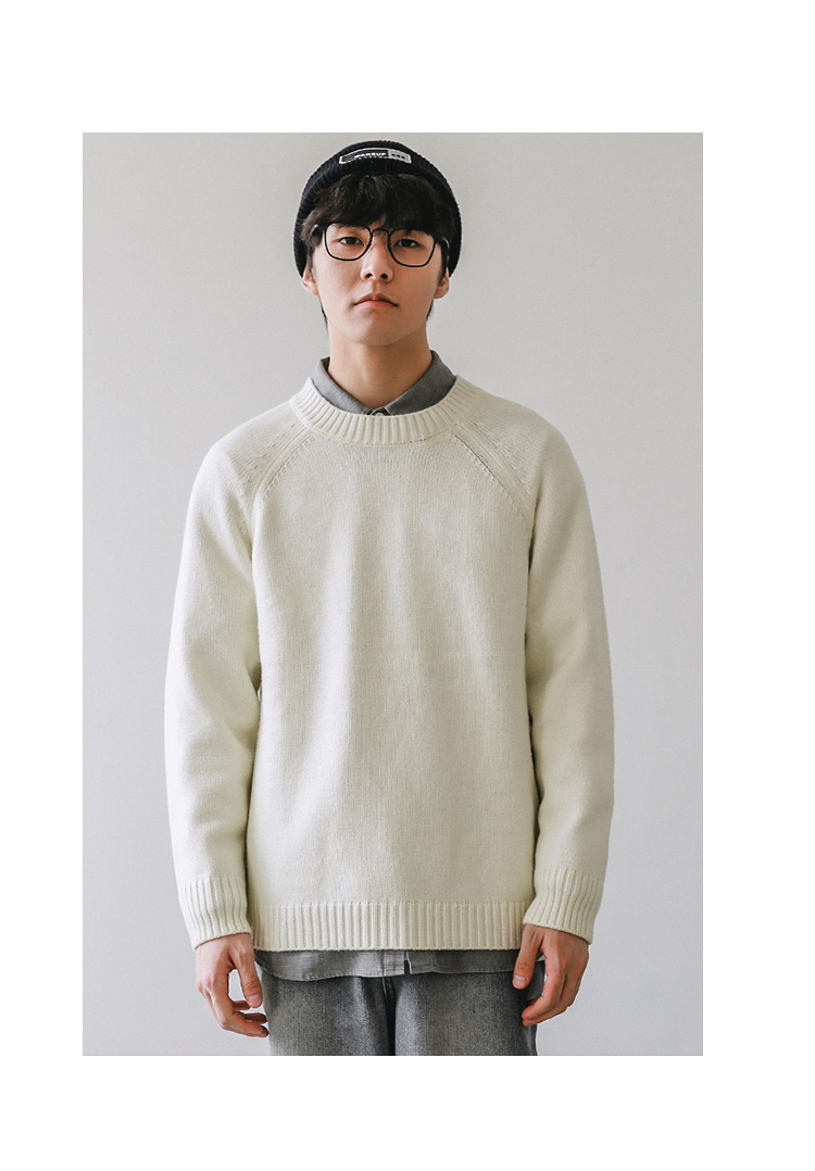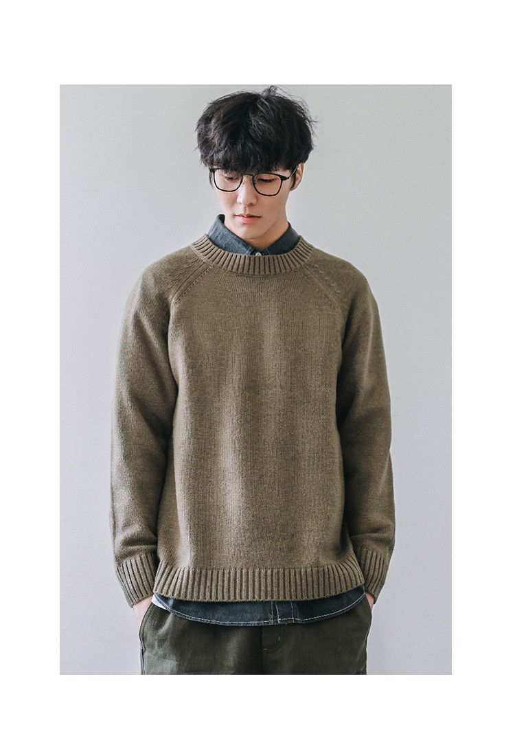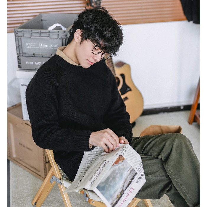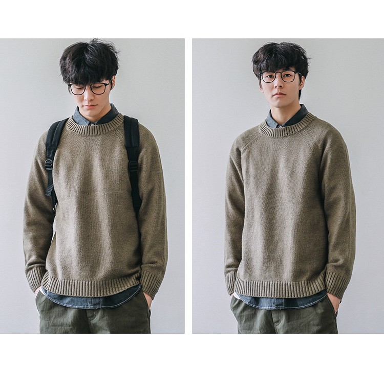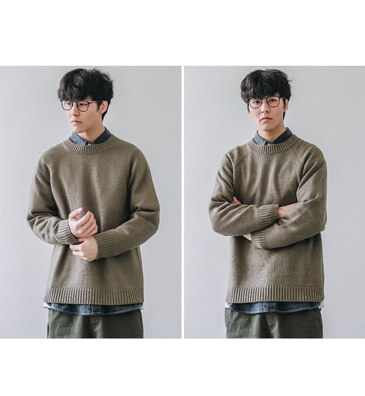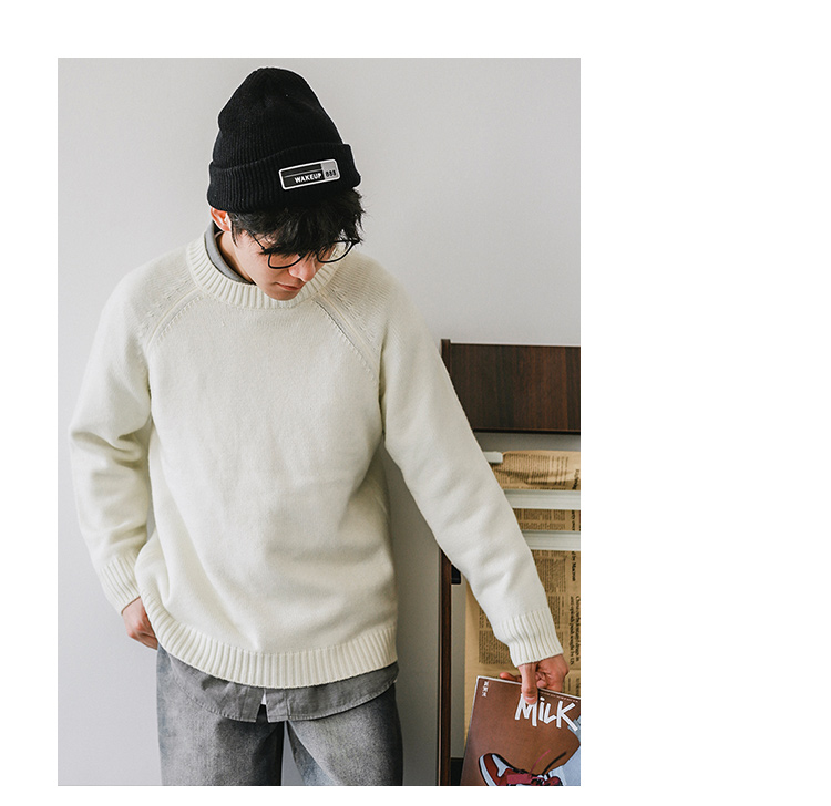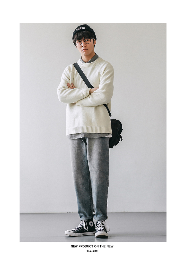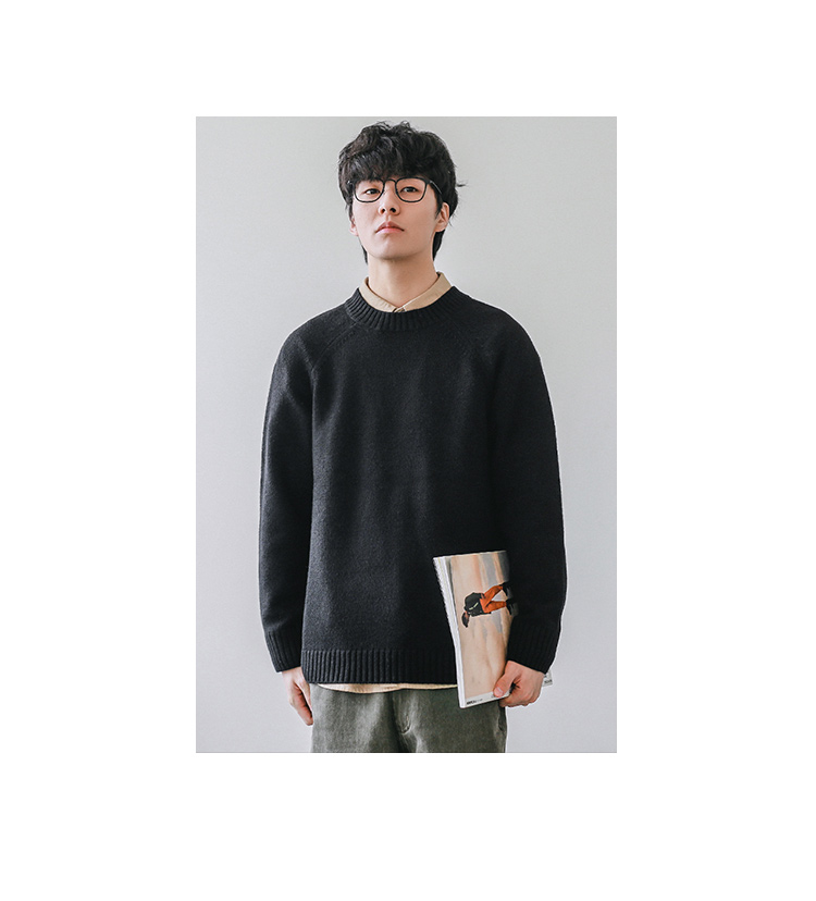 HEEMKIZOO日系秋冬季新款圓領純色毛衣男寬松針織衫情侶線衣潮牌