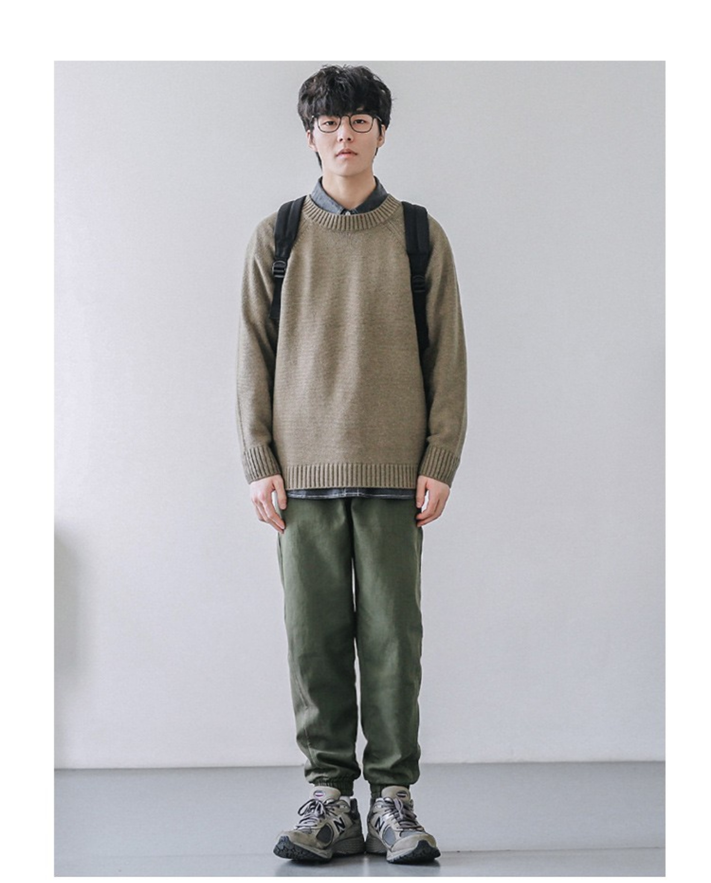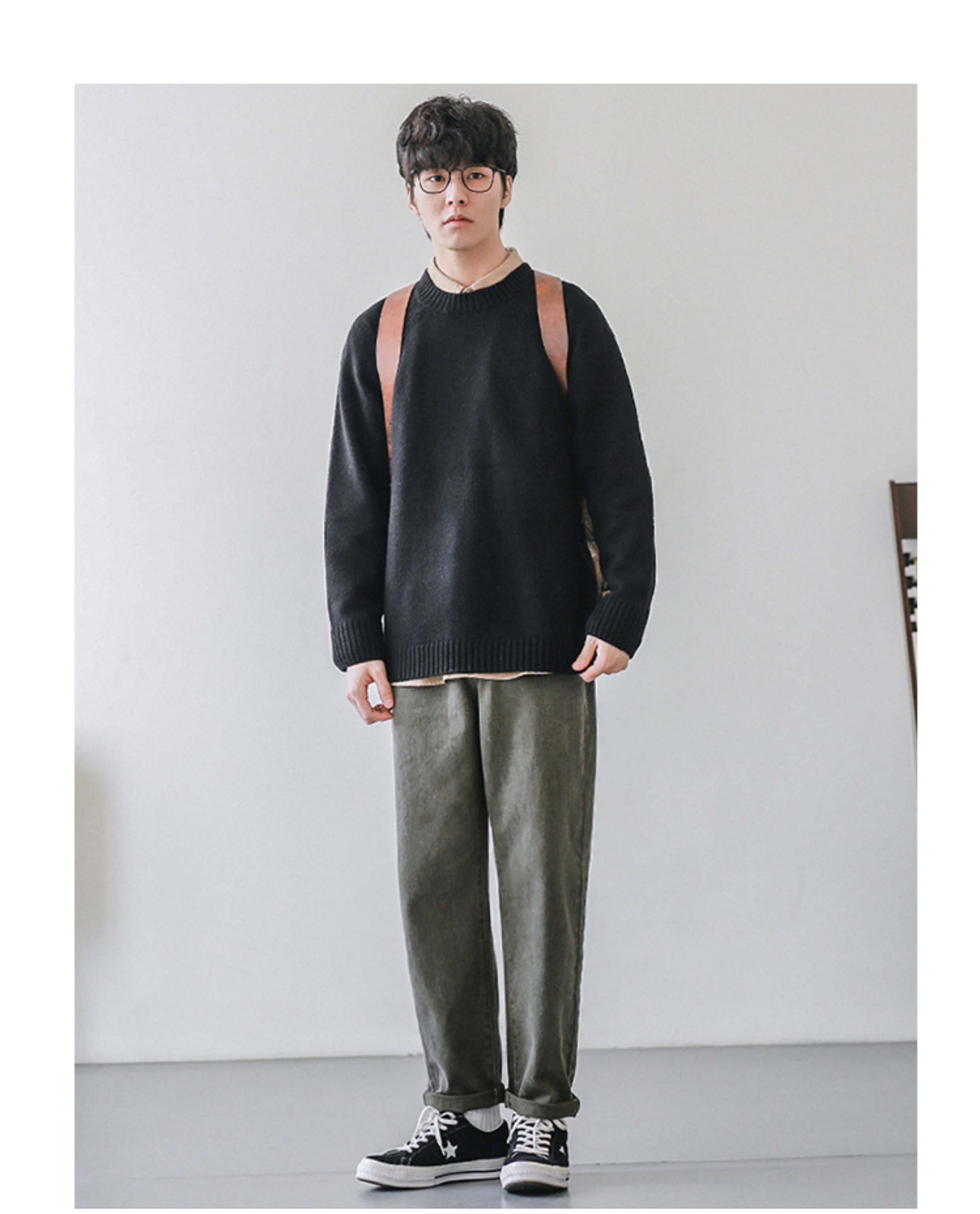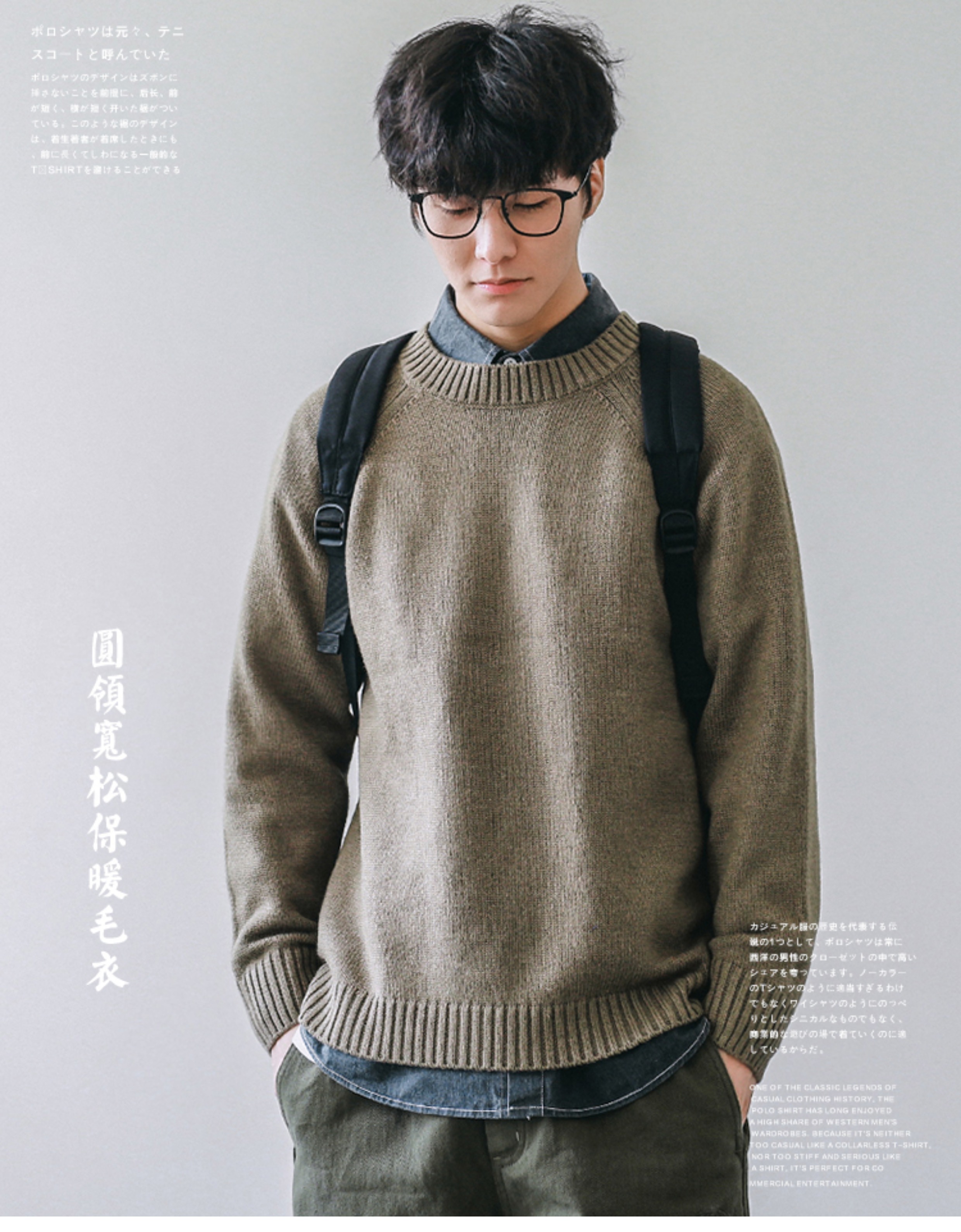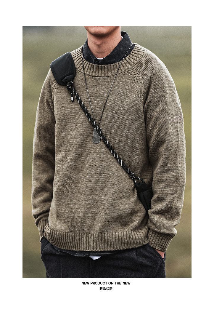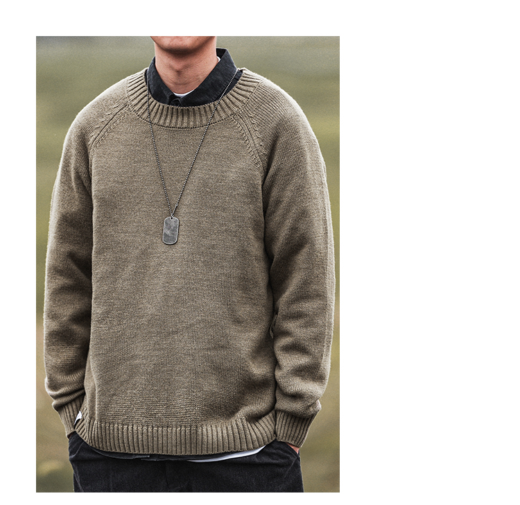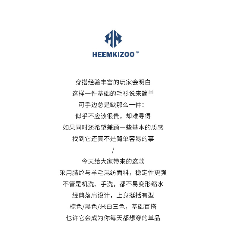 HEEMKIZOO日系秋冬季新款圓領純色毛衣男寬松針織衫情侶線衣潮牌