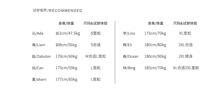 | 版型分類 | 寬松型 |