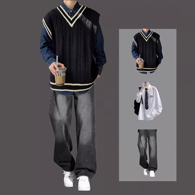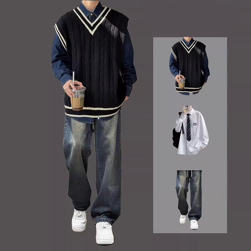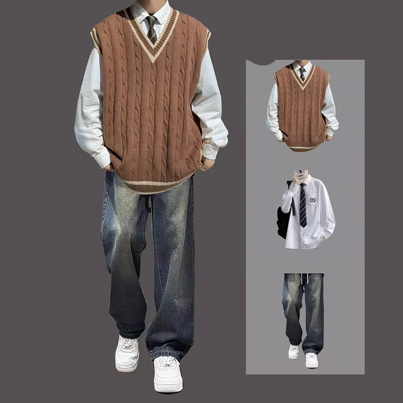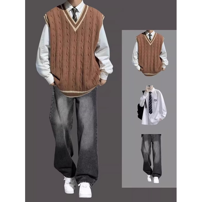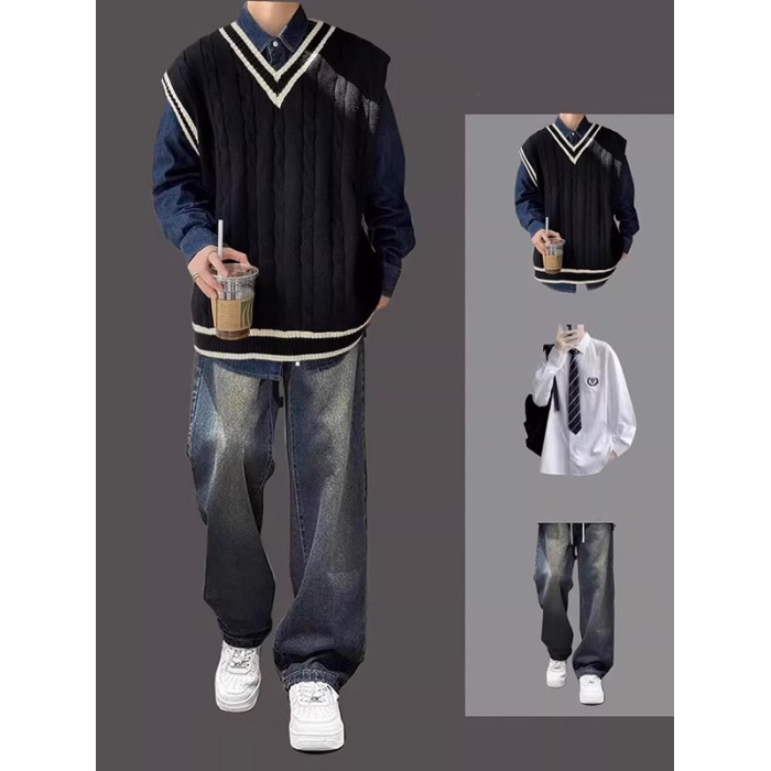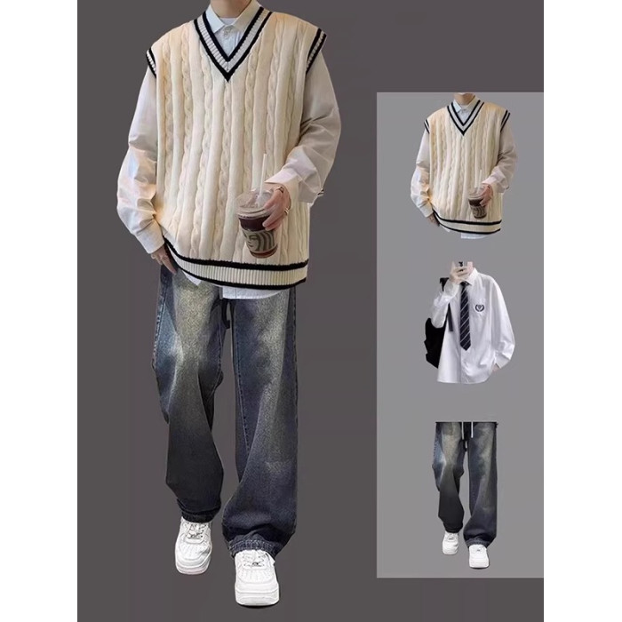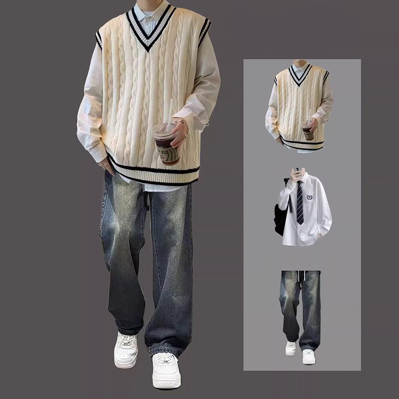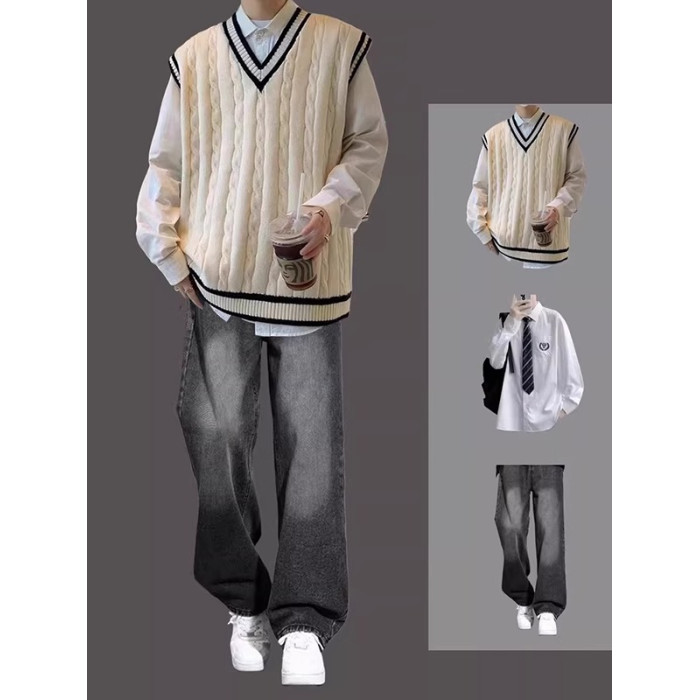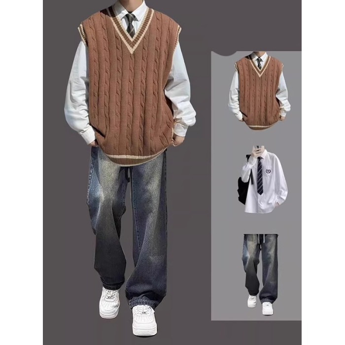 V領毛衣背心男冬季慵懶風韓系針織衫馬甲秋冬高級感加厚無袖外套