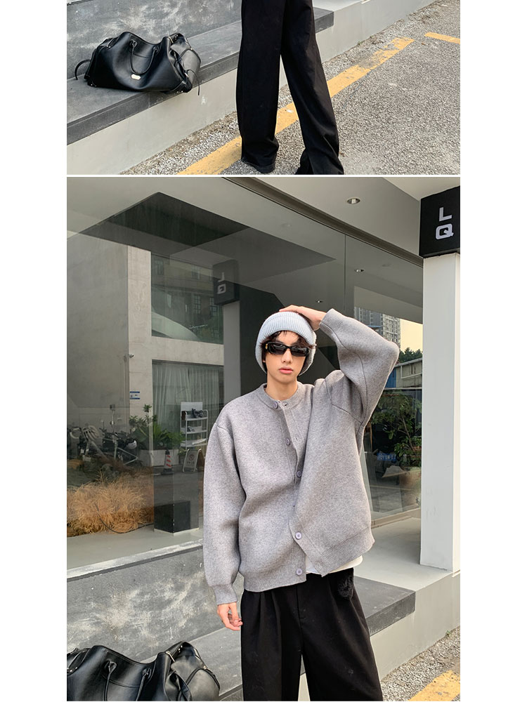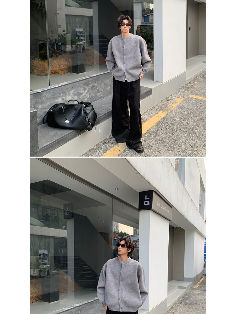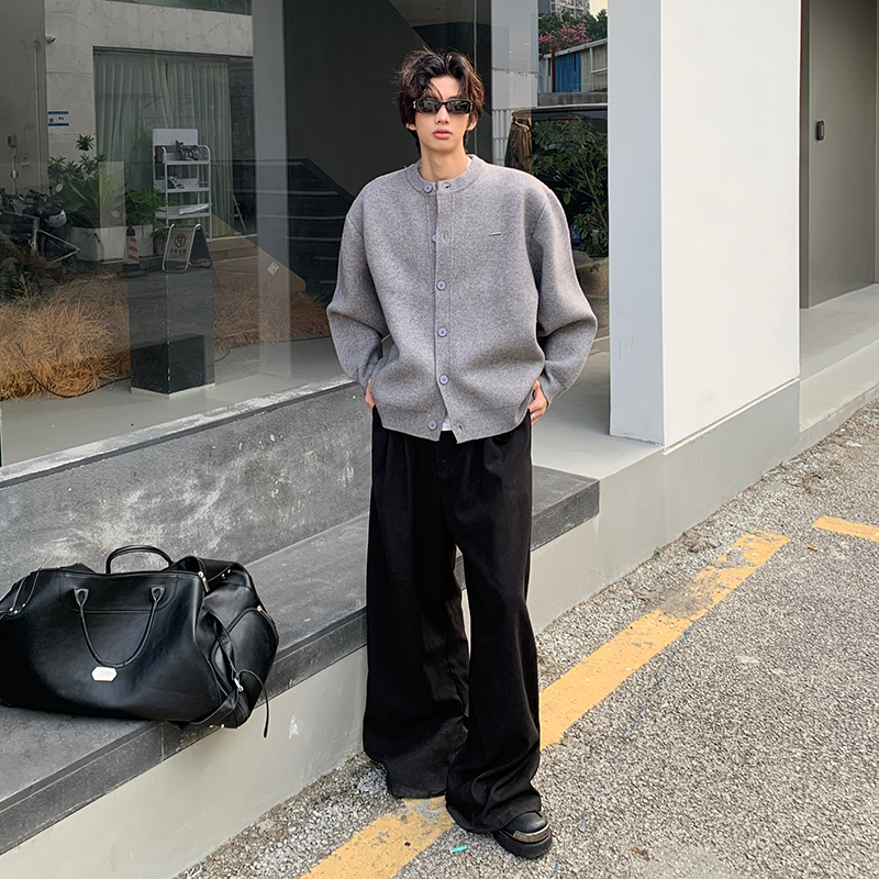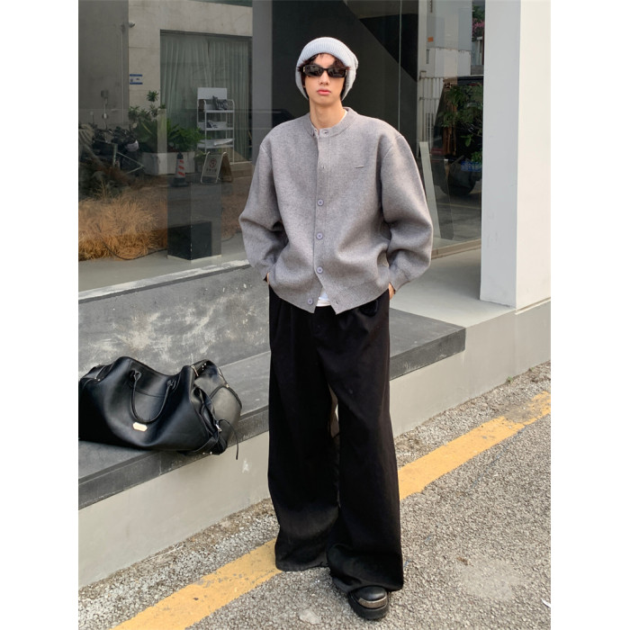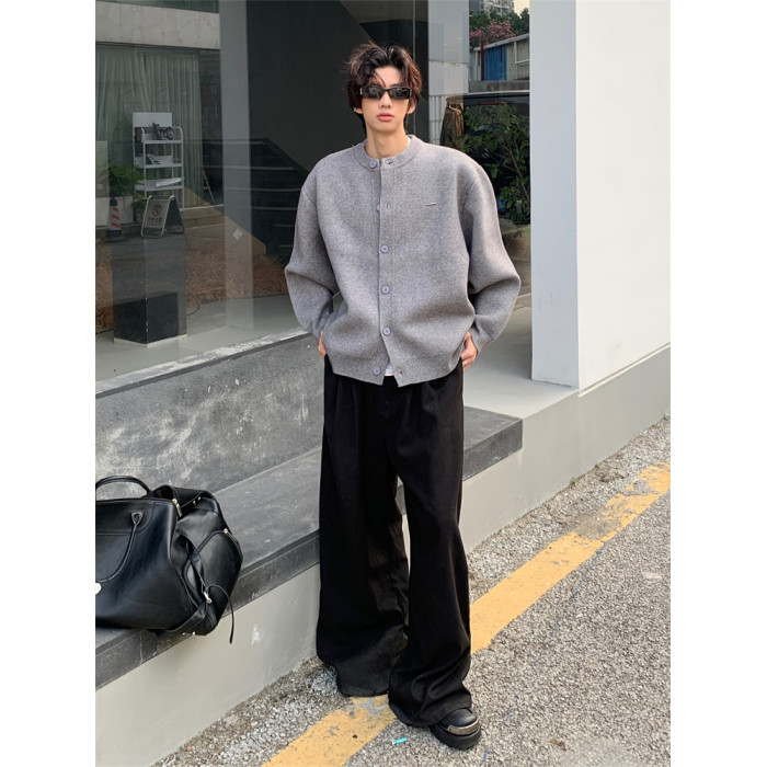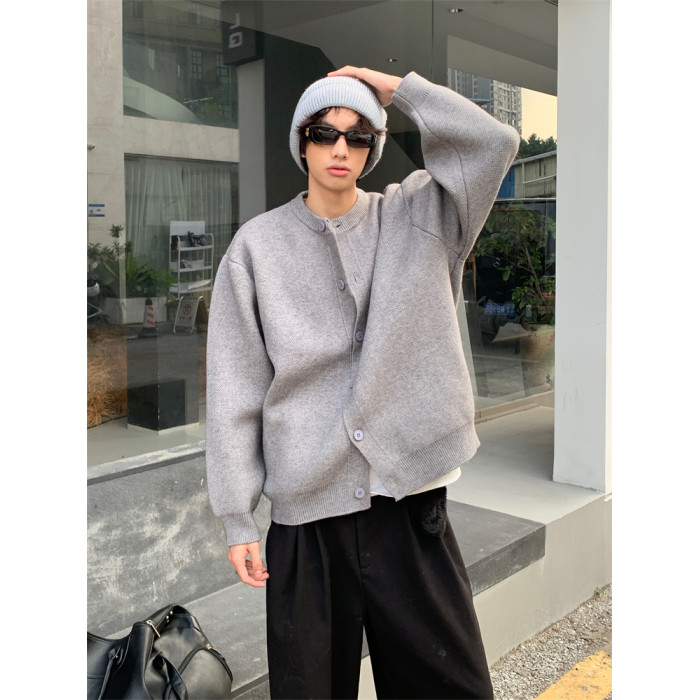灰色高級感開衫毛衣男女秋冬韓系穿搭街頭復古寬松休閒針織衫外套