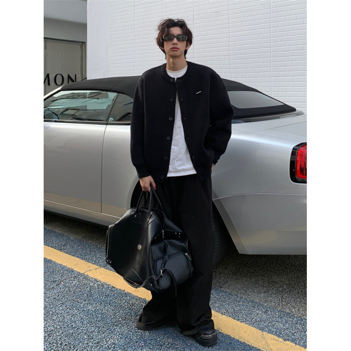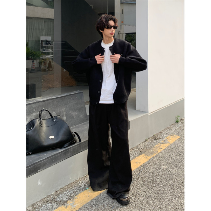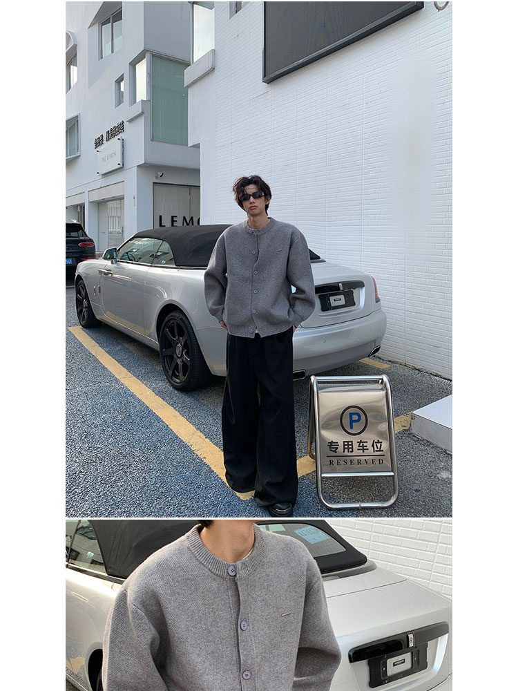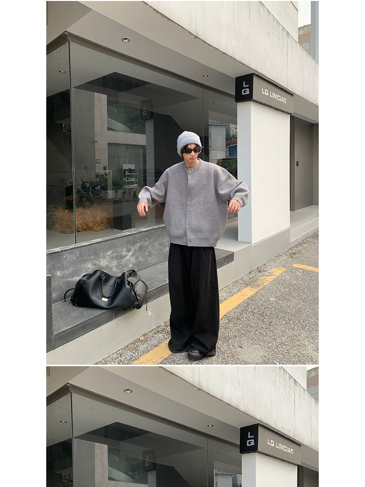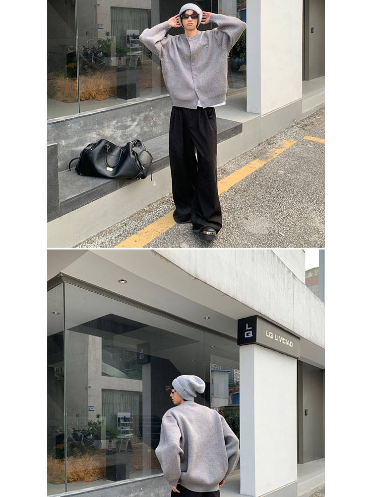 灰色高級感開衫毛衣男女秋冬韓系穿搭街頭復古寬松休閒針織衫外套
