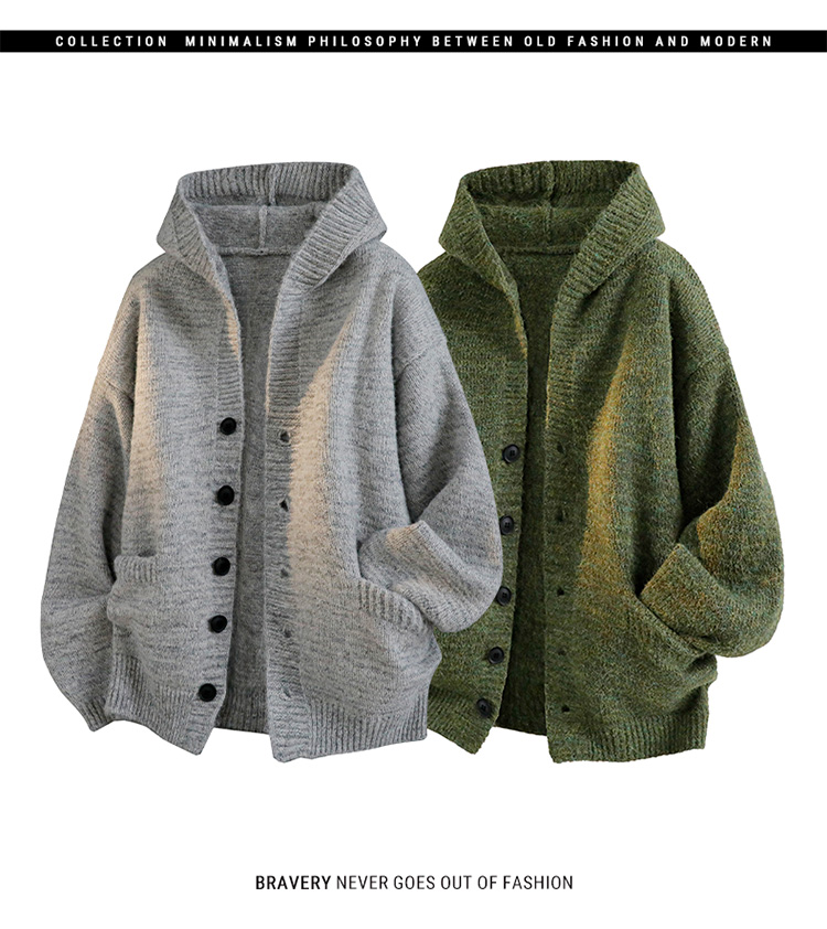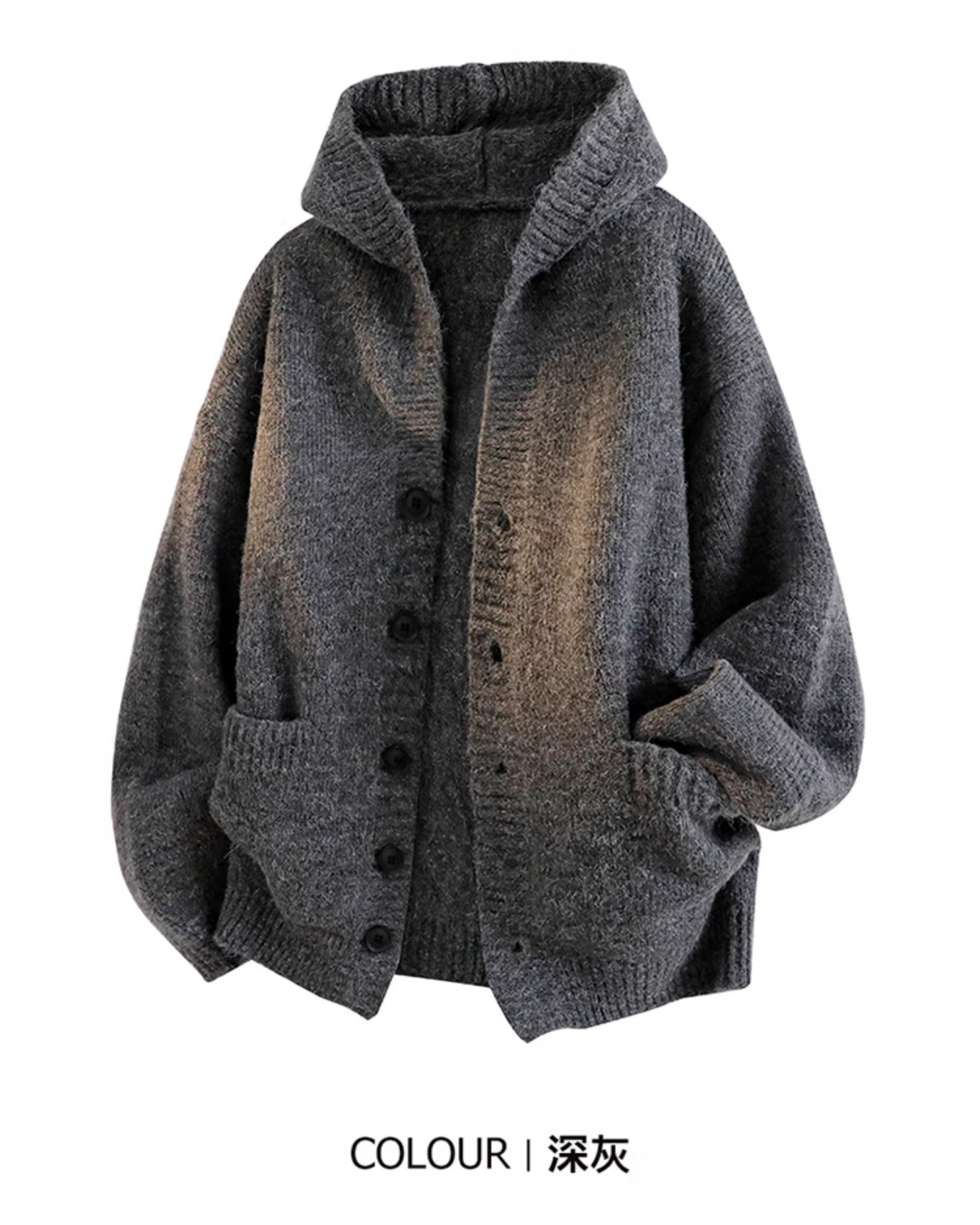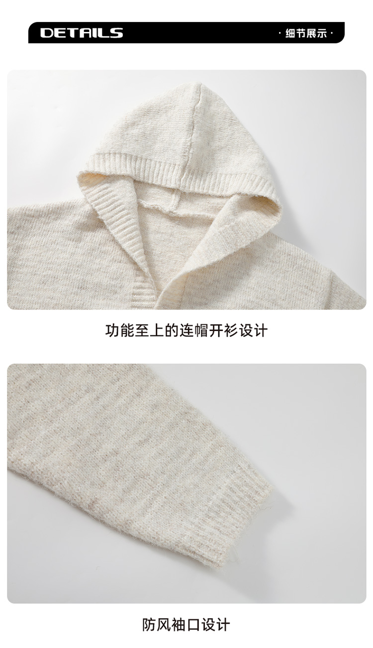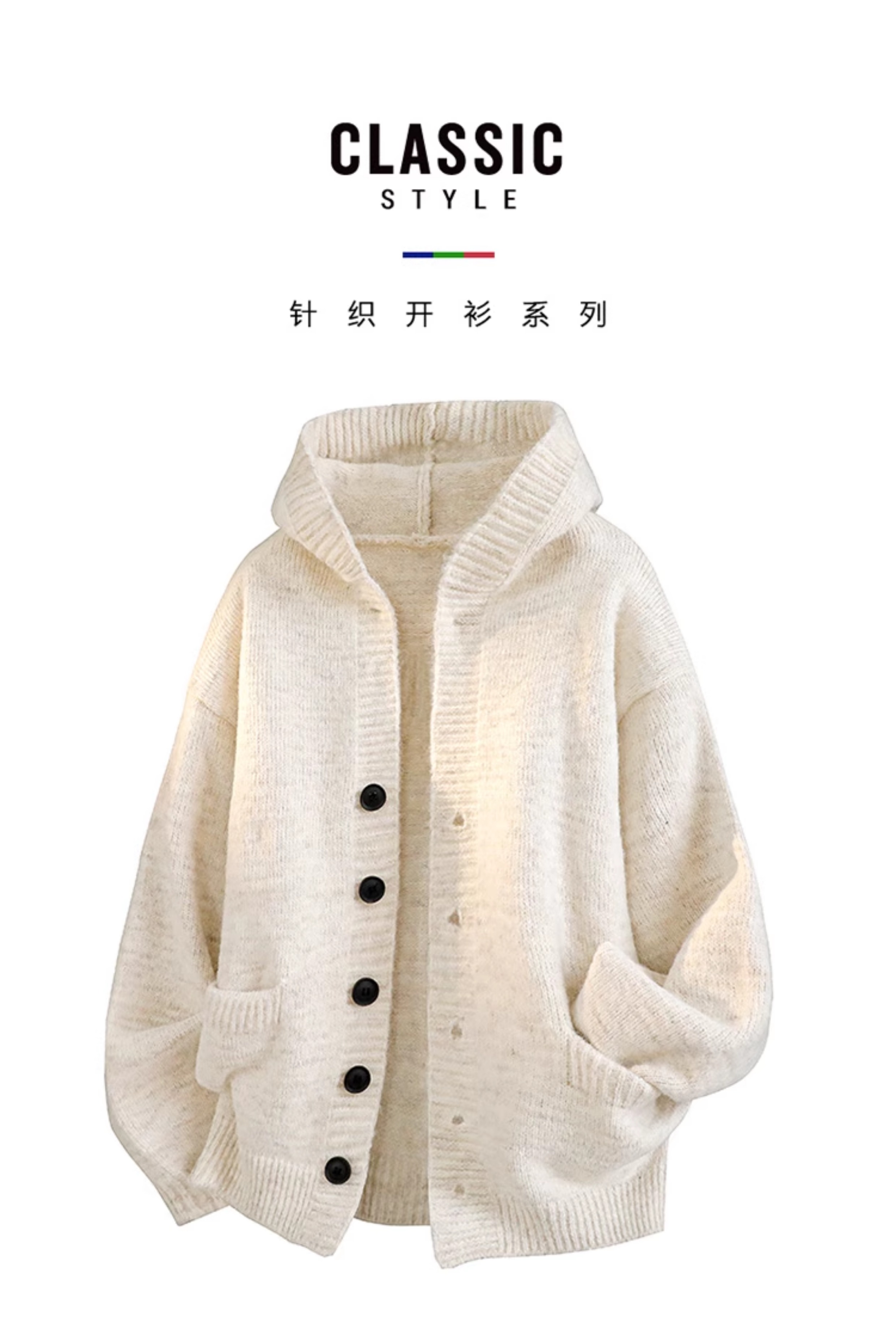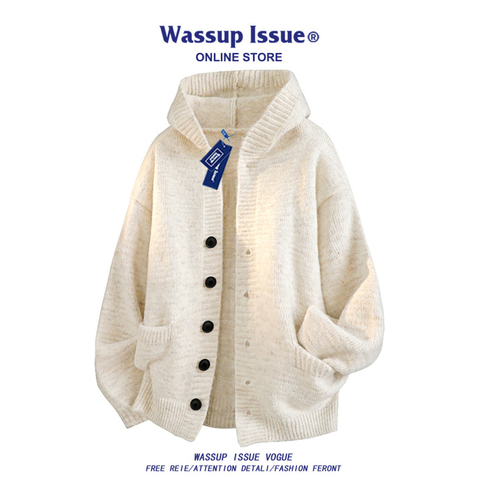 WASSUP ISSUE慵懶風連帽開衫毛衣男春秋寬松高級感針織衫情侶外套