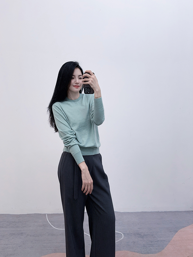 U+剪標羊毛系列男裝!100美麗諾羊毛低圓領春秋薄款通勤針織毛衣
