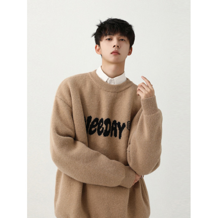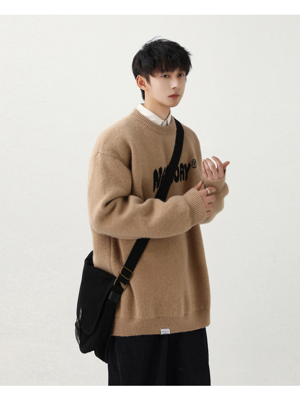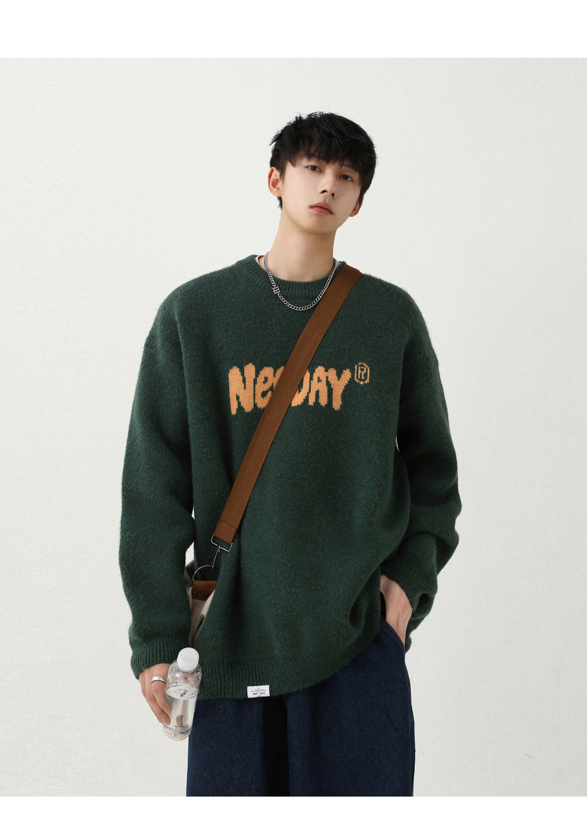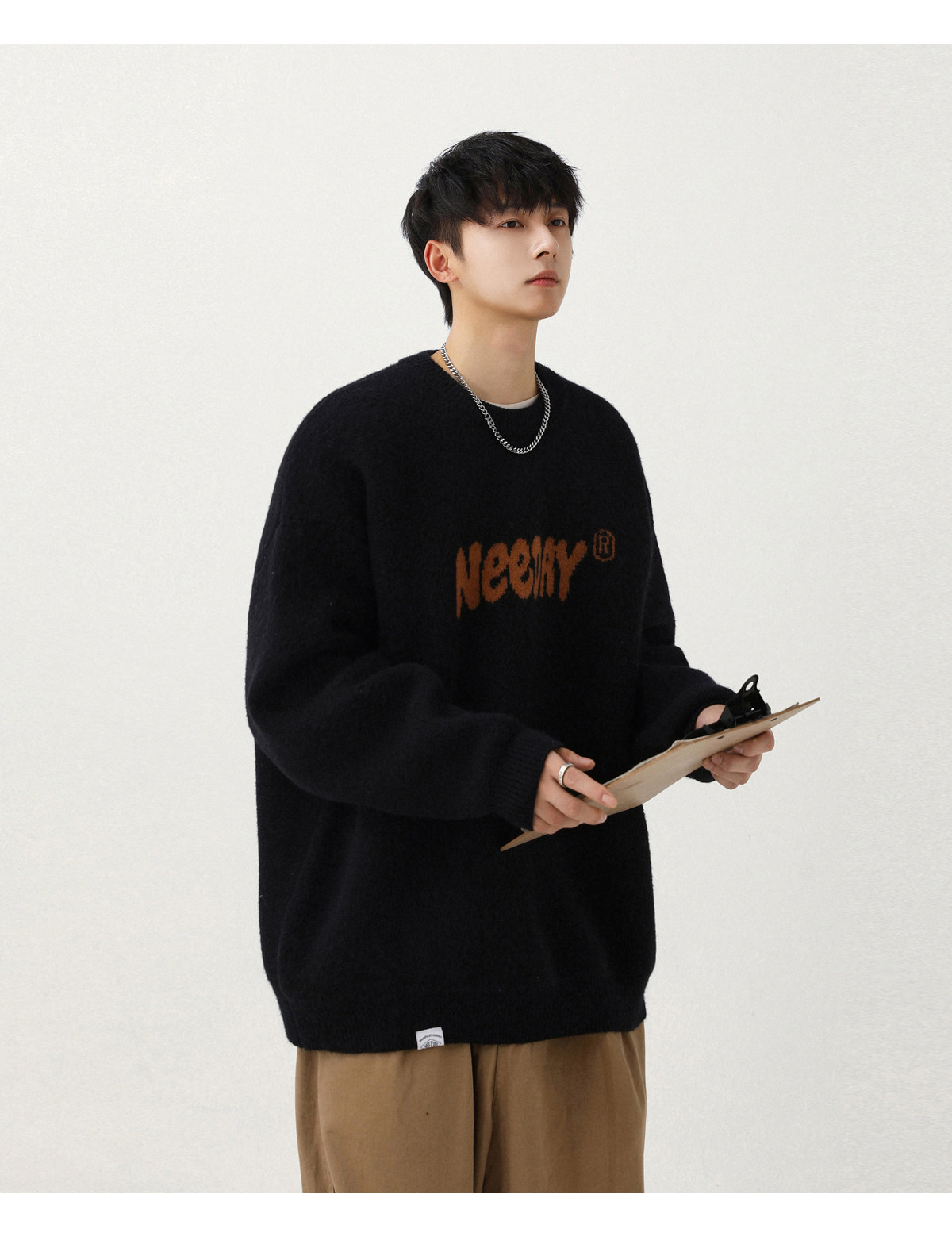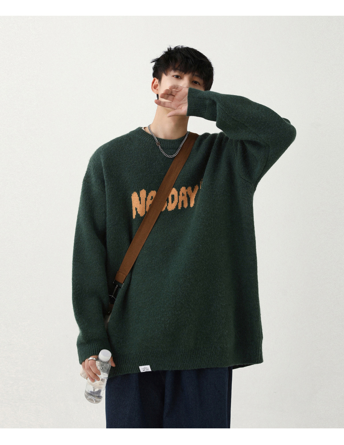 美式復古毛衣男女秋季新款潮牌寬鬆慵嬾感針織衫加厚情侶打底線衣