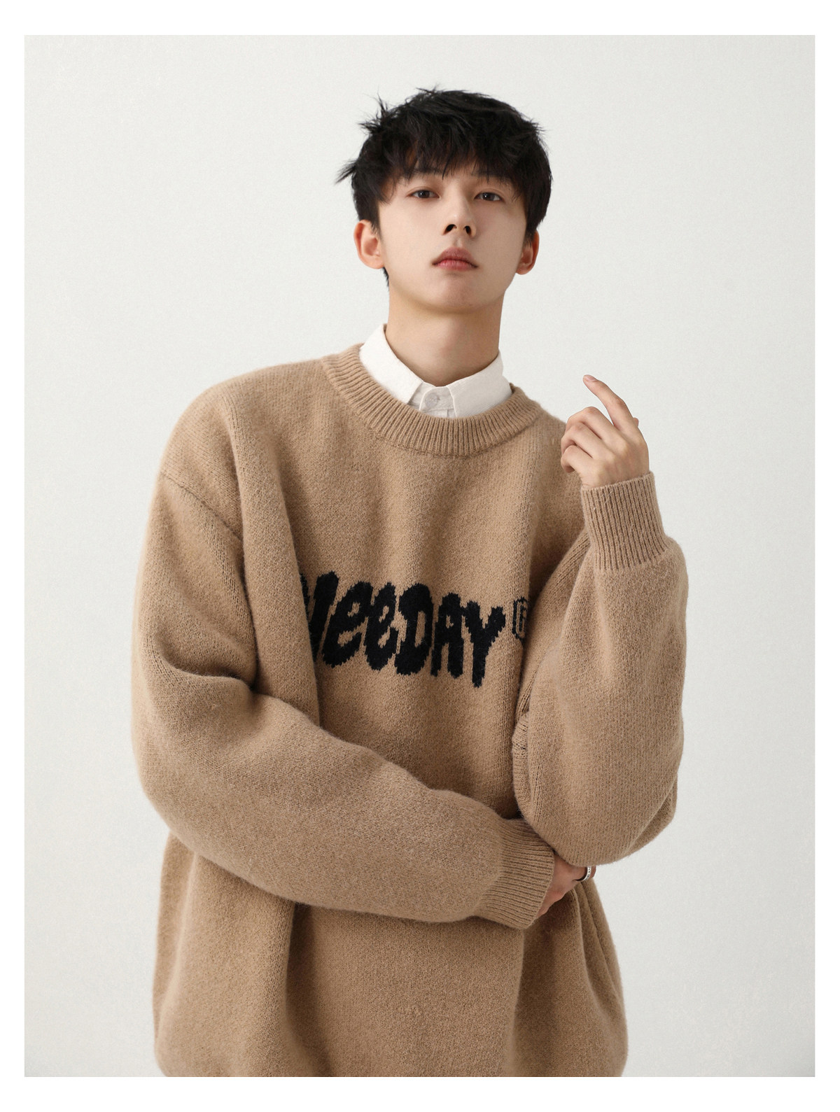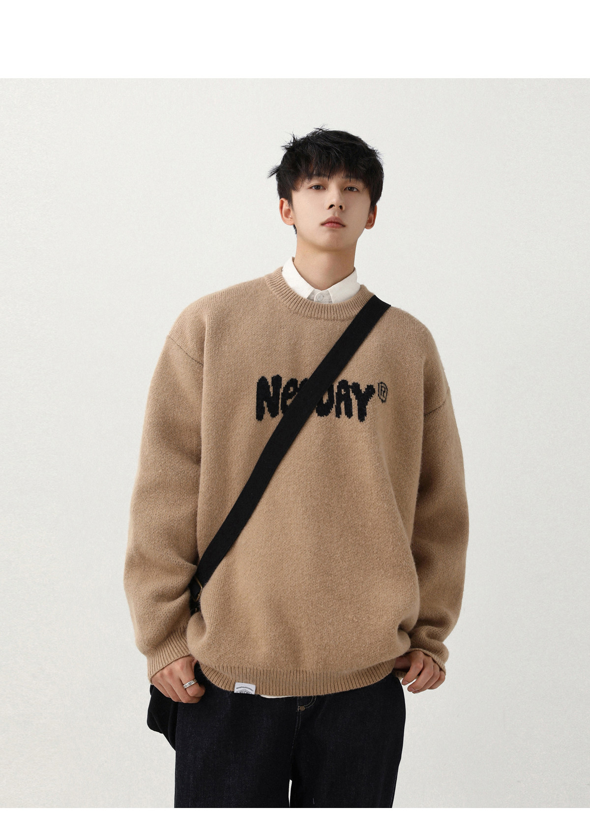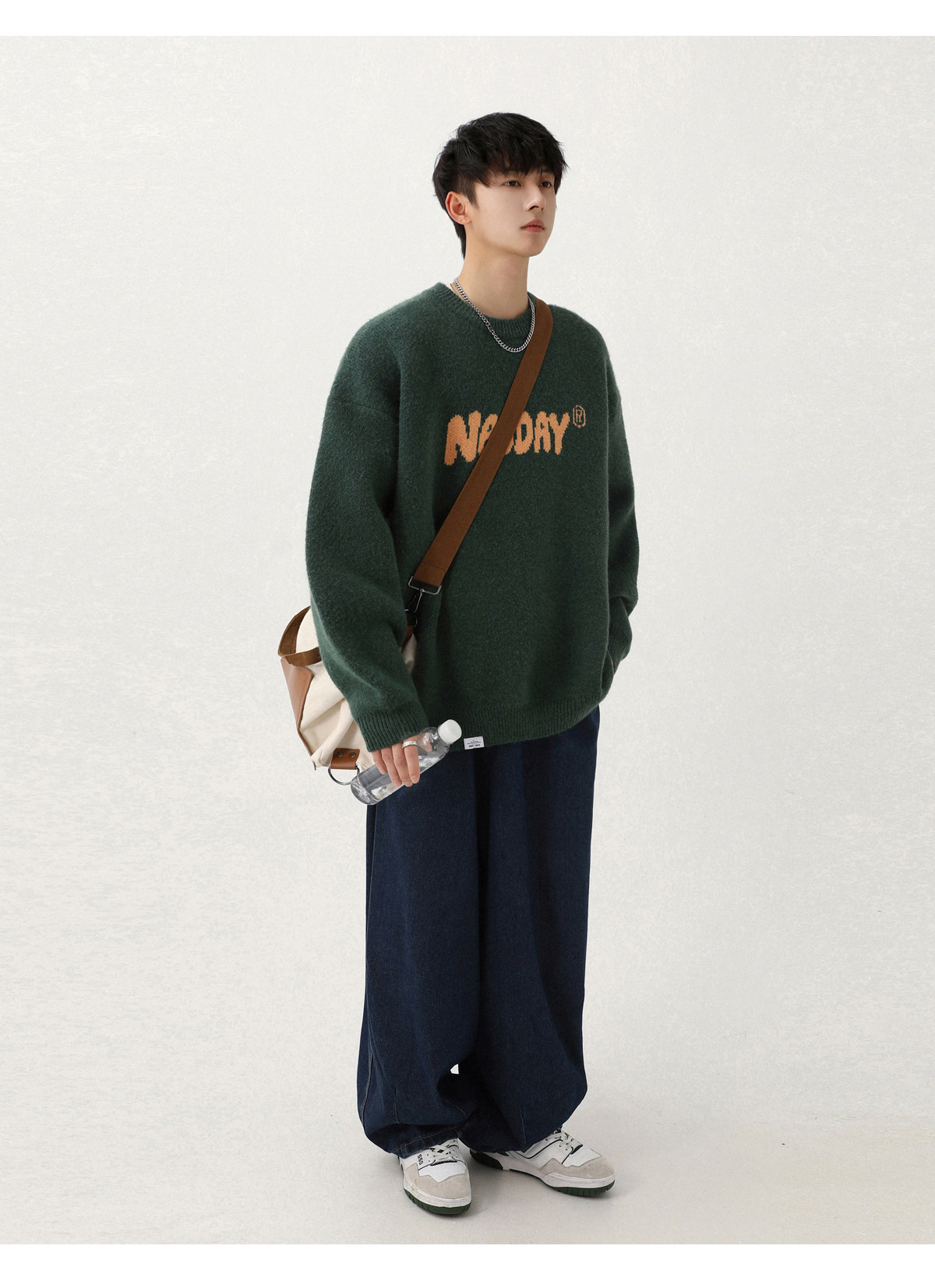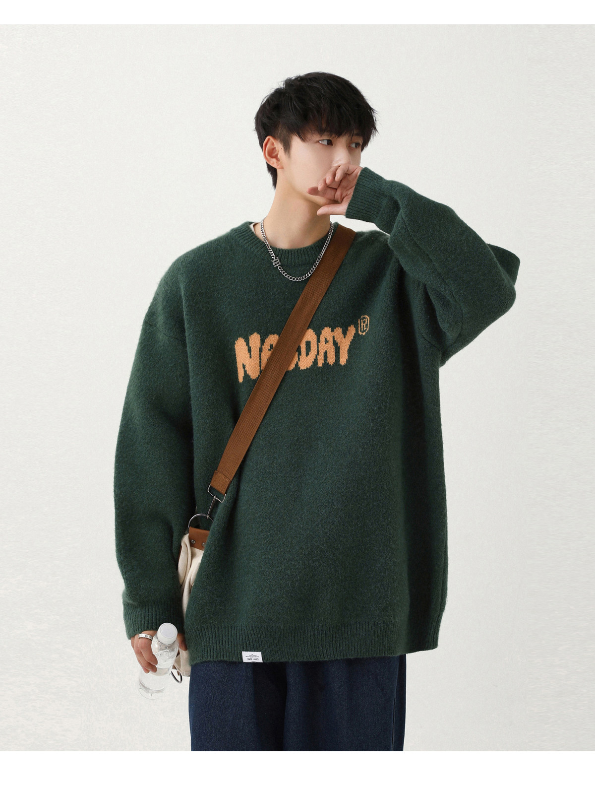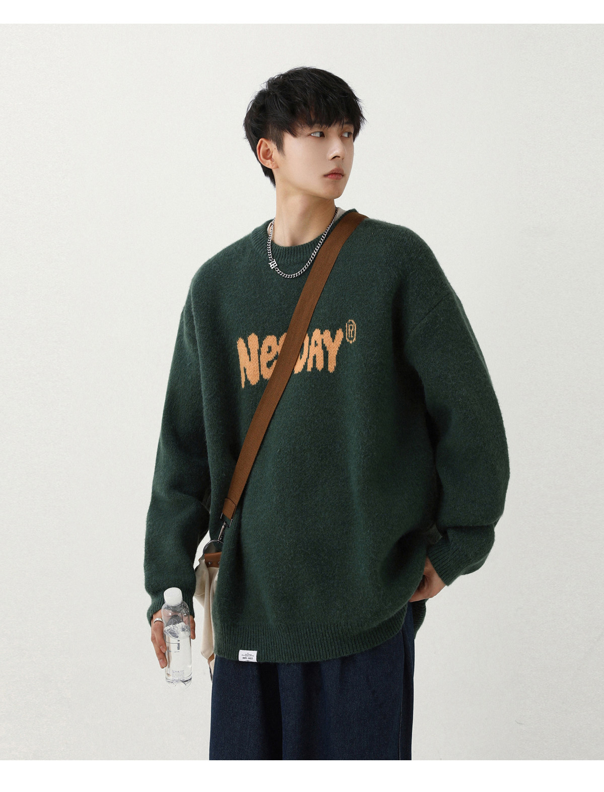 美式復古毛衣男女秋季新款潮牌寬鬆慵嬾感針織衫加厚情侶打底線衣