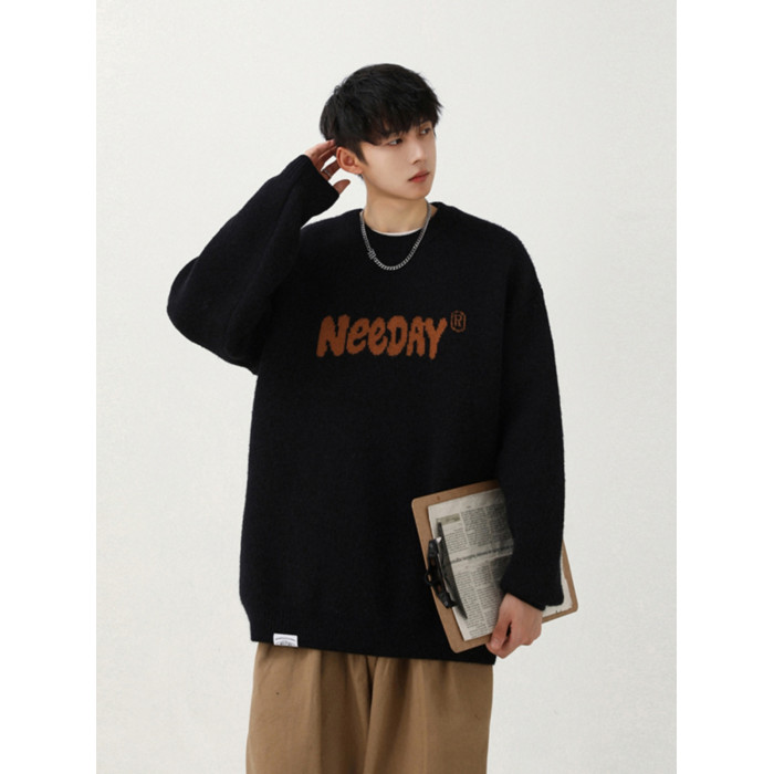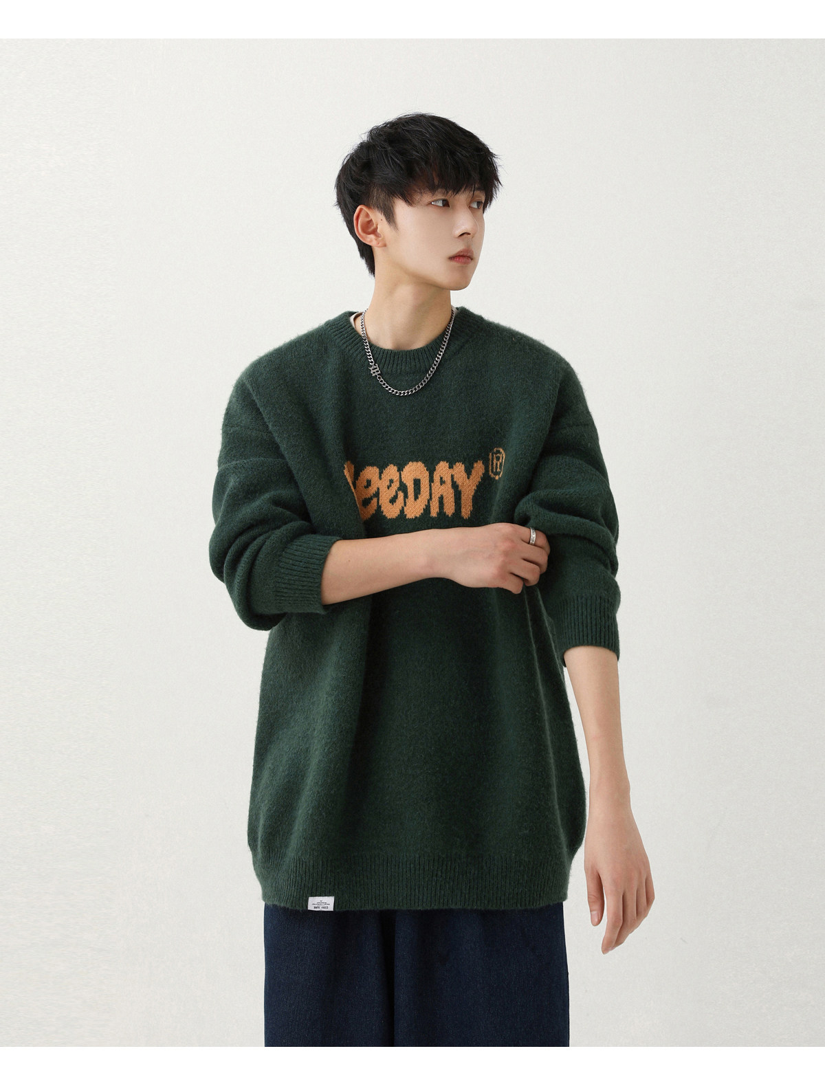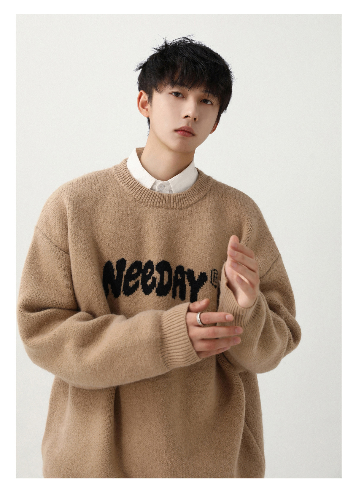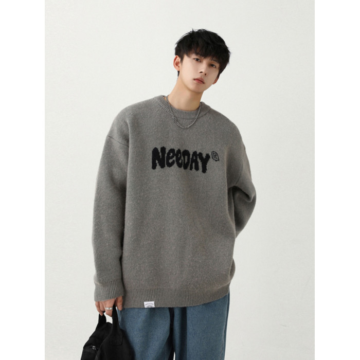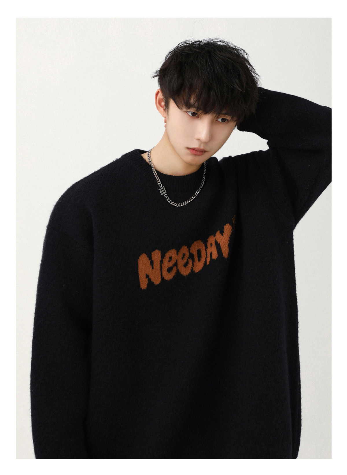美式復古毛衣男女秋季新款潮牌寬鬆慵嬾感針織衫加厚情侶打底線衣