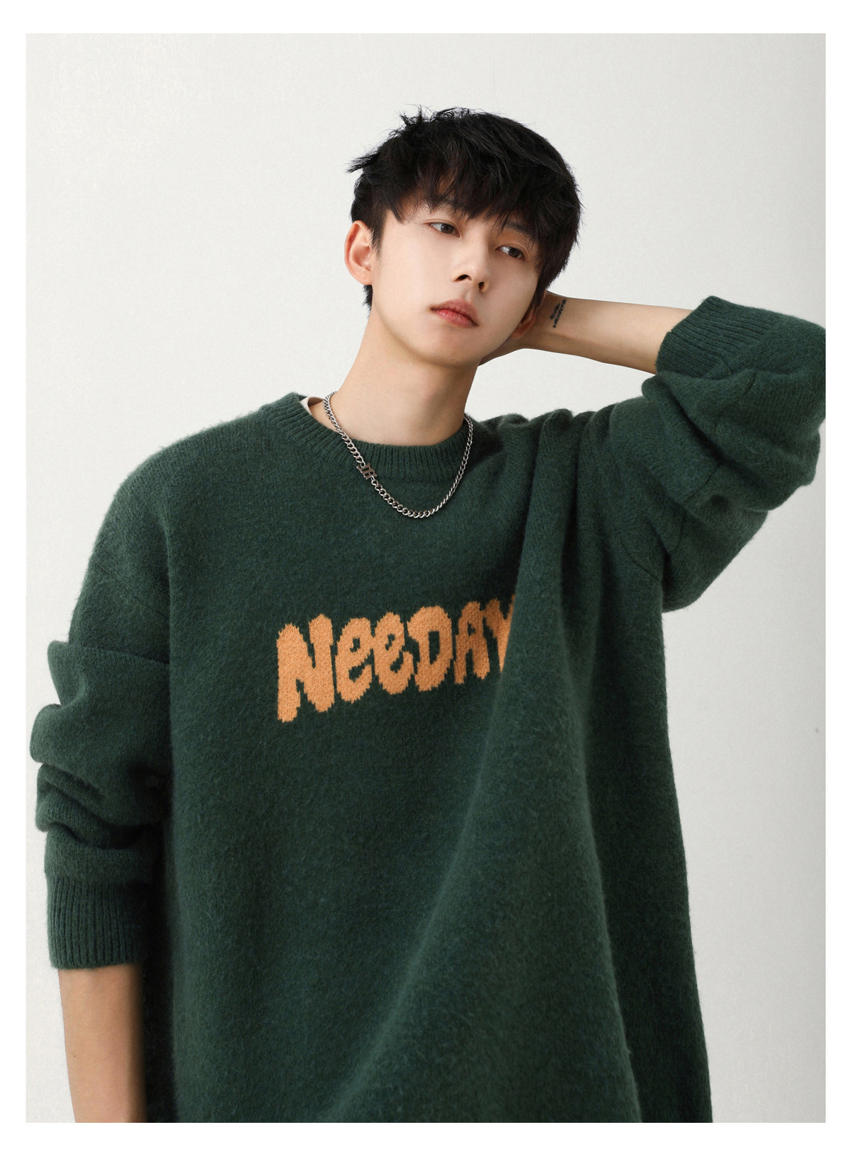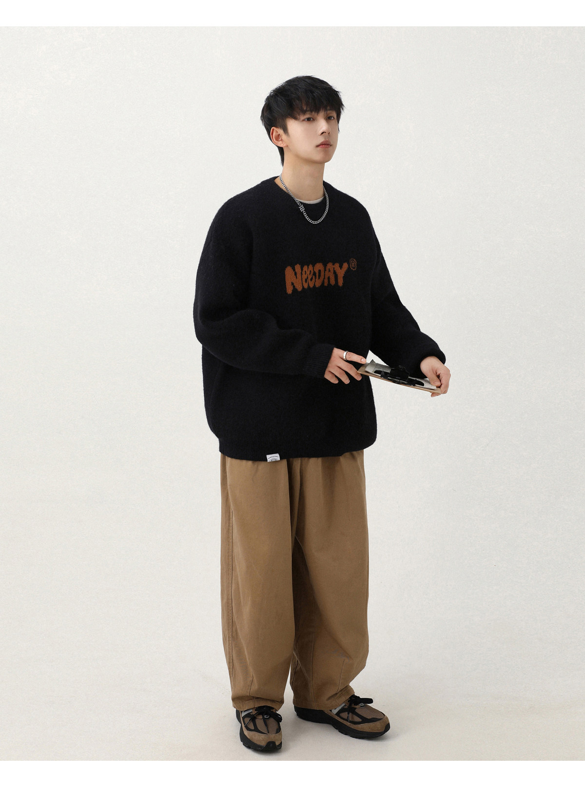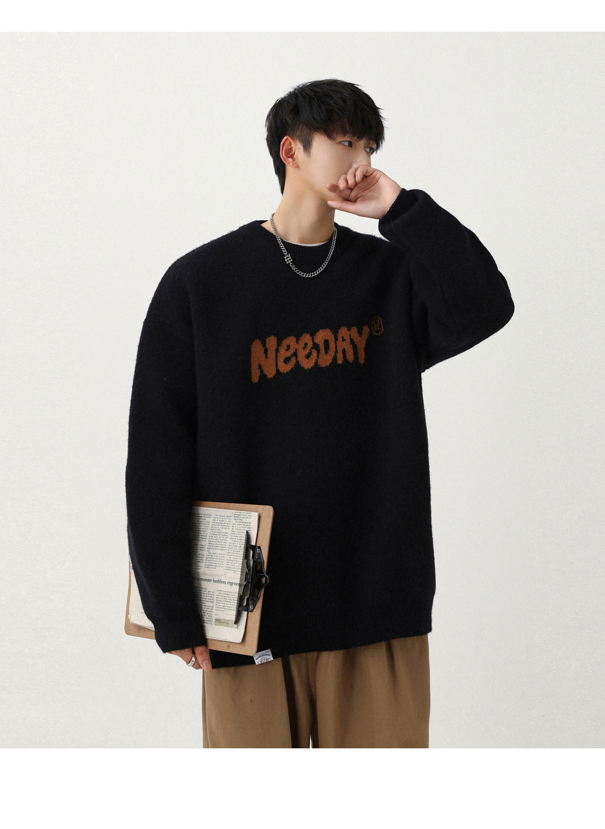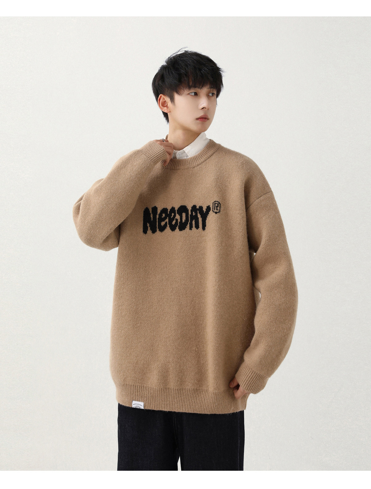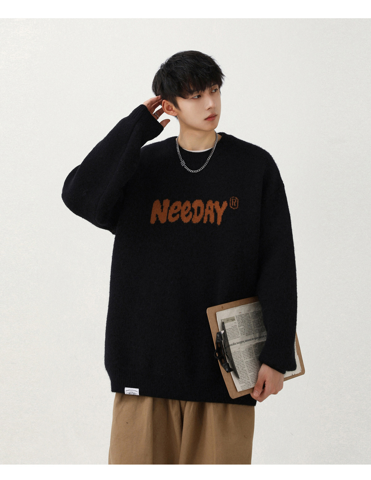 美式復古毛衣男女秋季新款潮牌寬鬆慵嬾感針織衫加厚情侶打底線衣