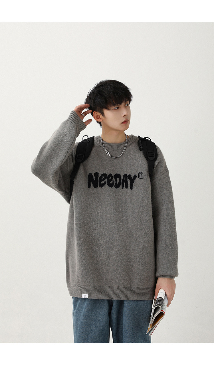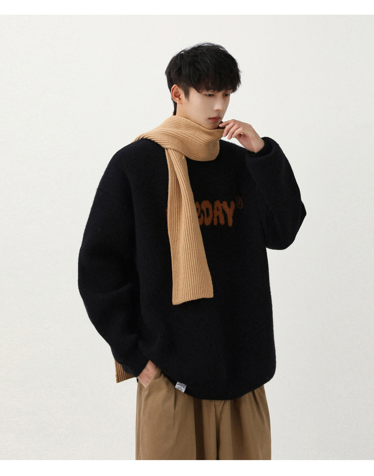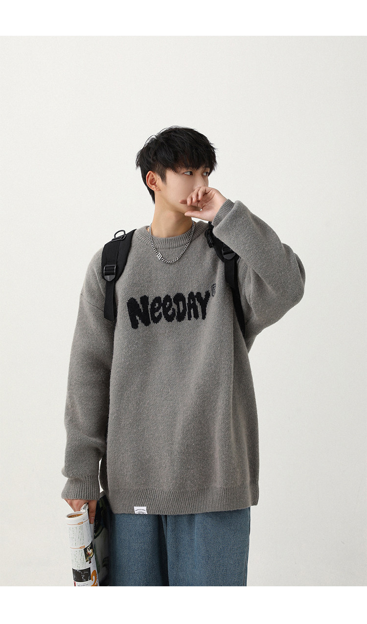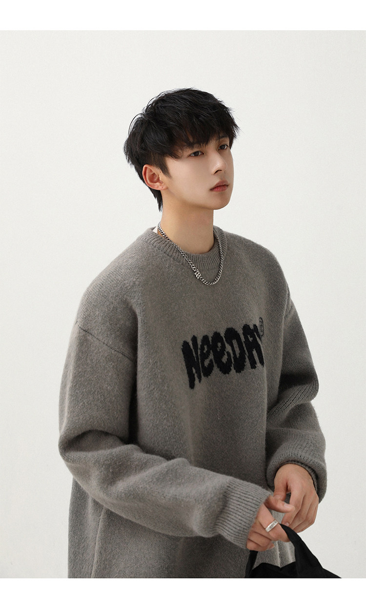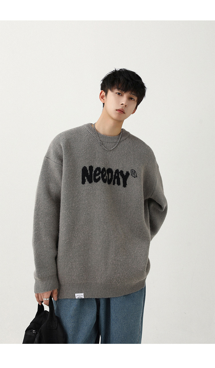美式復古毛衣男女秋季新款潮牌寬鬆慵嬾感針織衫加厚情侶打底線衣