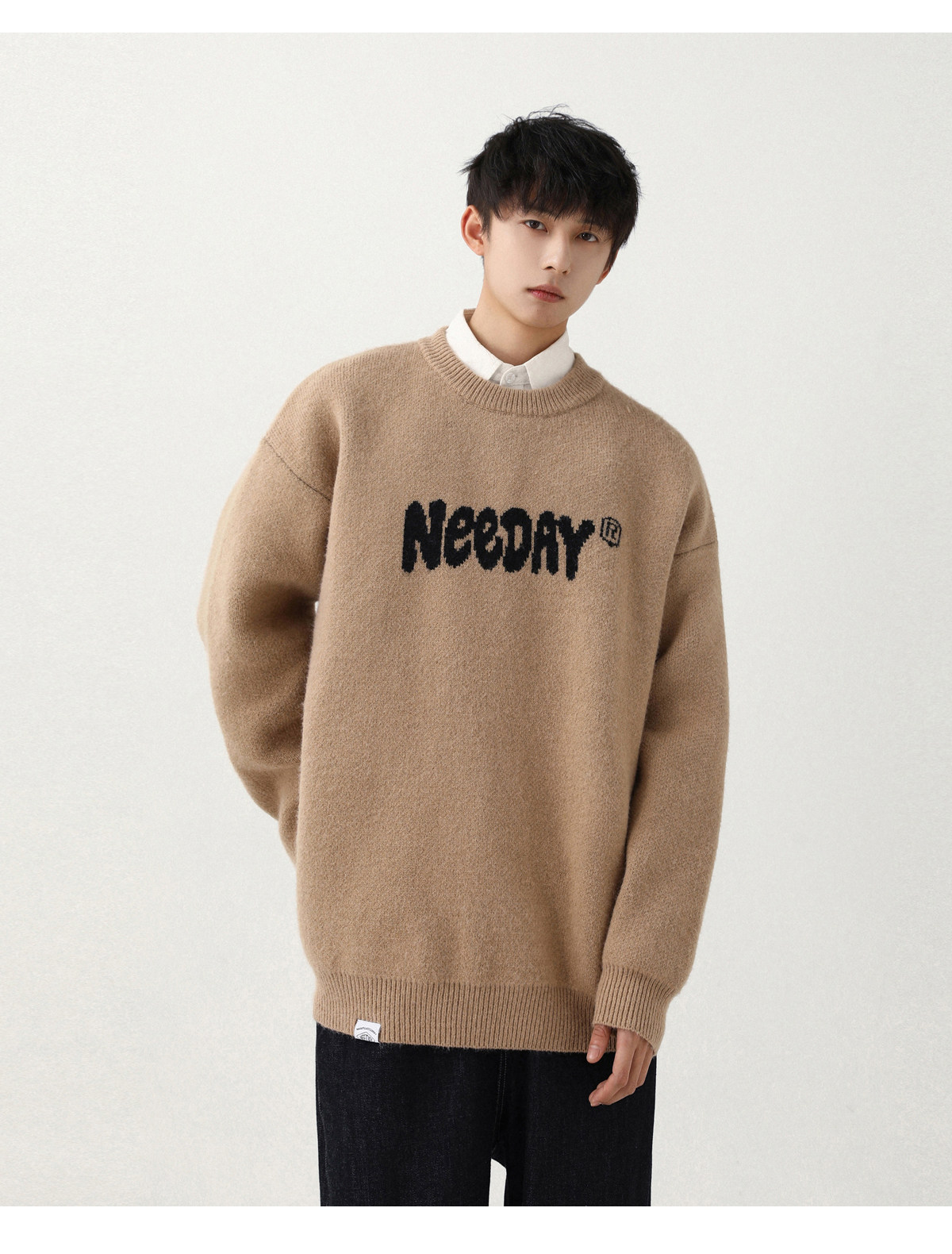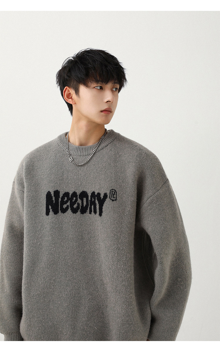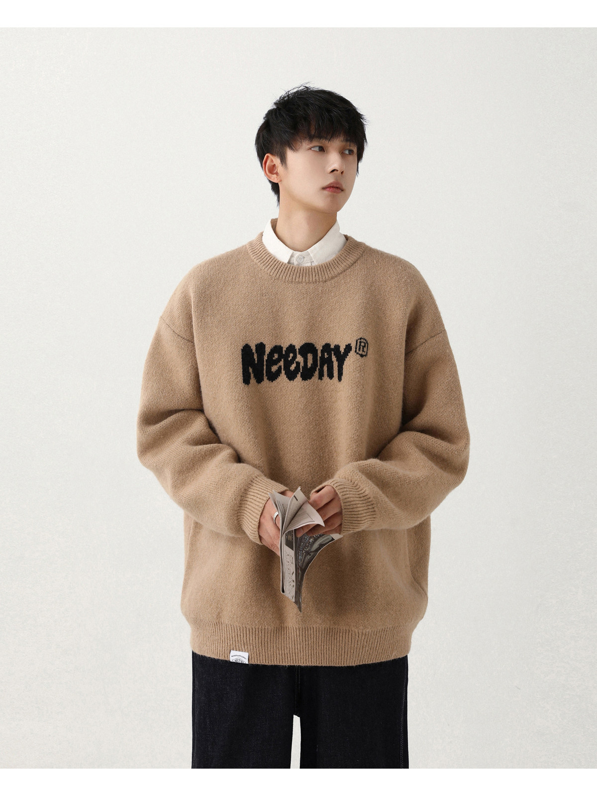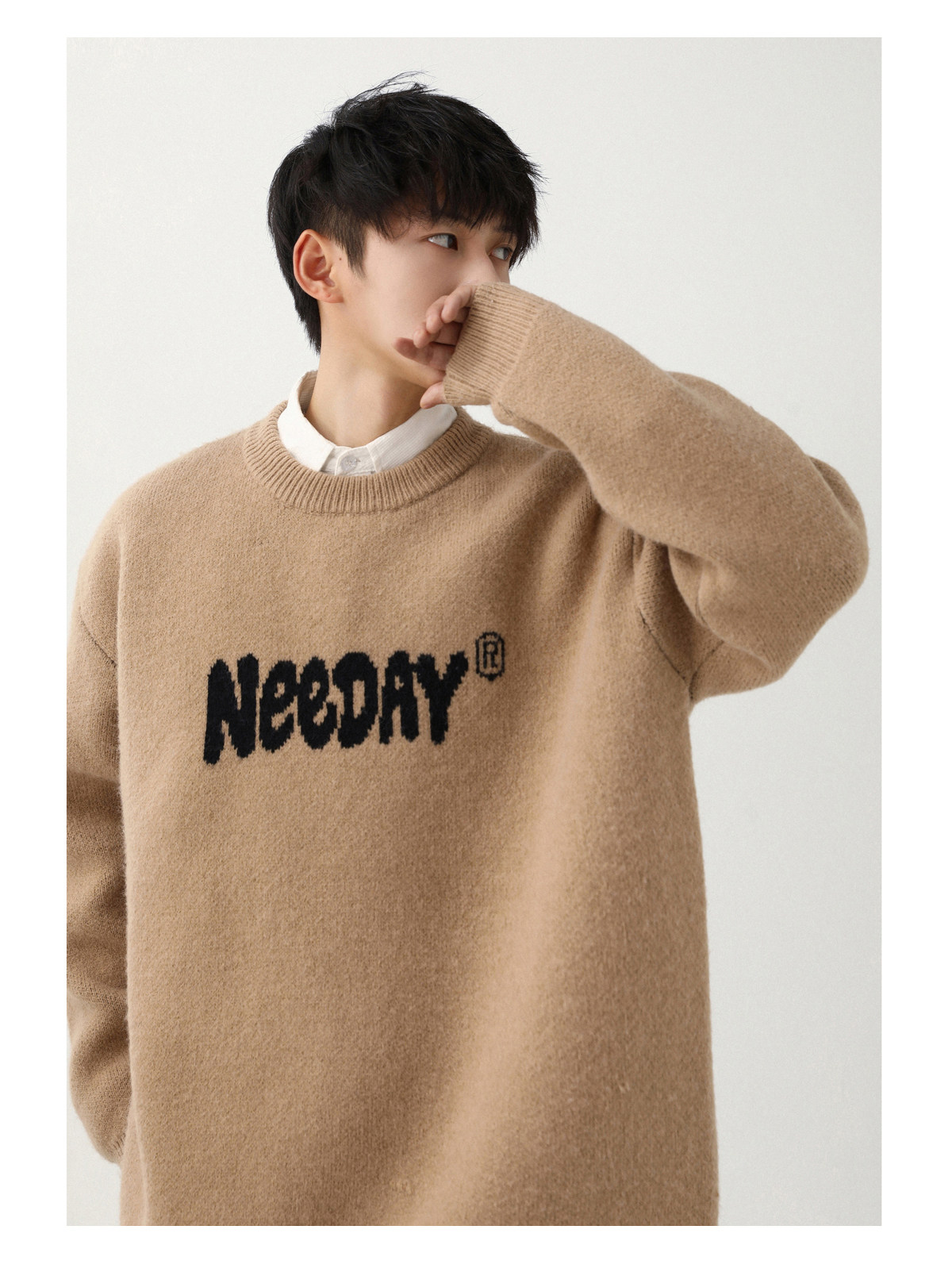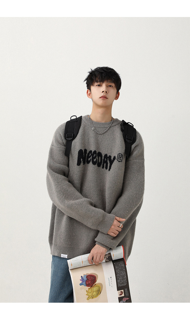 美式復古毛衣男女秋季新款潮牌寬鬆慵嬾感針織衫加厚情侶打底線衣
