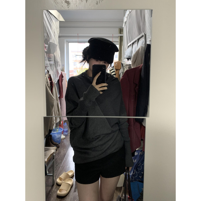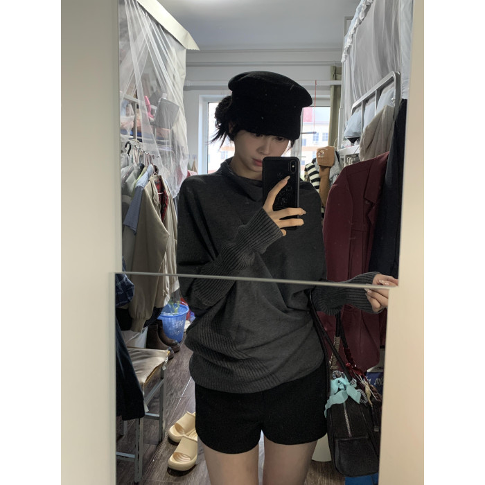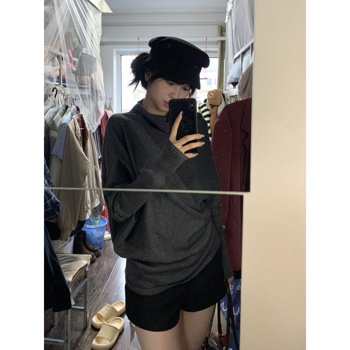 韓系不規則高領毛衣女秋冬2025新款松弛感慵懶風蝙蝠袖針織衫上衣