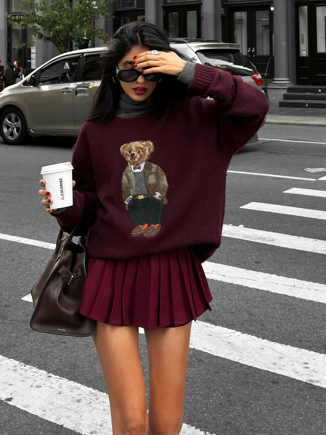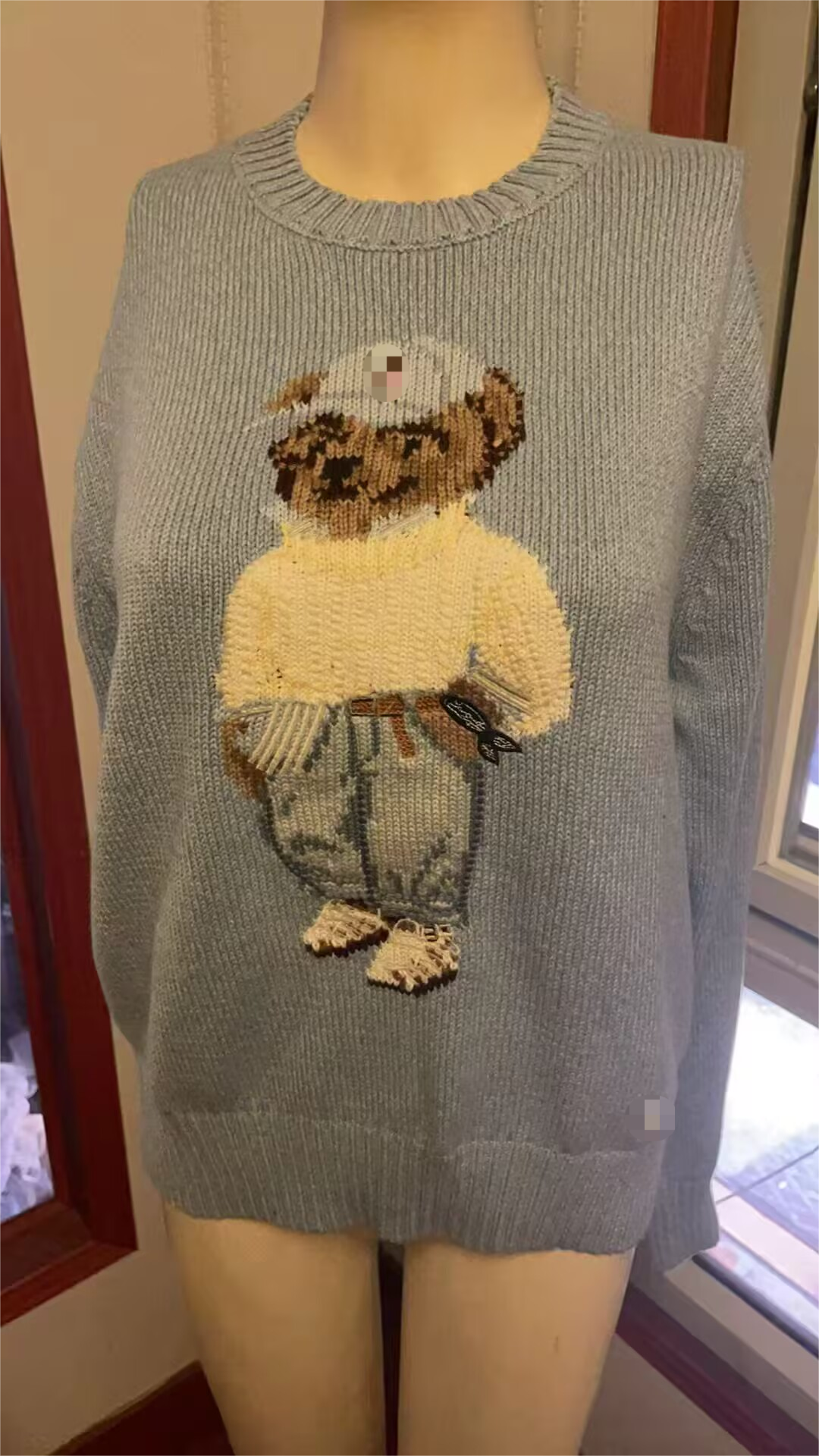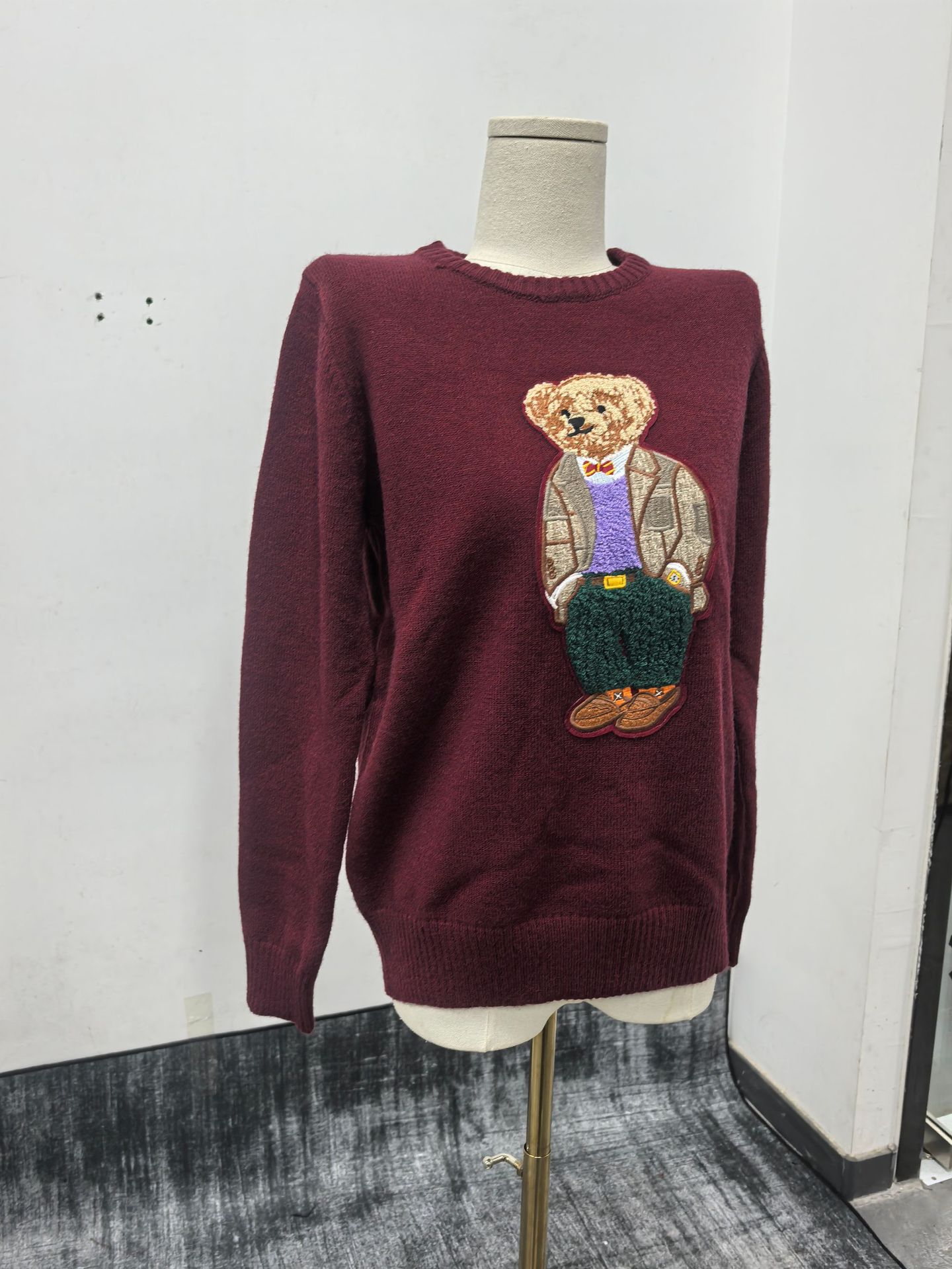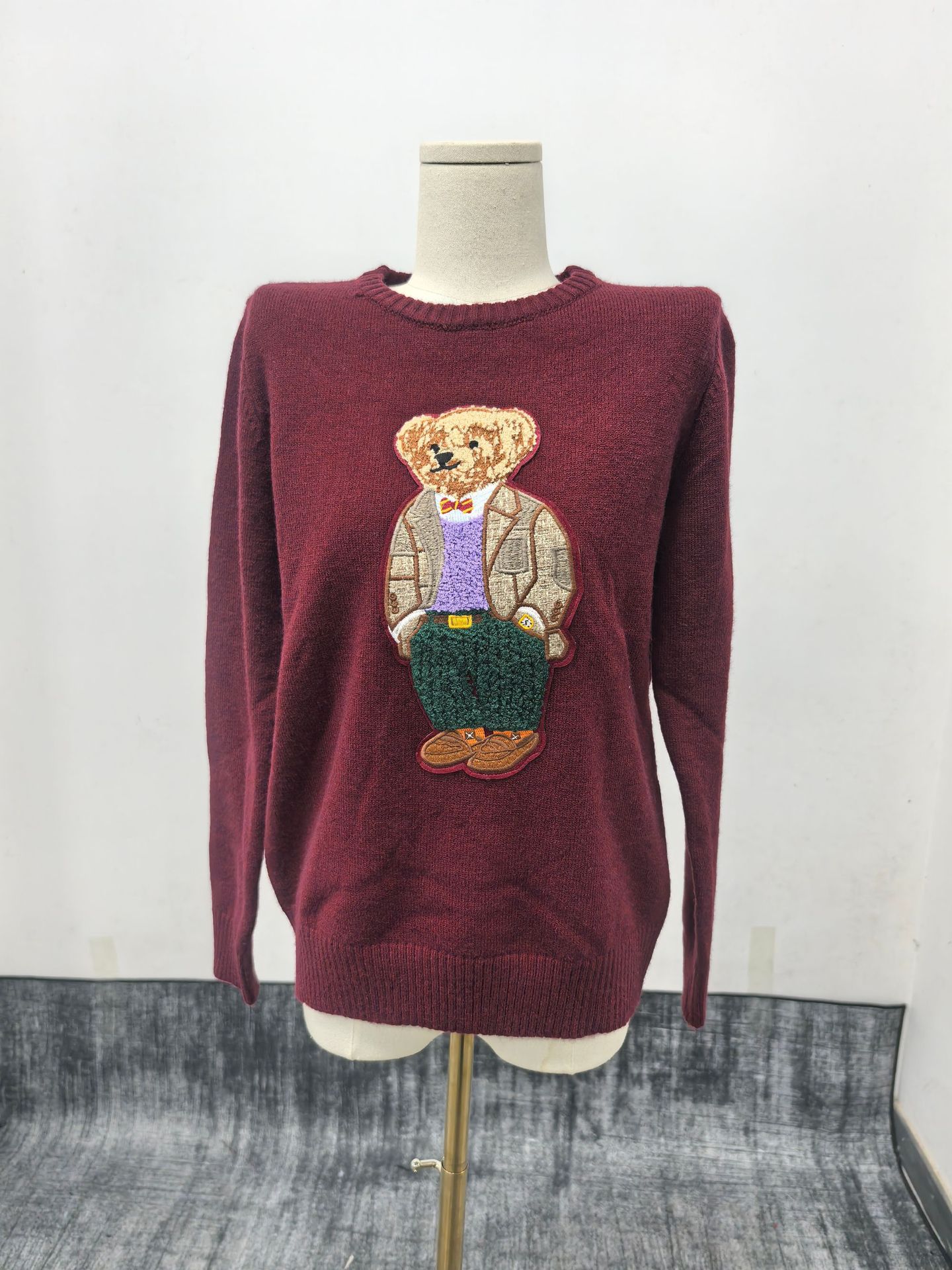 sweater小熊刺綉圓領修身毛衣秋冬卡通學院風natasha針織衫上衣女