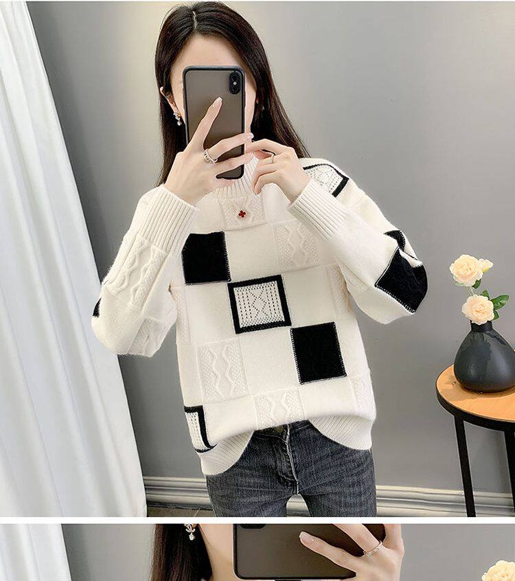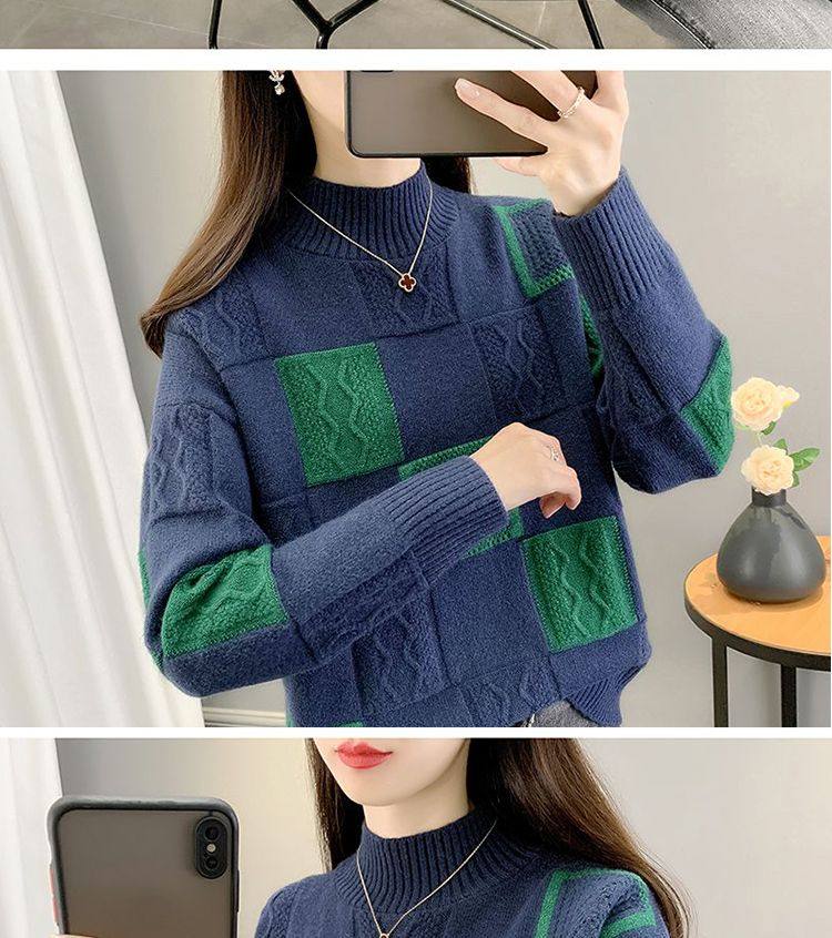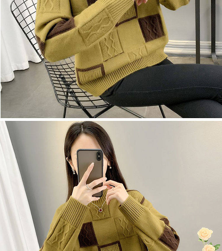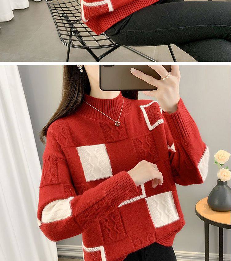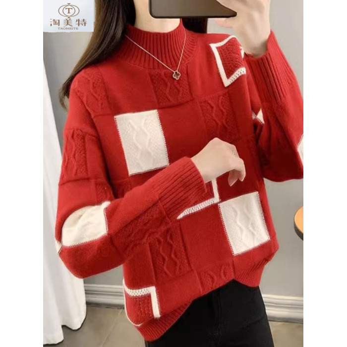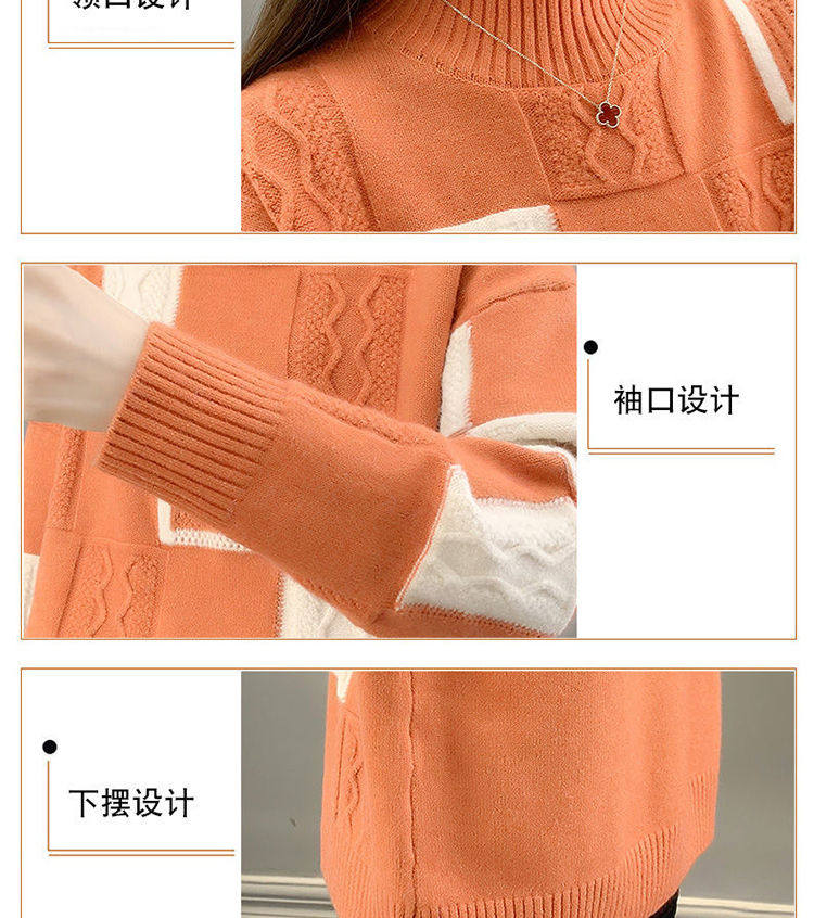 新款半高領毛衣女秋冬季2024年女士羊毛衫拼色時尚寬松針織打底衫