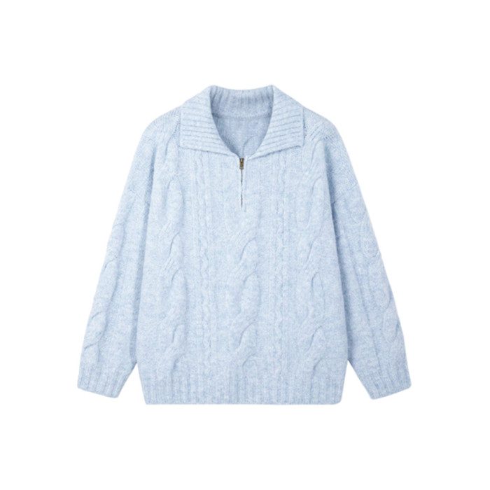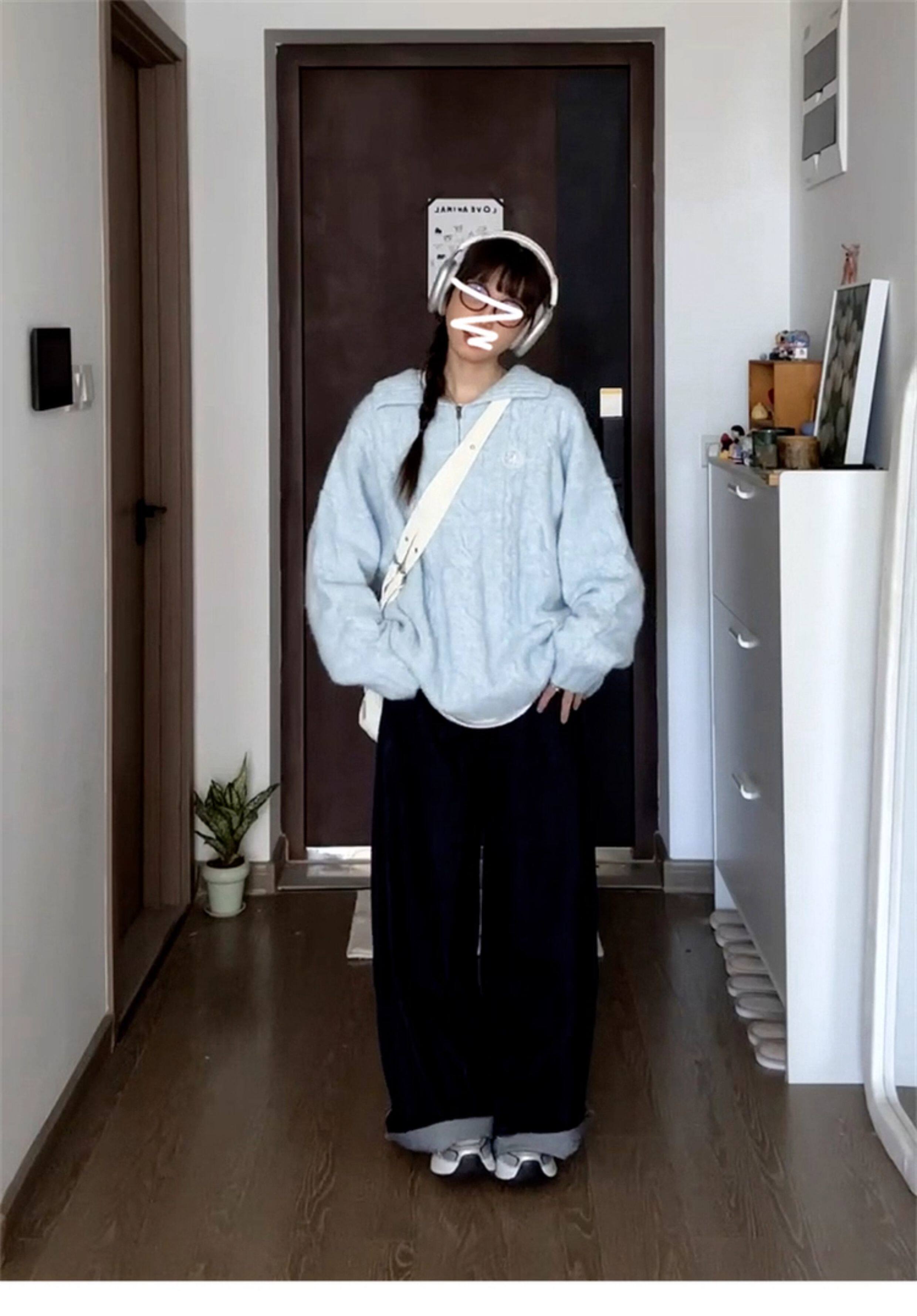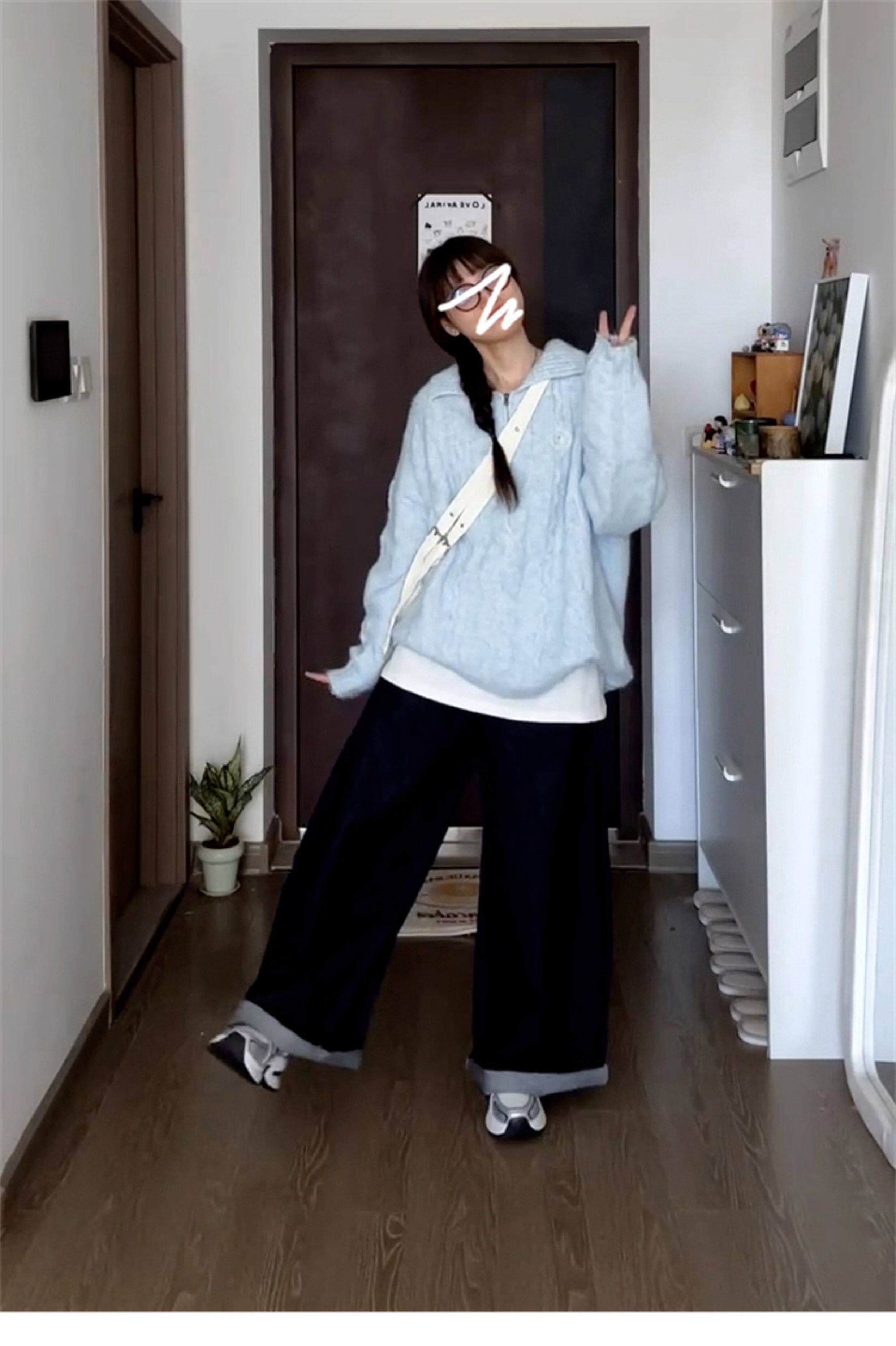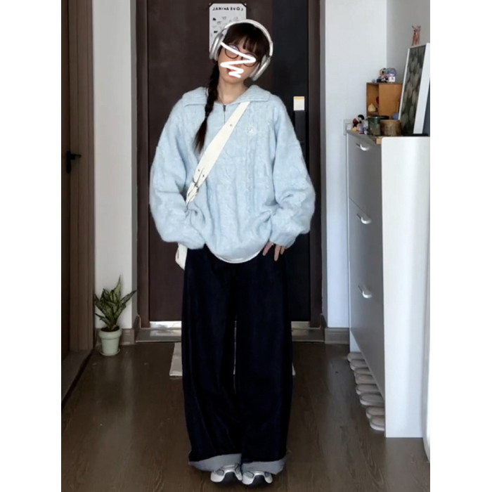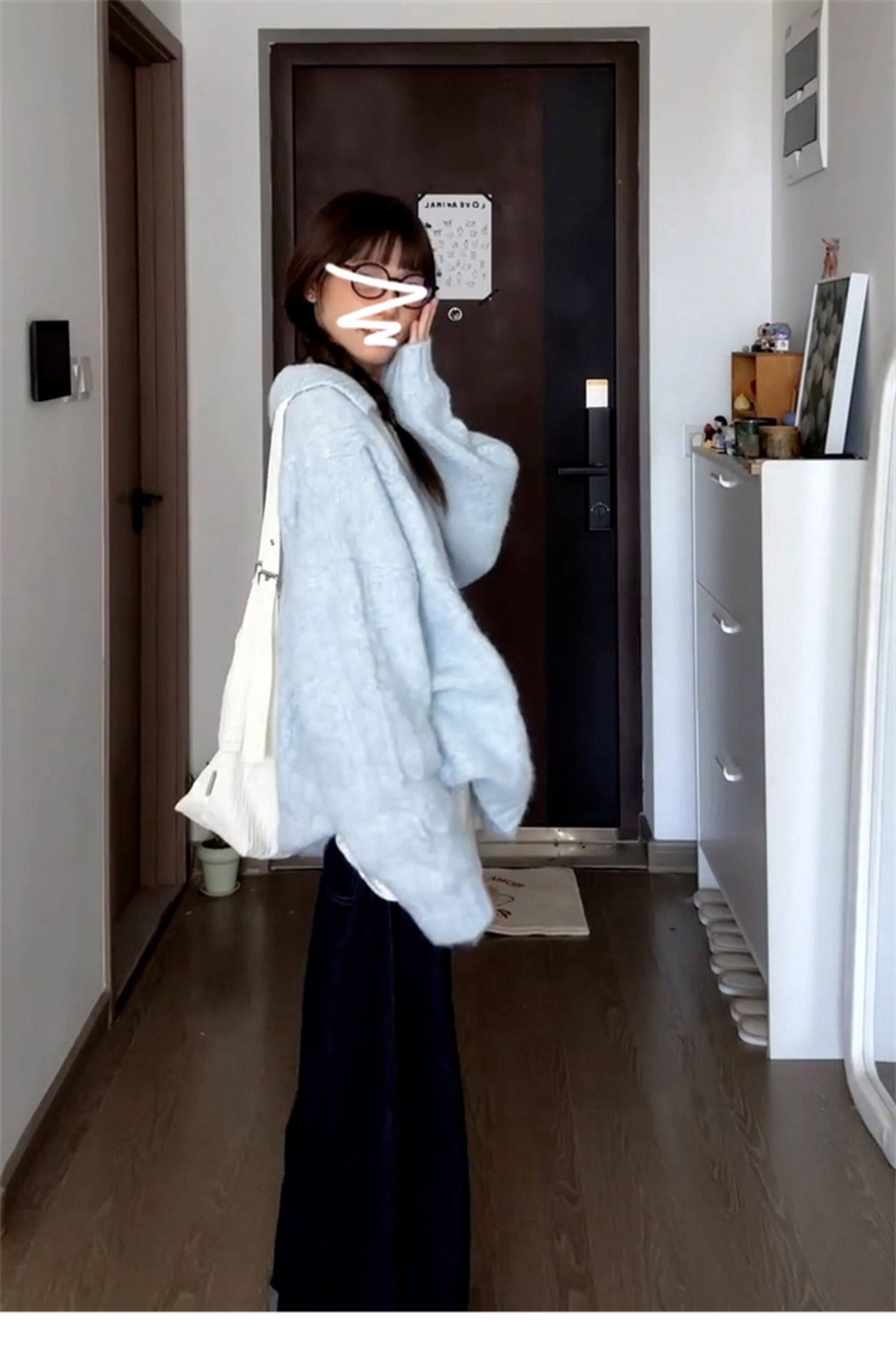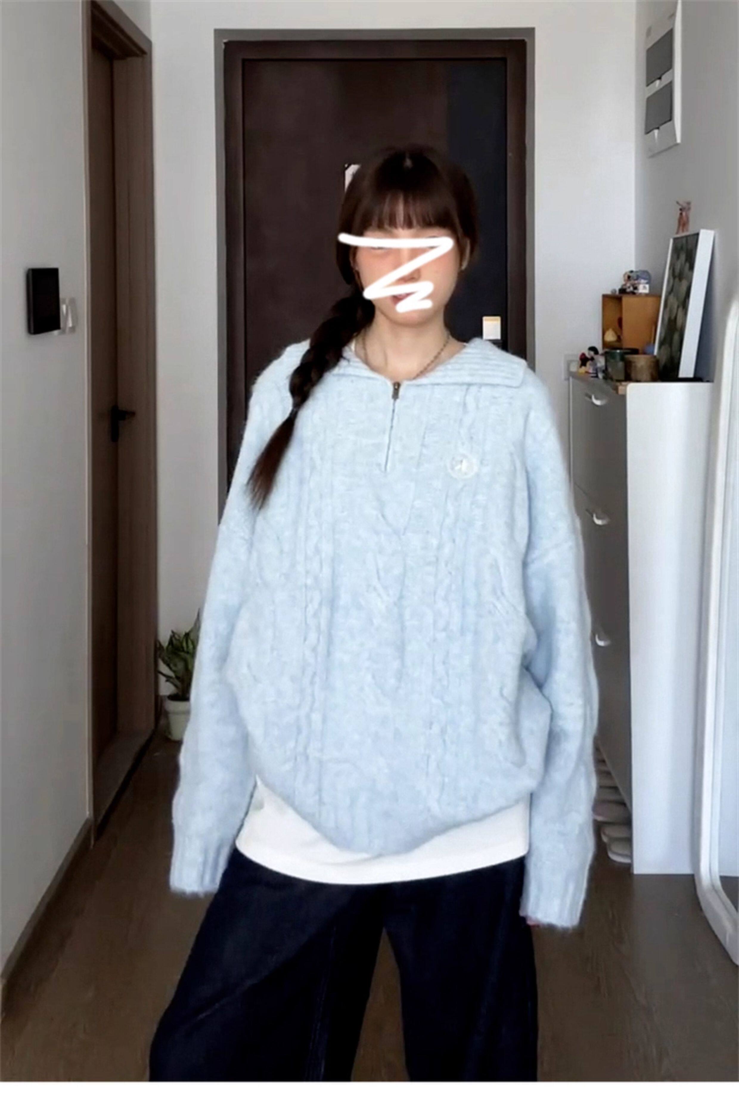 藍色奶fufu慵懶風套頭毛衣女秋冬季2025新款韓系穿搭寬松針織上衣
