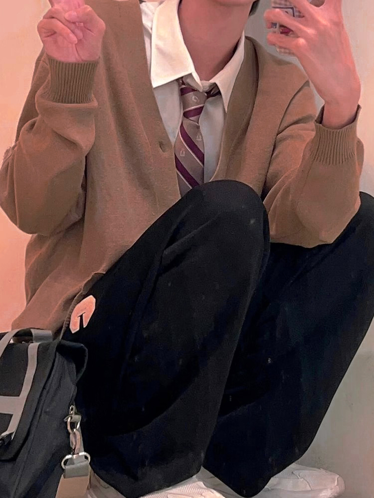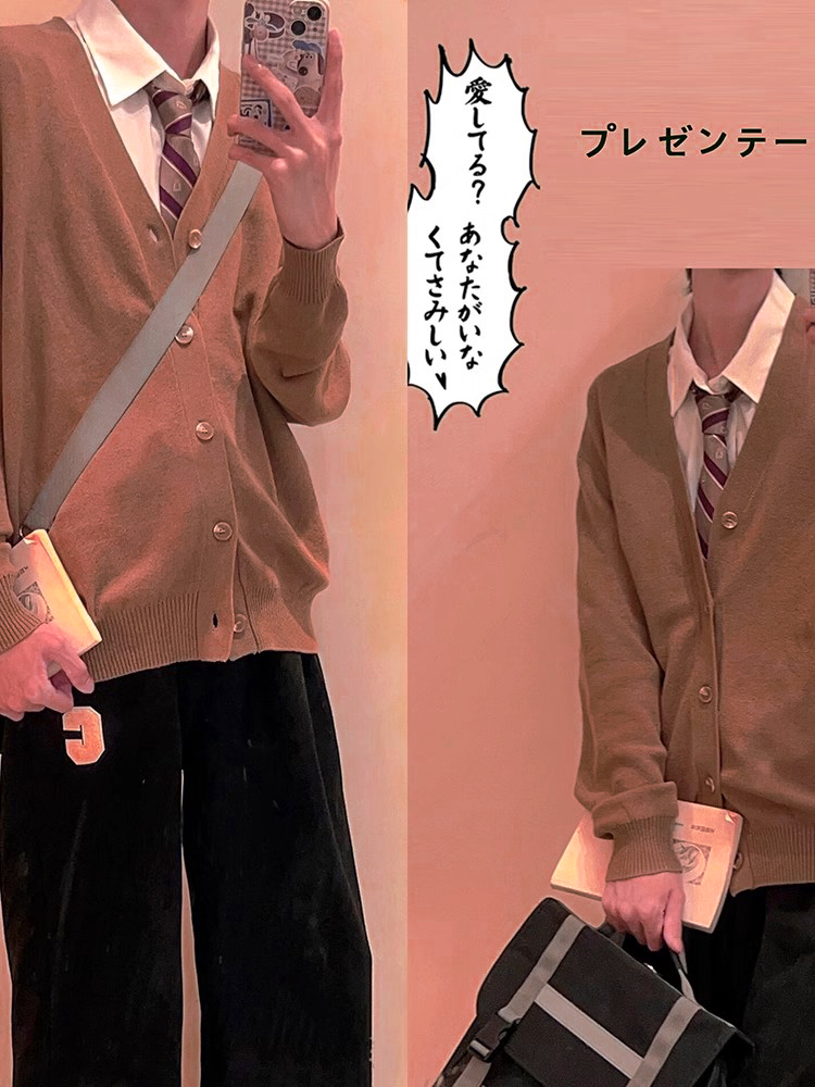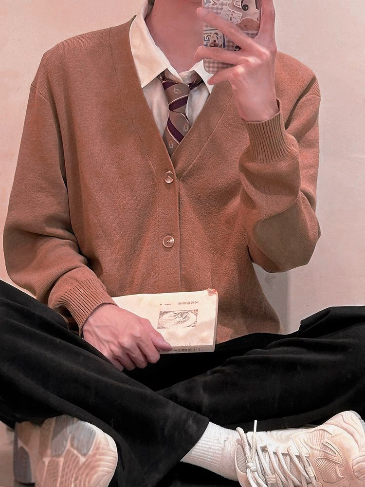 dk日系製服針織衫開衫男秋冬外套毛衣高中生內搭打底衫校供感純色