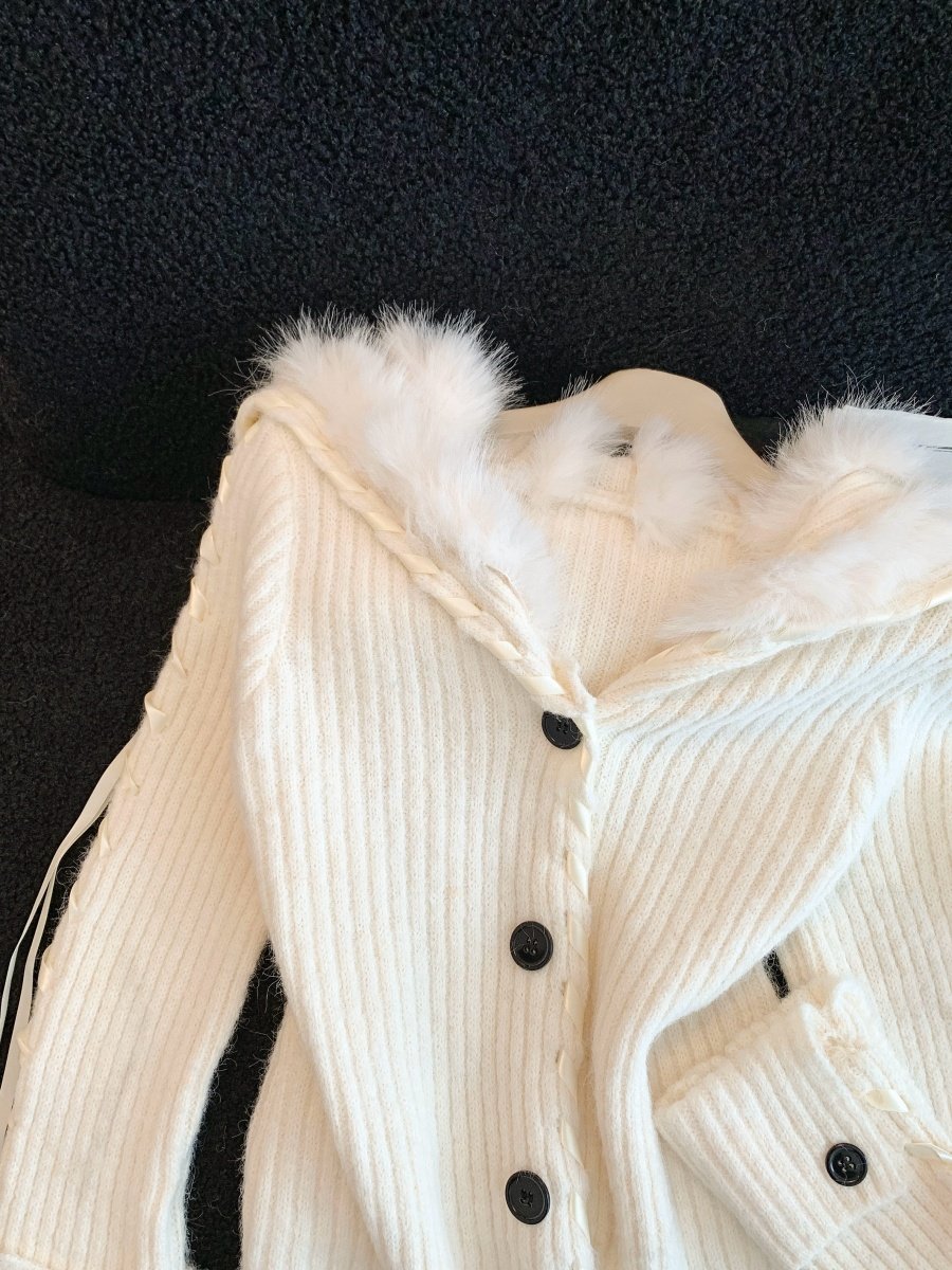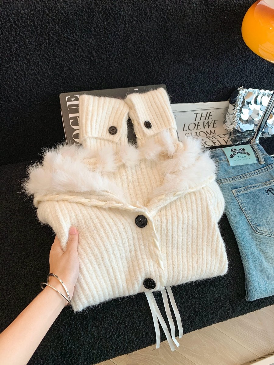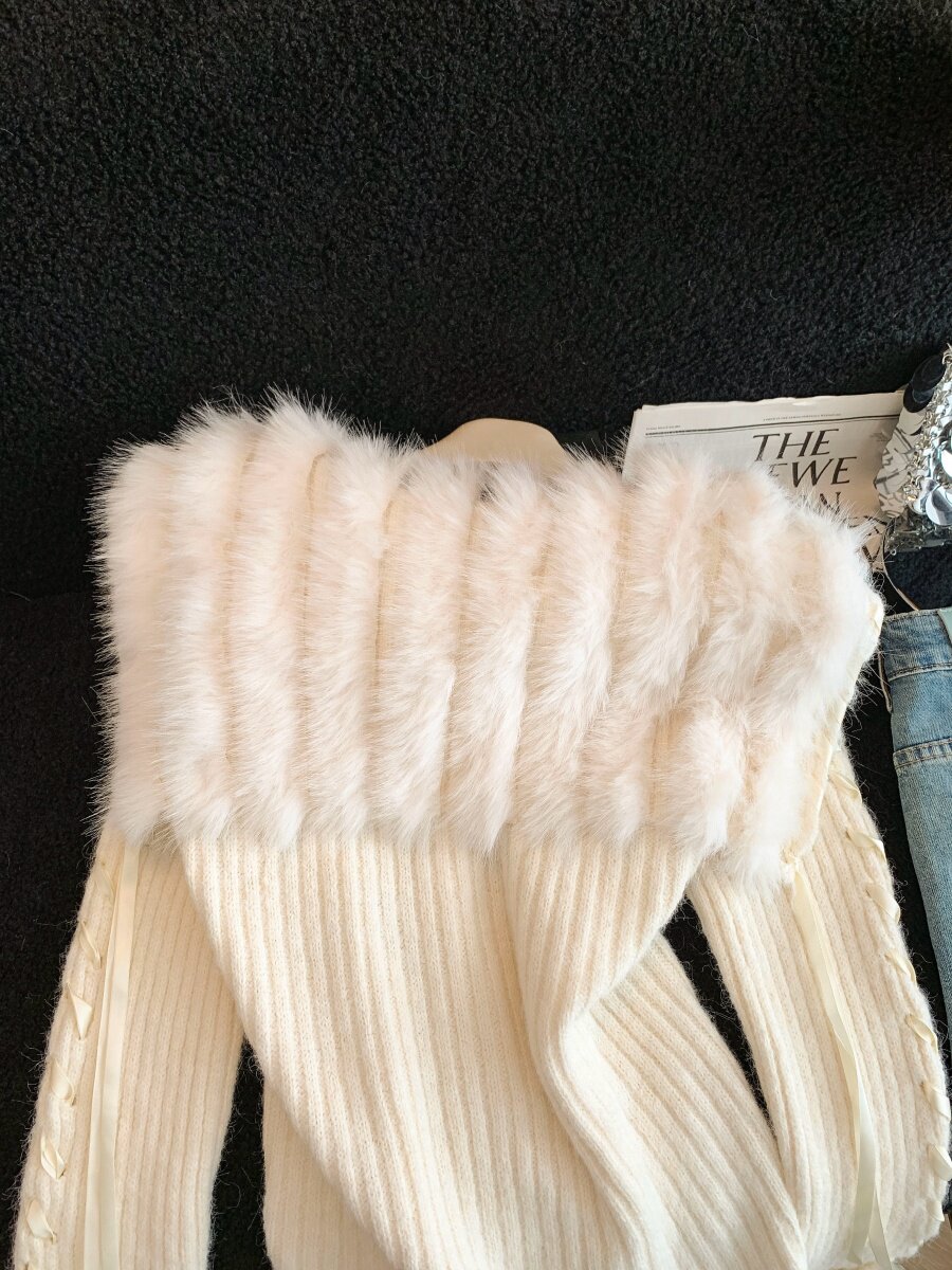 慵懶風仿狐狸毛座山雕坑條紋毛衣女裝秋冬花灰色軟糯針織外套上衣