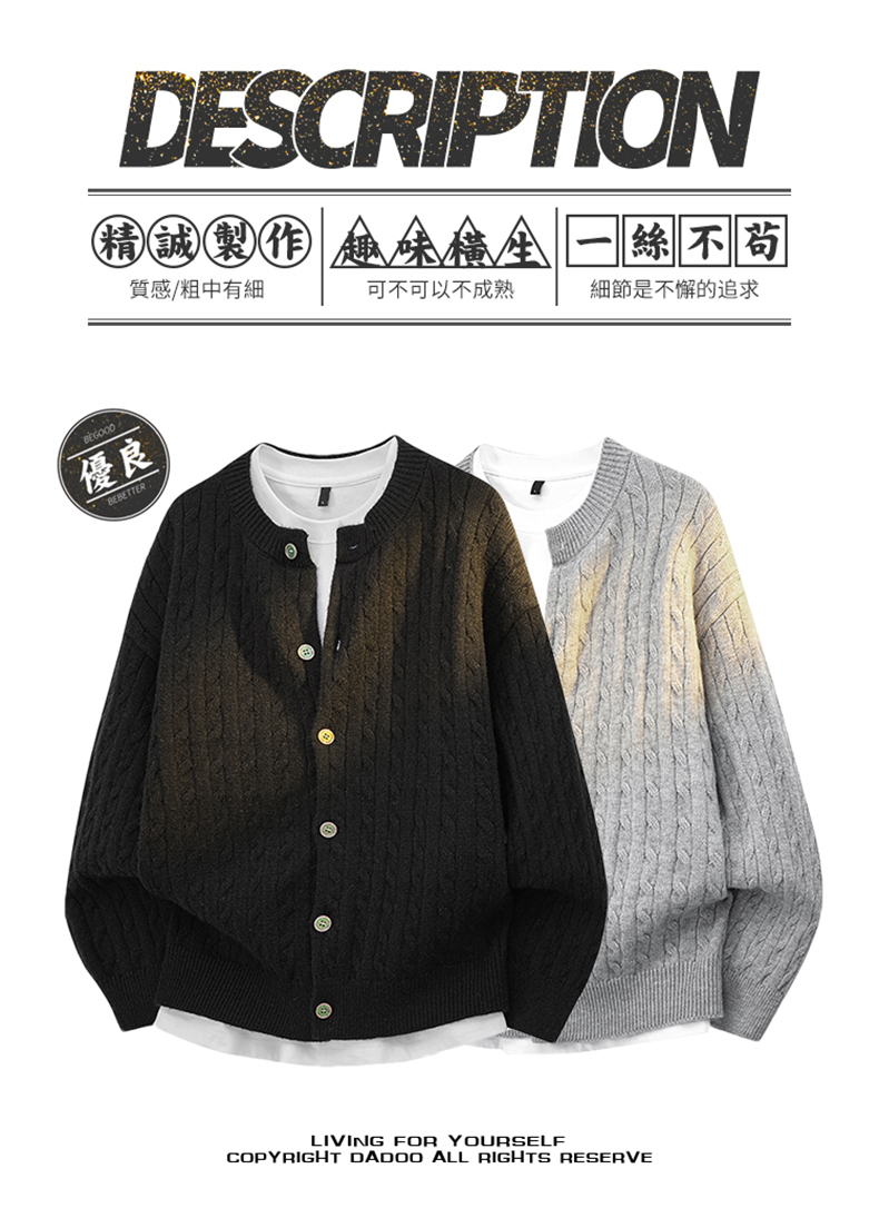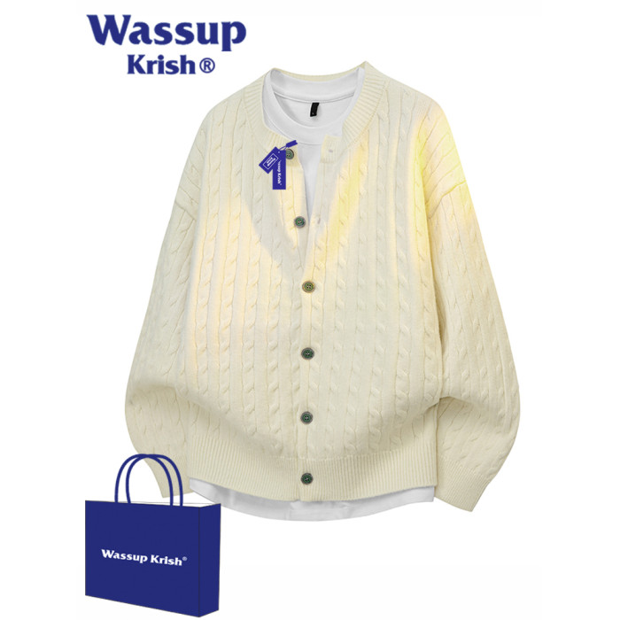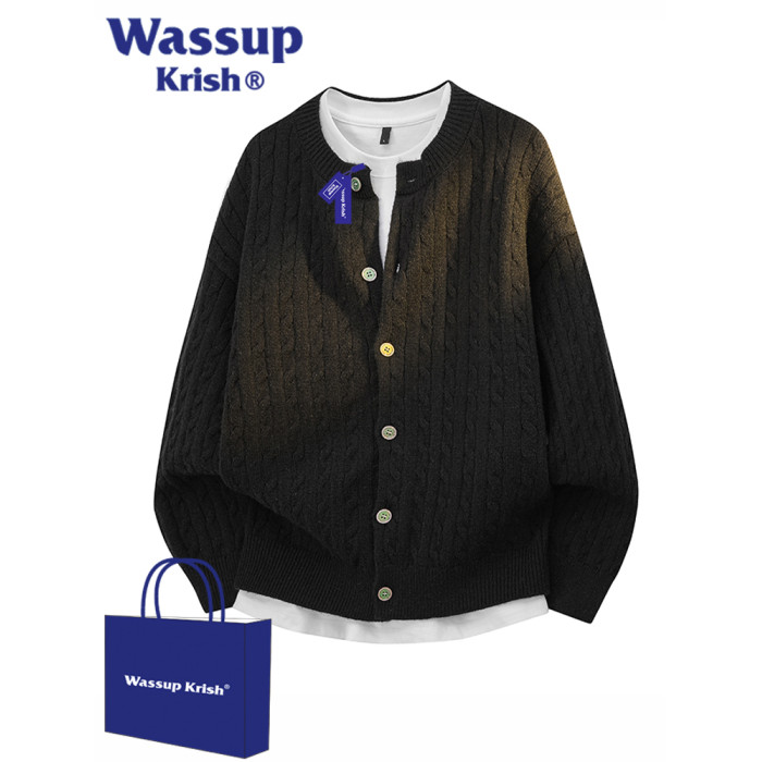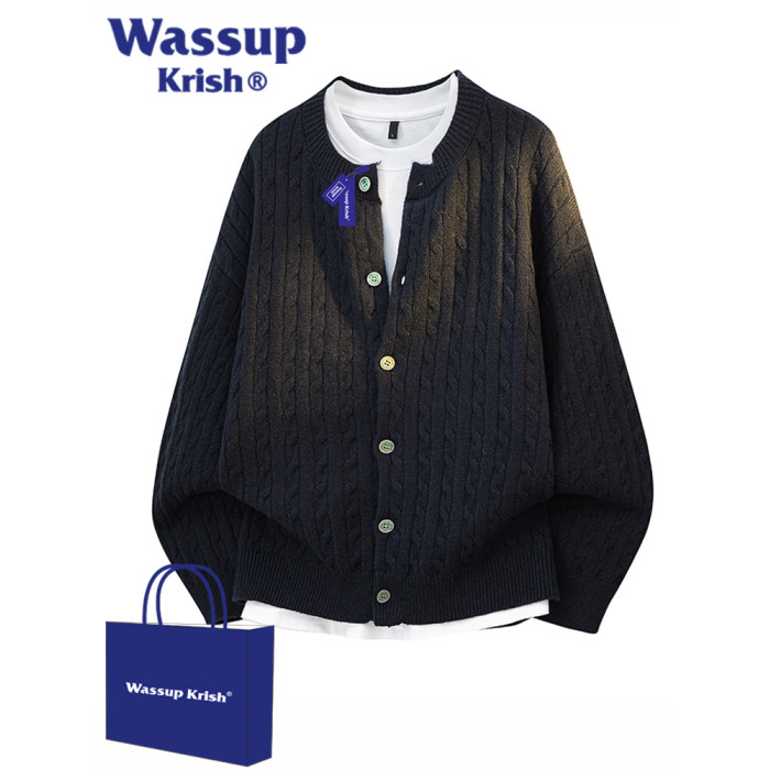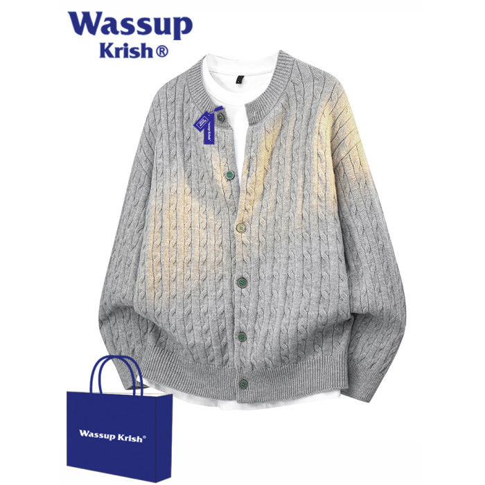 WASSUP KRISH老錢風復古慵懶風開衫毛衣男秋季新款情侶針織衫外套