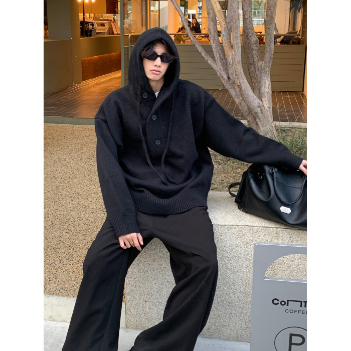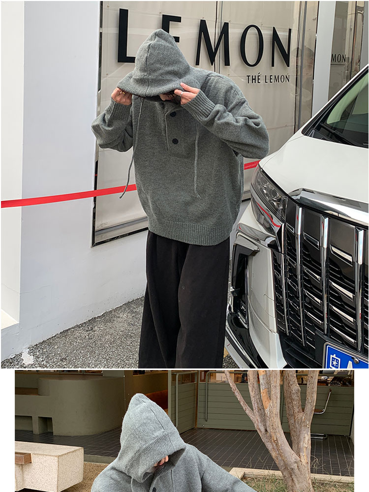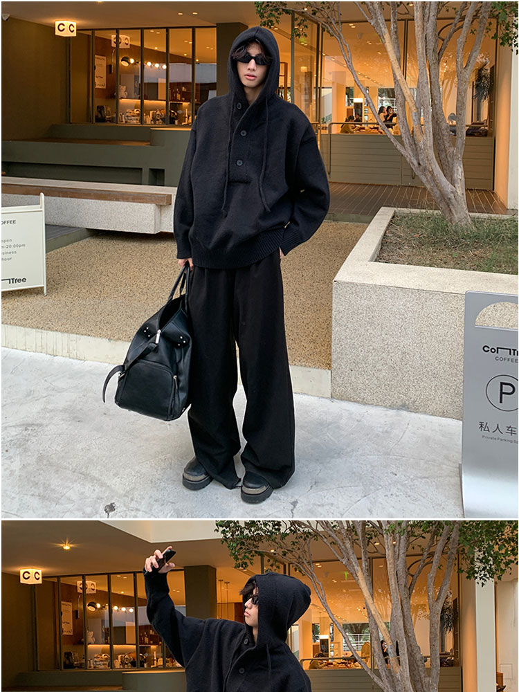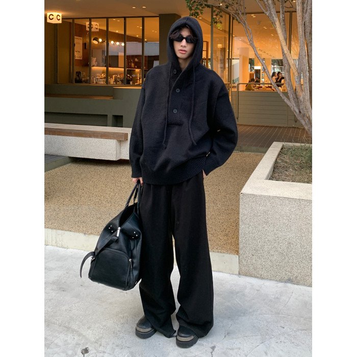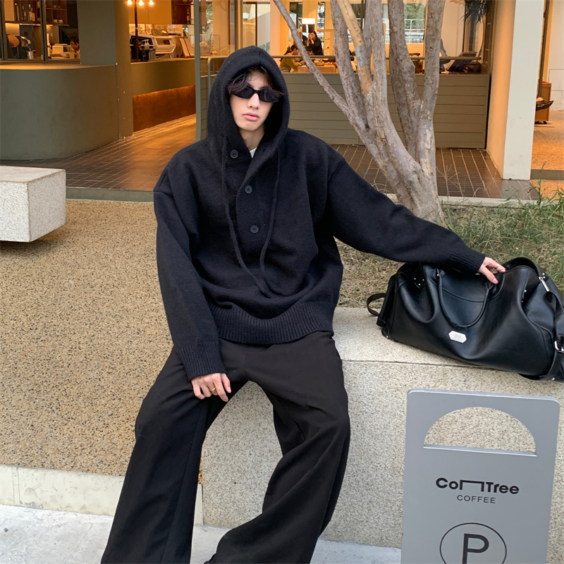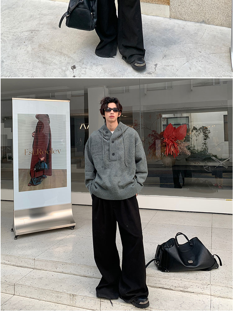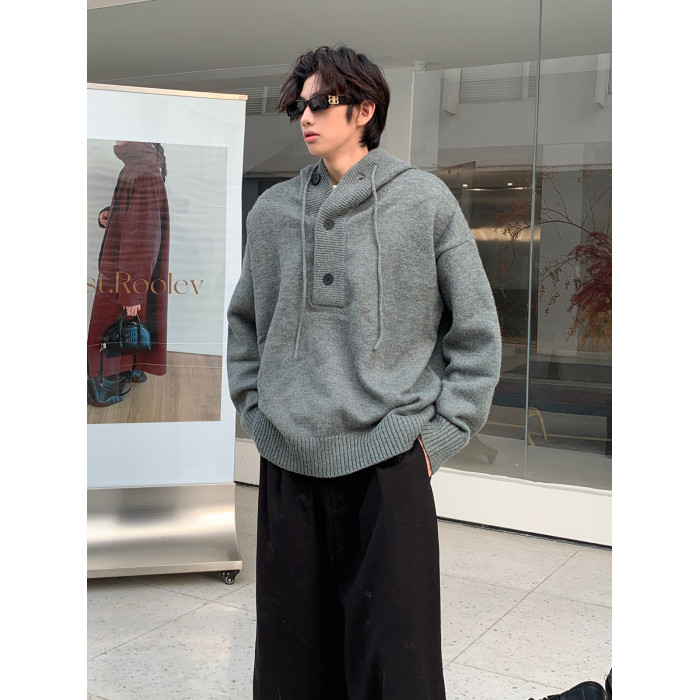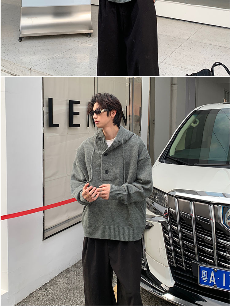 韓系慵懶氛圍感半開衫毛衣男秋冬cleanfit寬松休閒套頭針織衫上衣