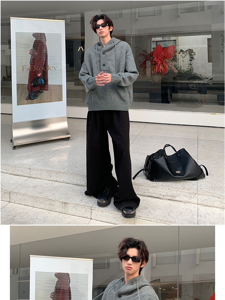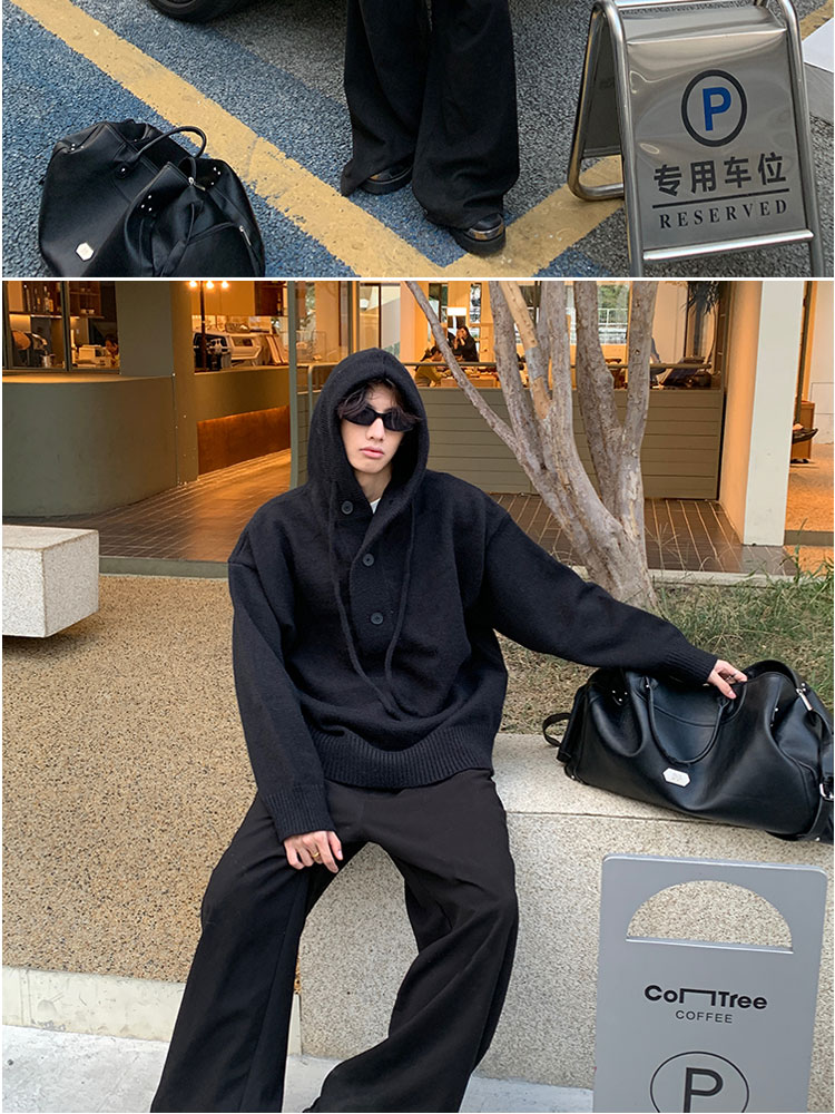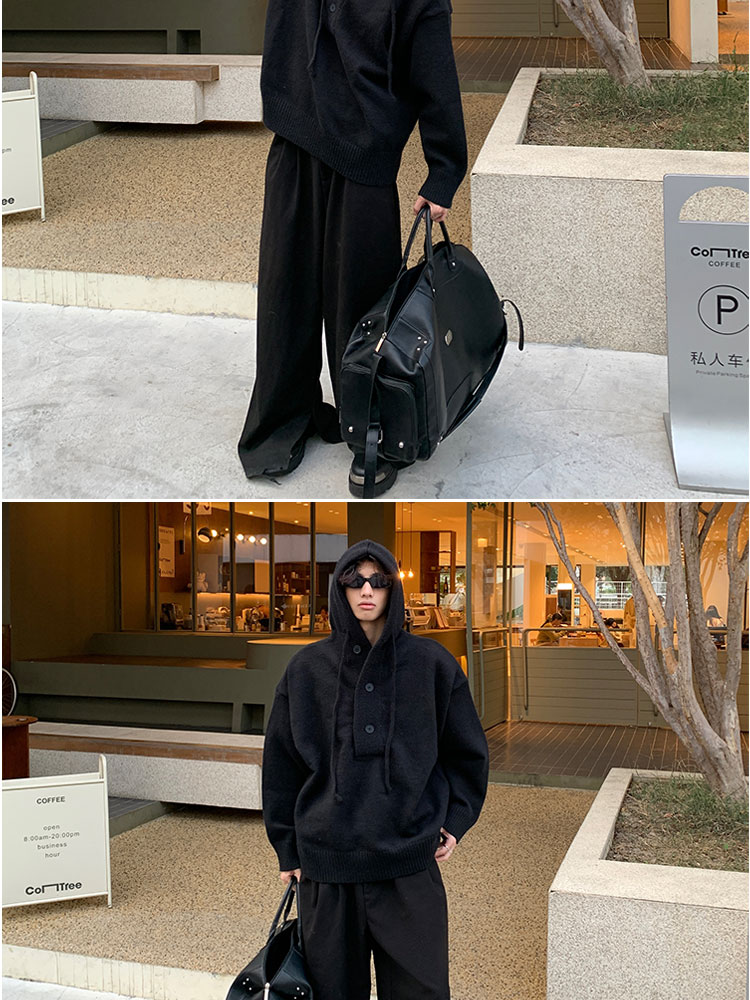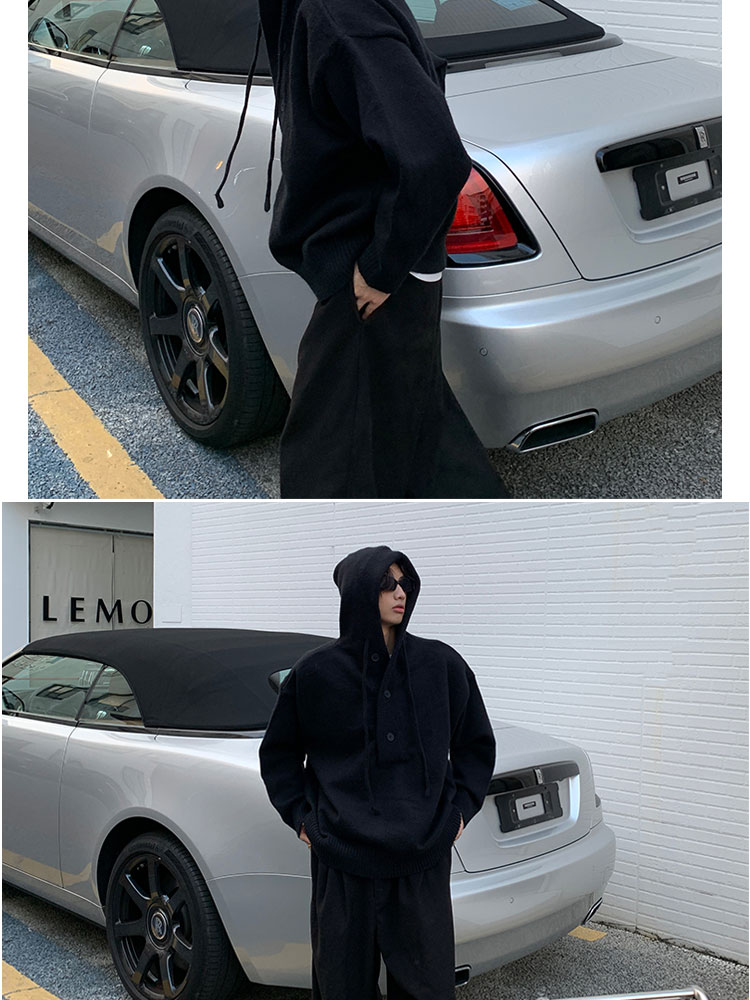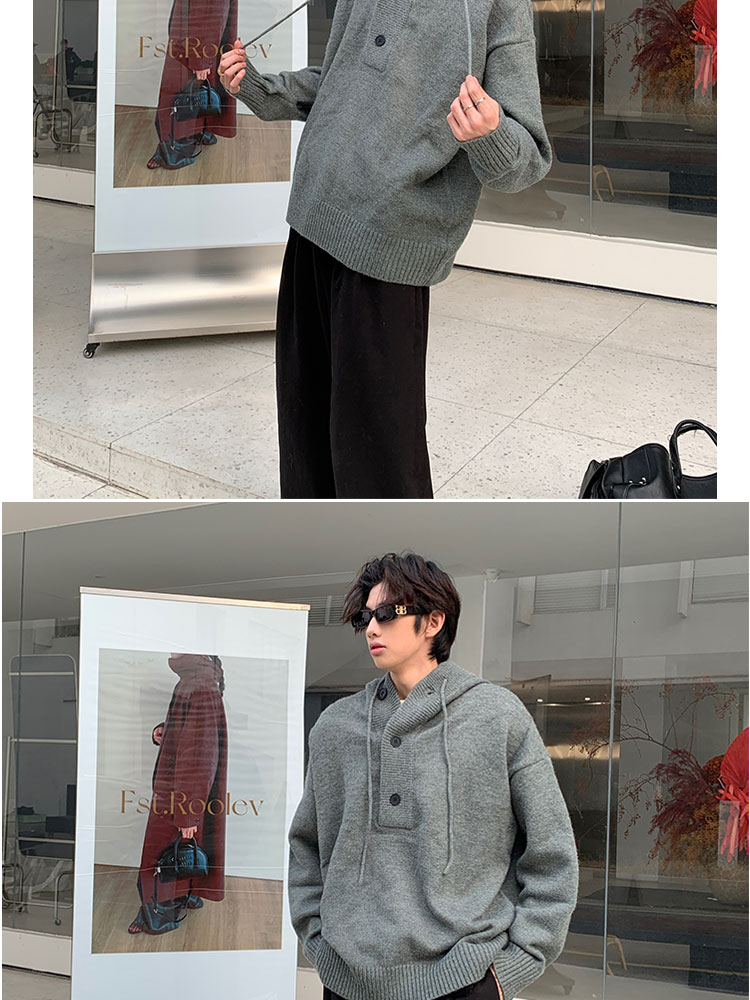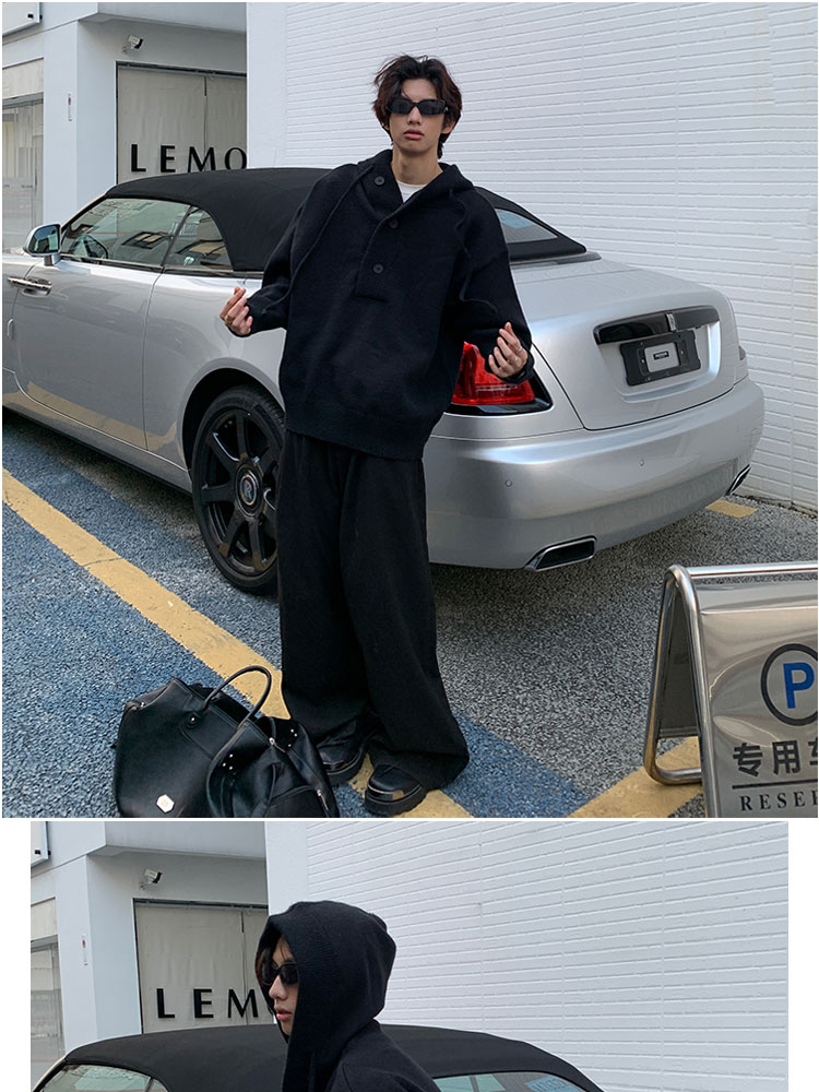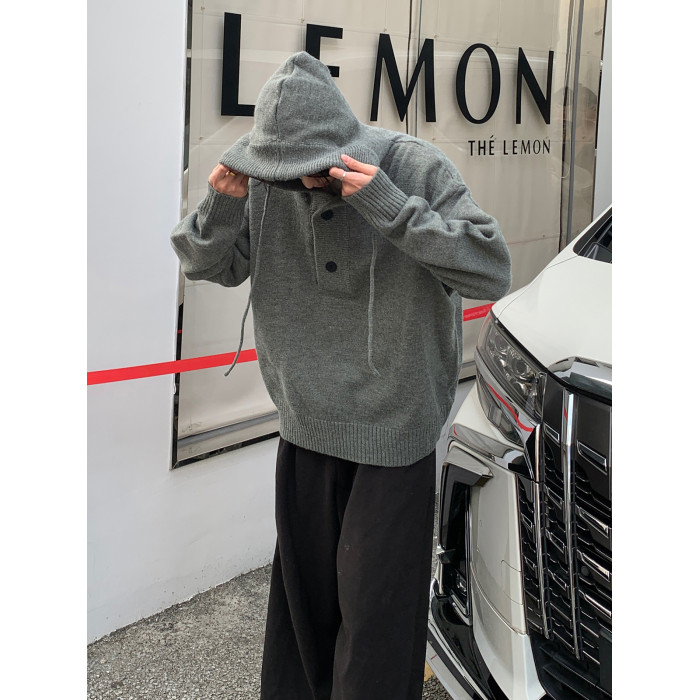 韓系慵懶氛圍感半開衫毛衣男秋冬cleanfit寬松休閒套頭針織衫上衣