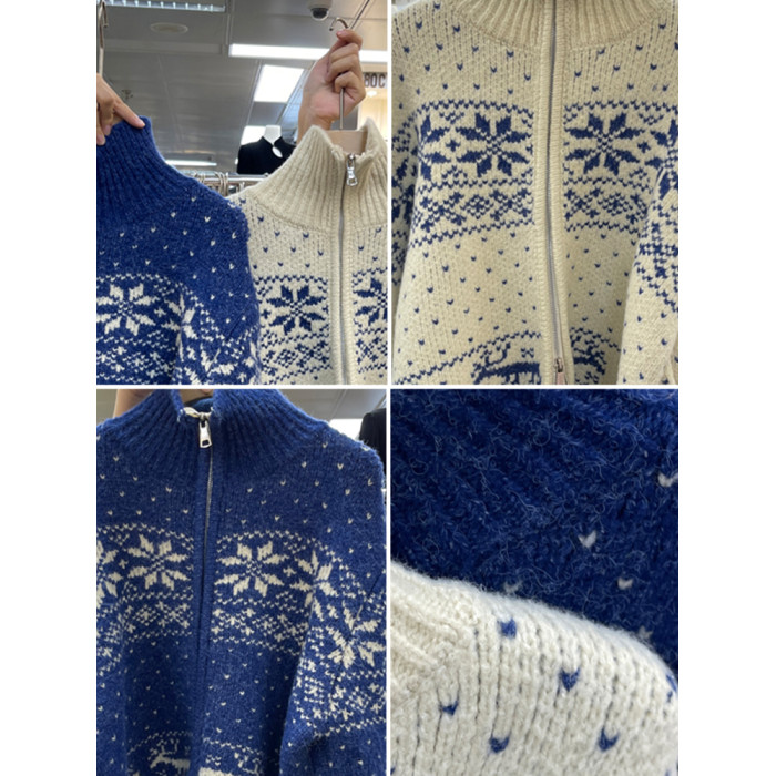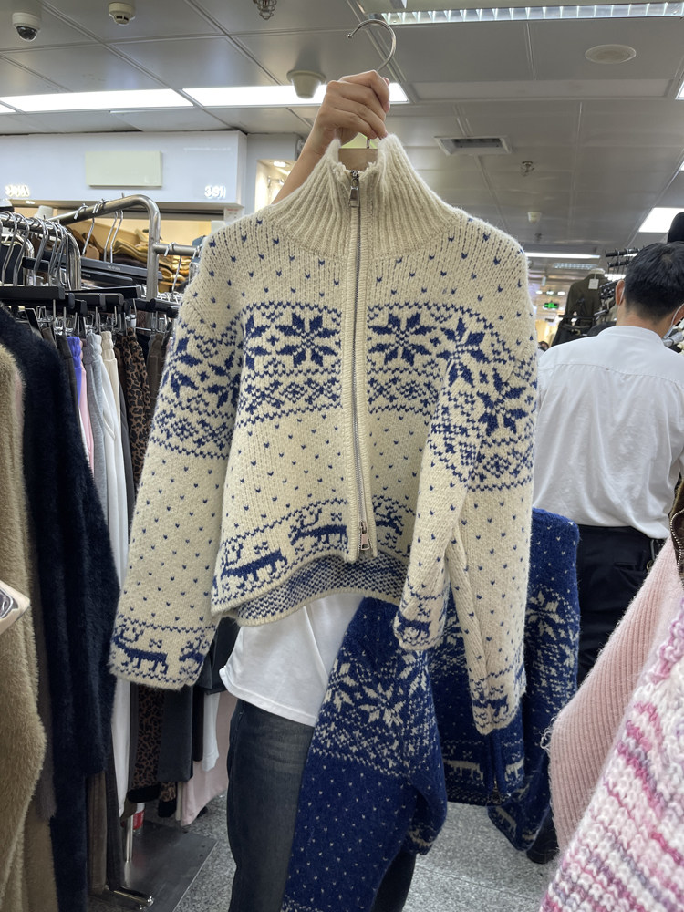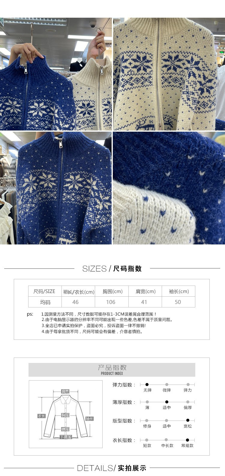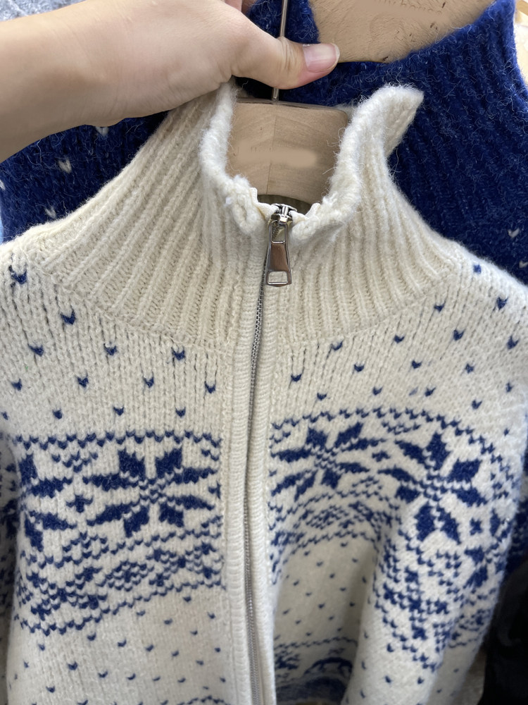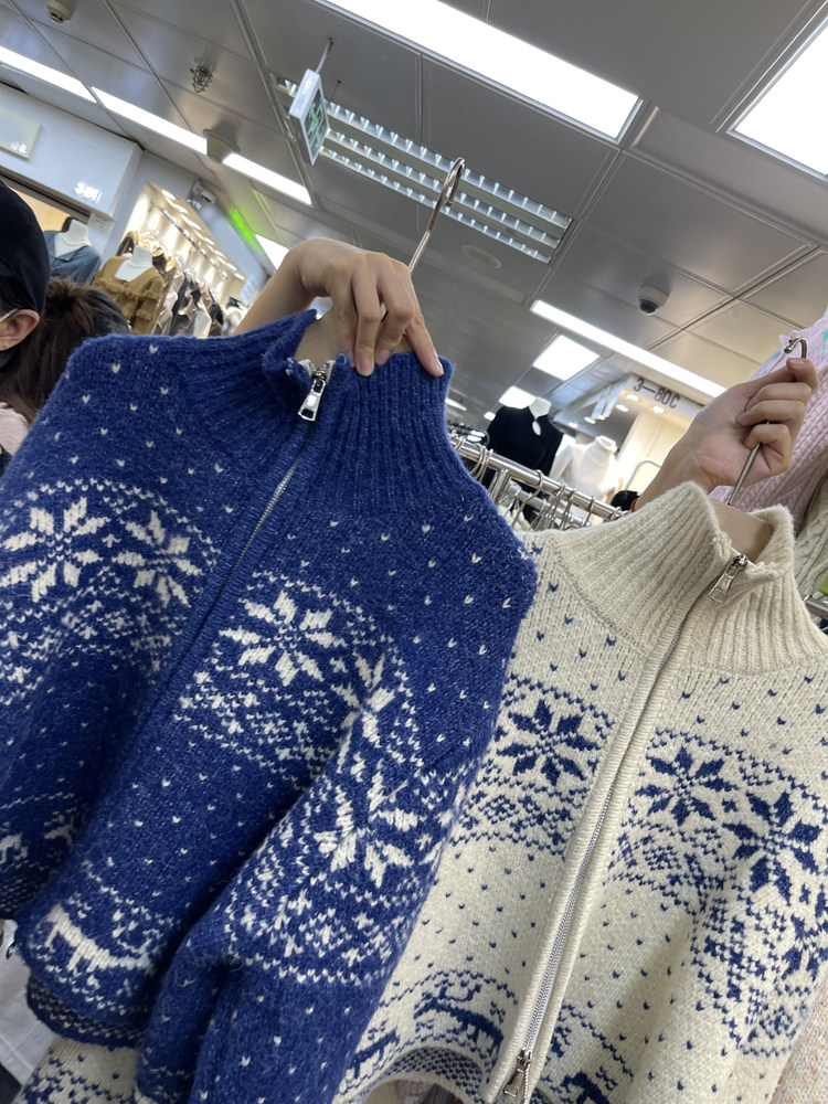 韓國東大門2025年秋冬淨色雪花甜美百搭寬松減齡拉鍊款毛衣開衫女