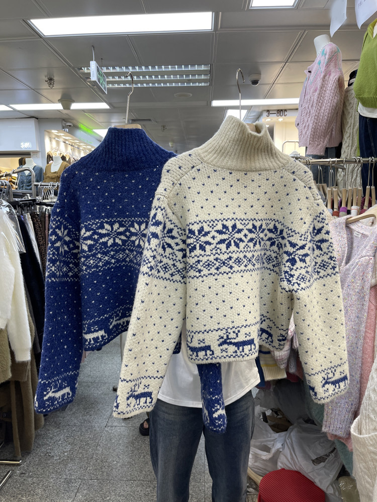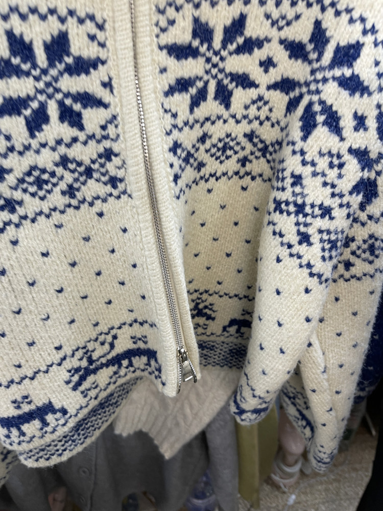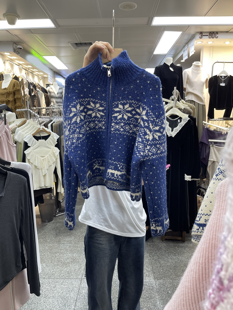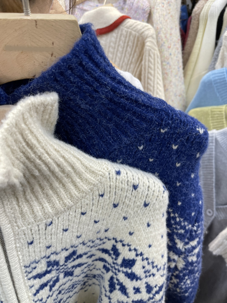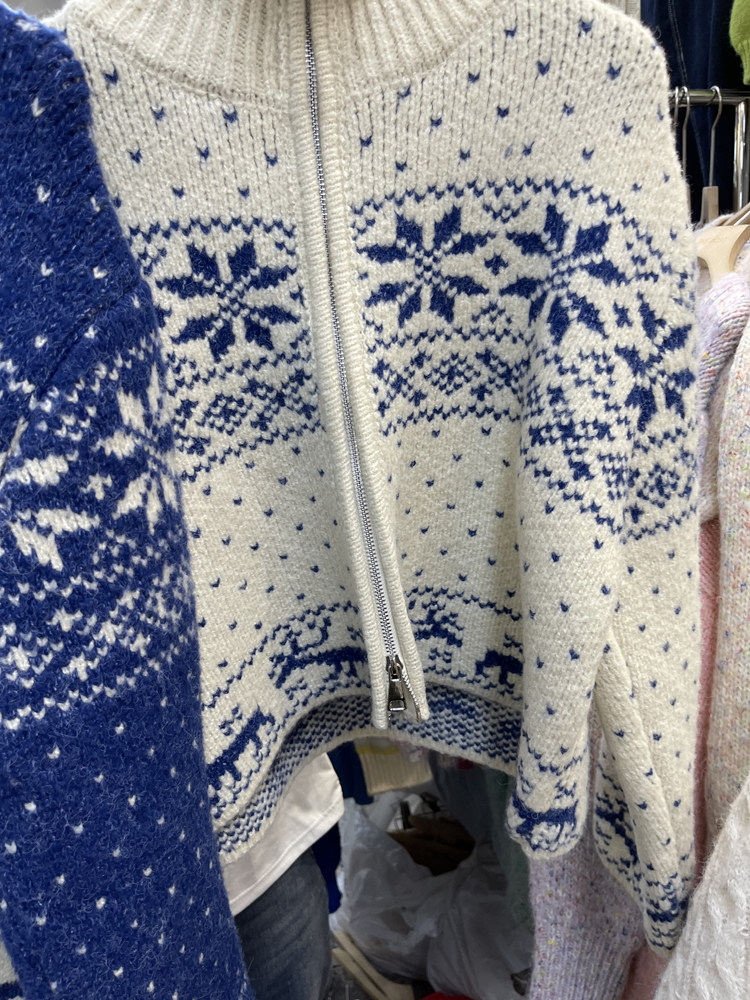 韓國東大門2025年秋冬淨色雪花甜美百搭寬松減齡拉鍊款毛衣開衫女