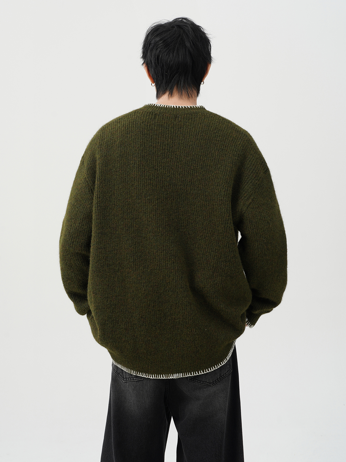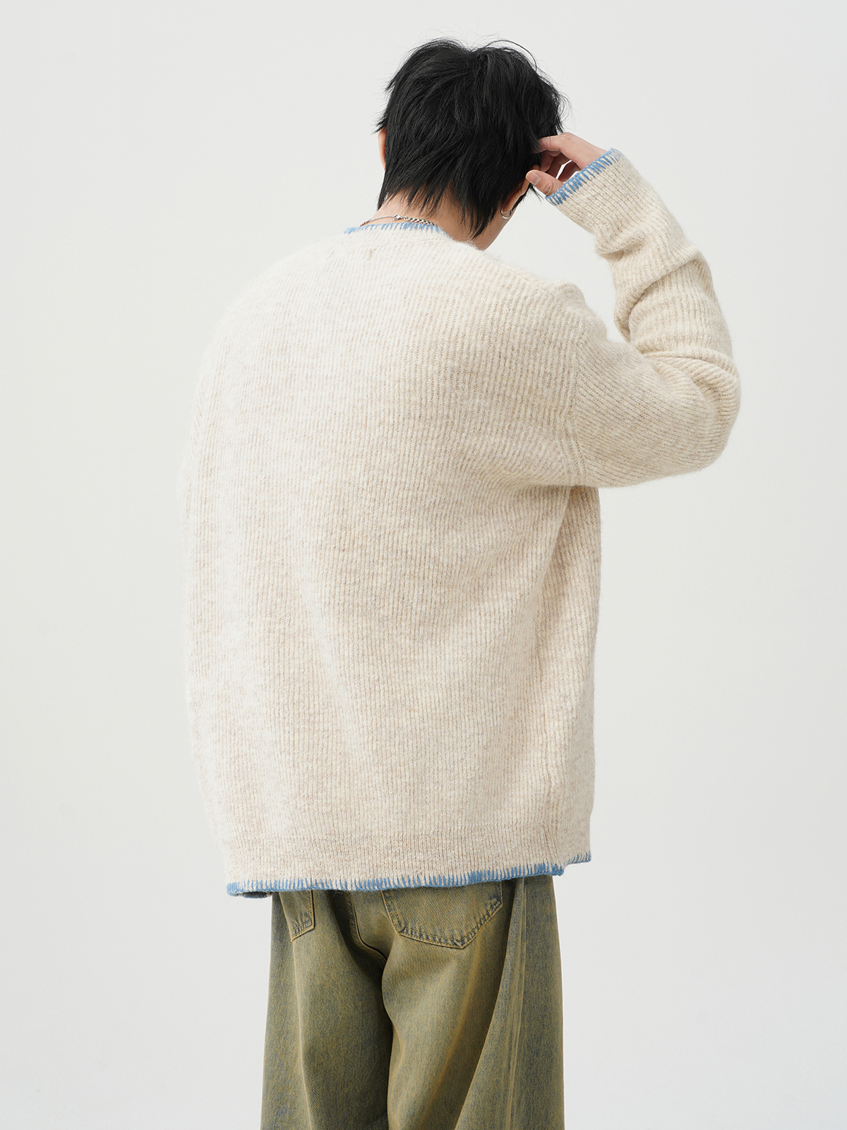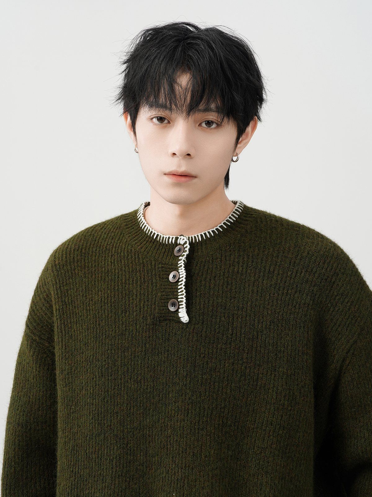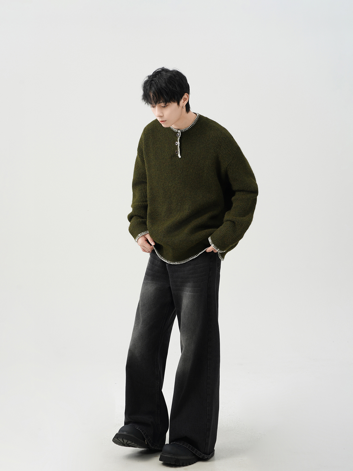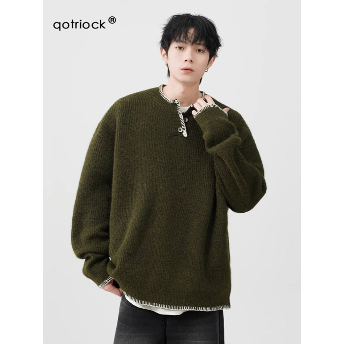 小衆設計感亨利領毛衣男秋冬復古氛圍感寬松針織衫慵懶風情侶外套