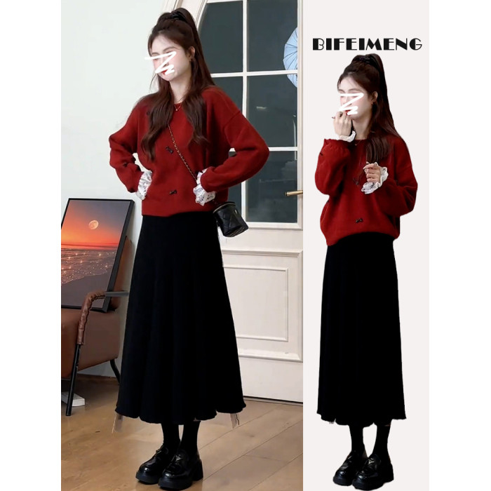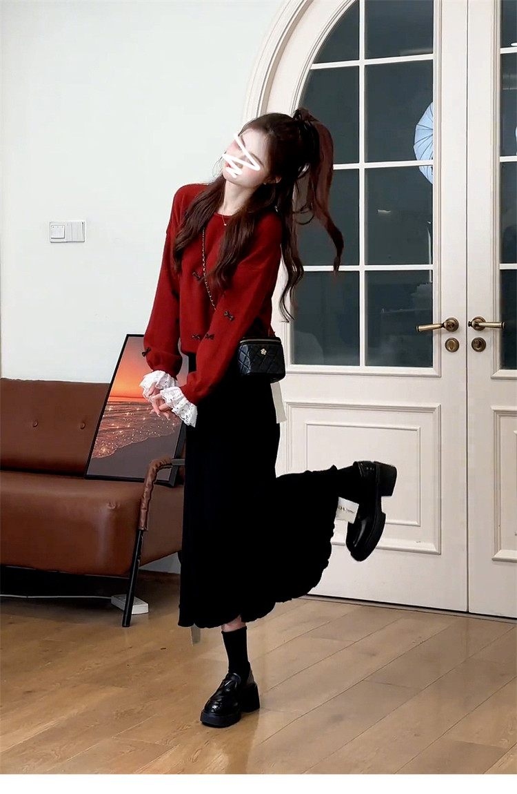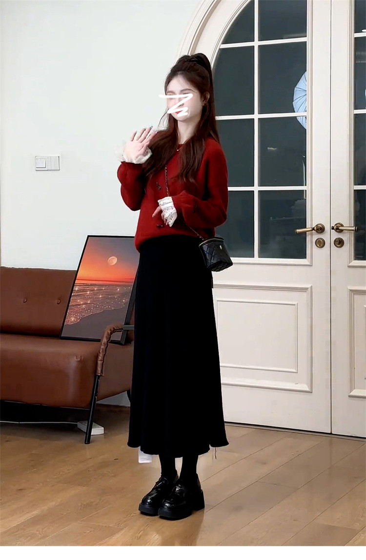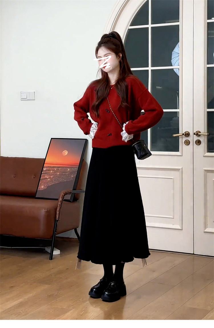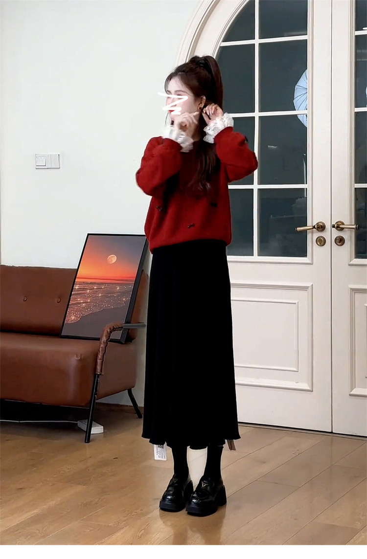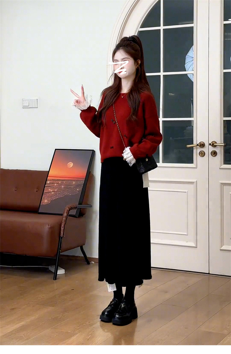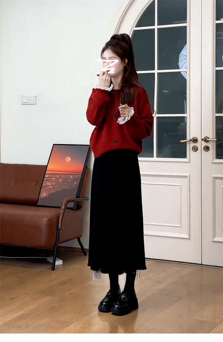 紅色復古高級感套頭毛衣女款2025新款秋冬季慵懶風寬松加厚短上衣