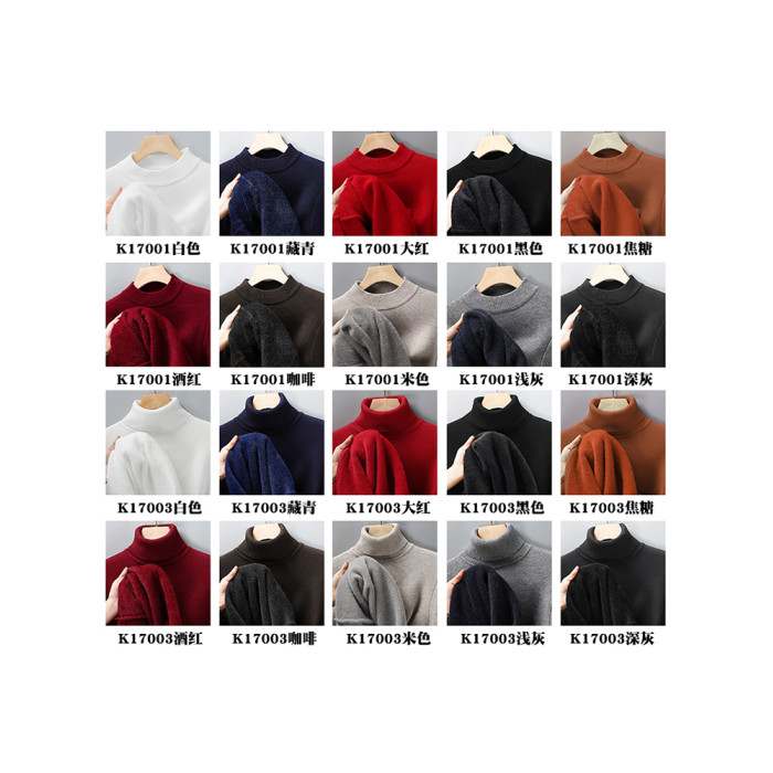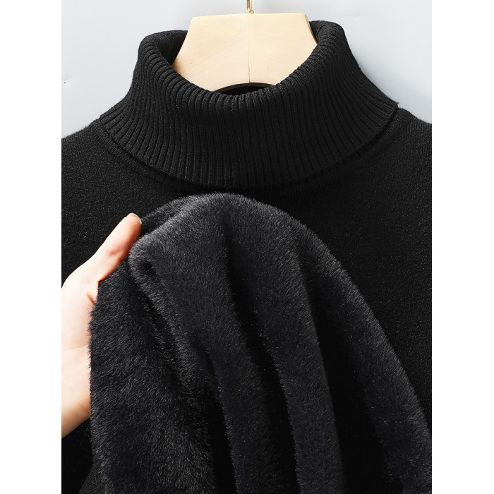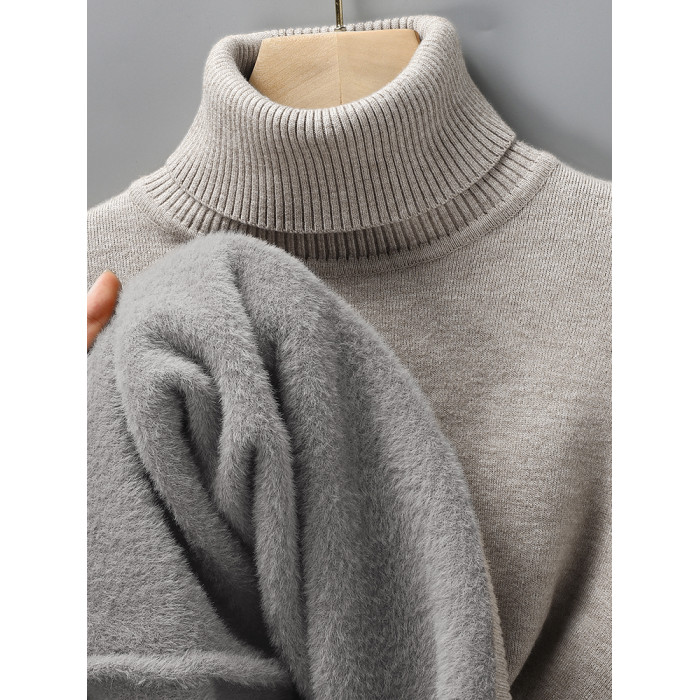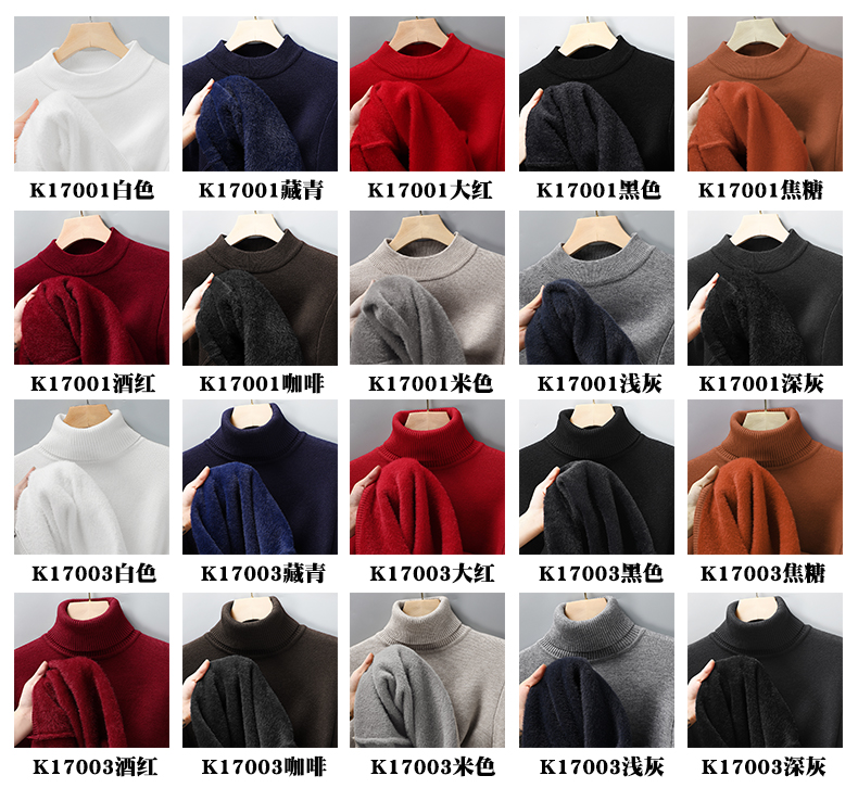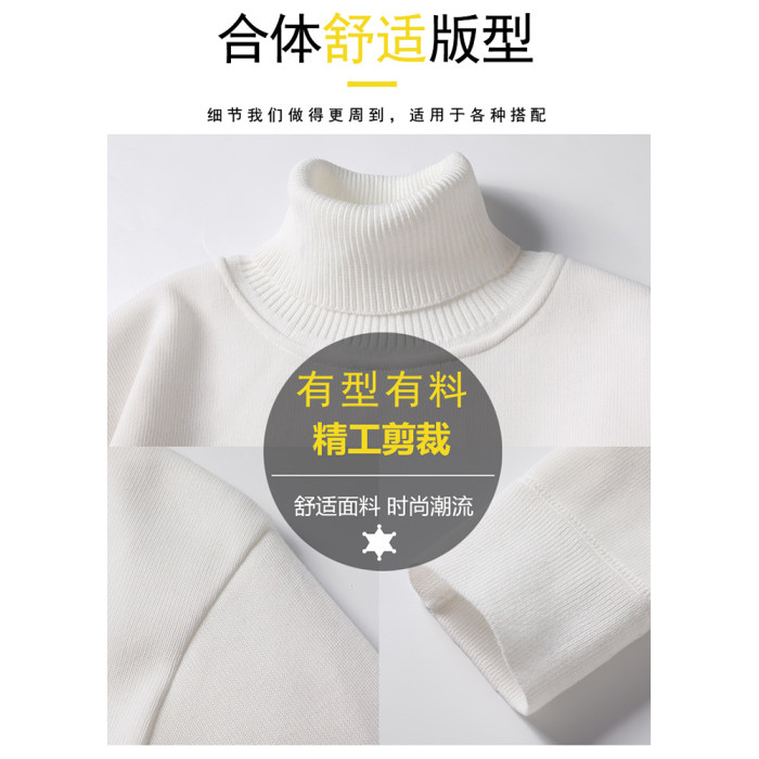 冬季新款純色毛衣加絨加厚可翻高領修身針織衫男士長領內搭打底衫