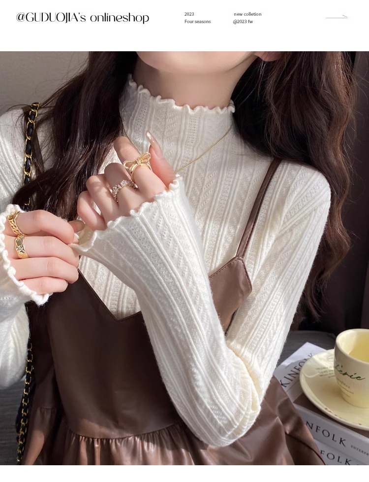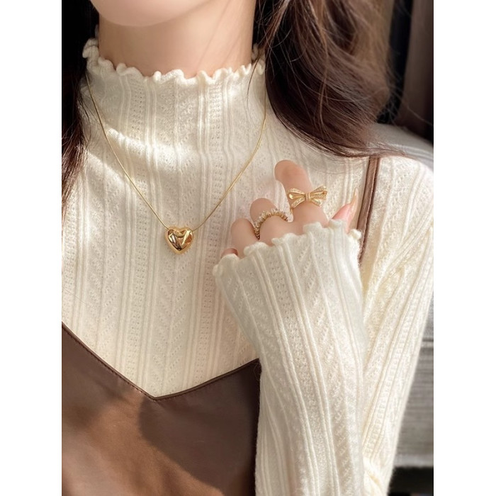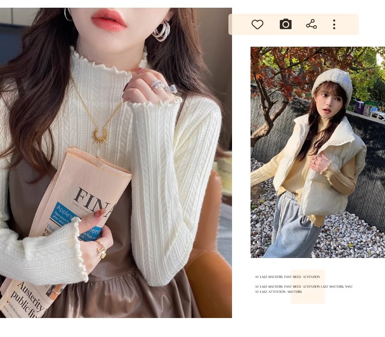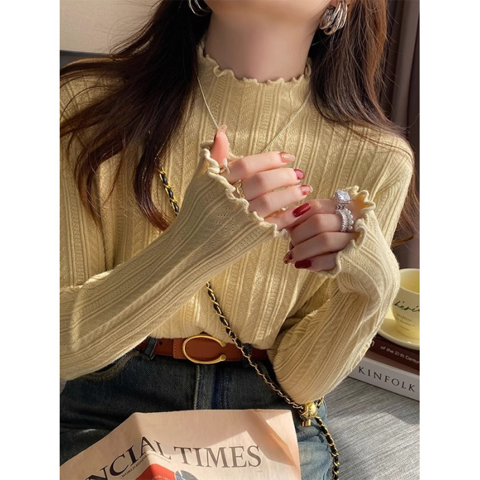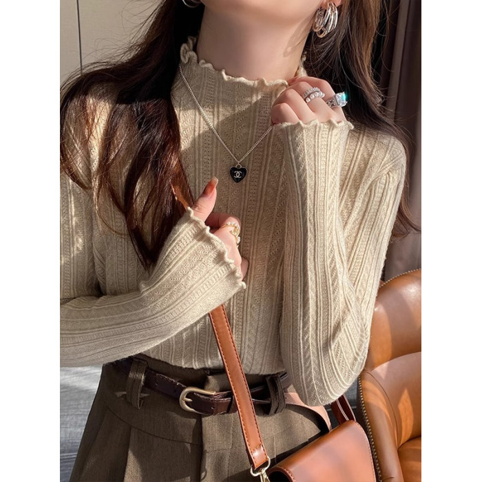 高級感修身木耳邊半高領打底衫女毛衣秋冬2025新款百搭洋氣針織衫