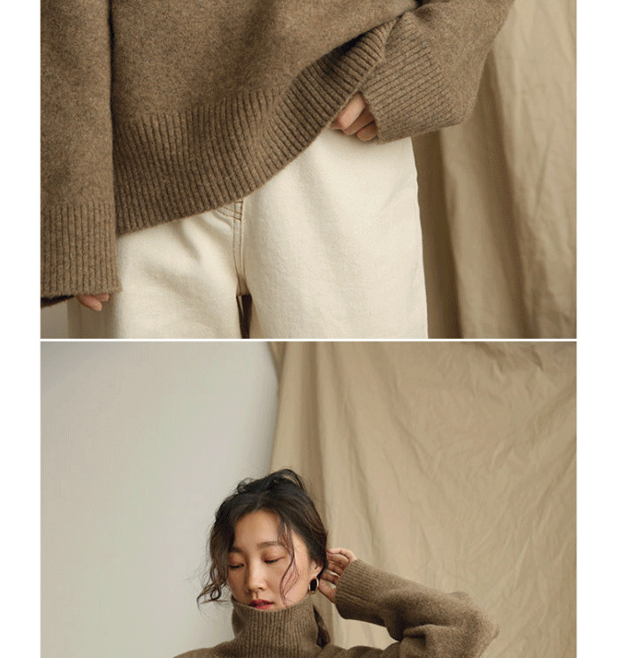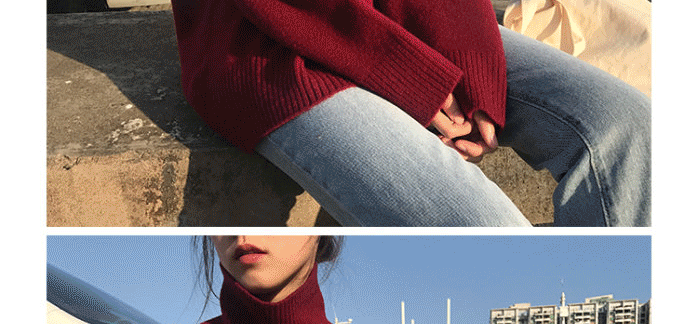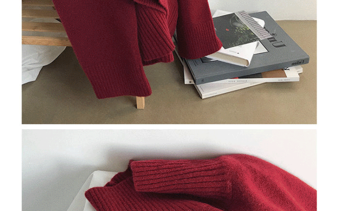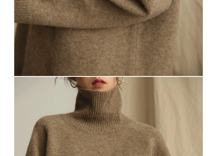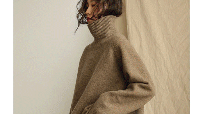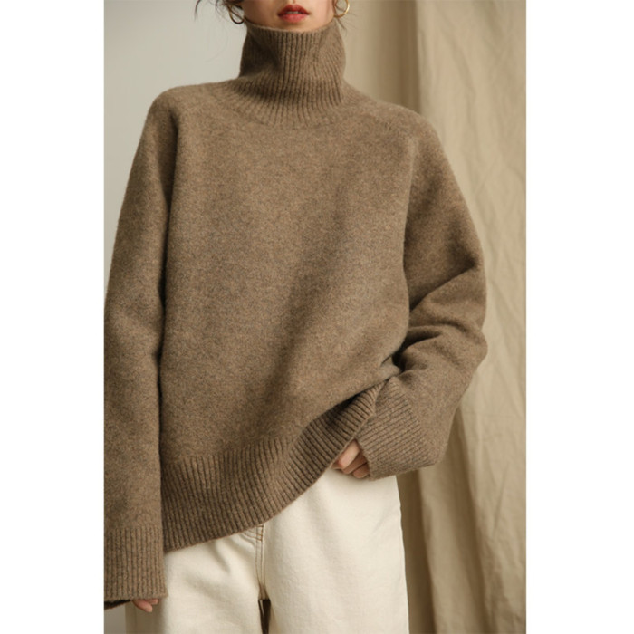 秋冬季新款法式復古慵懶風高領毛衣寬松加厚套頭打底針織衫女上衣
