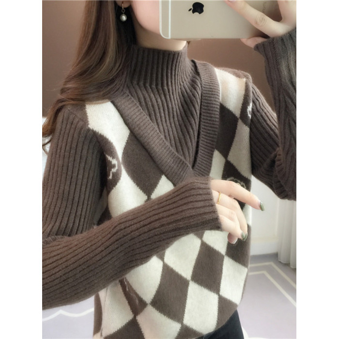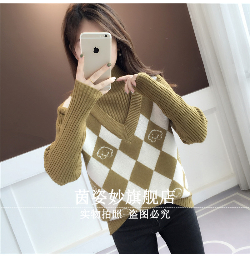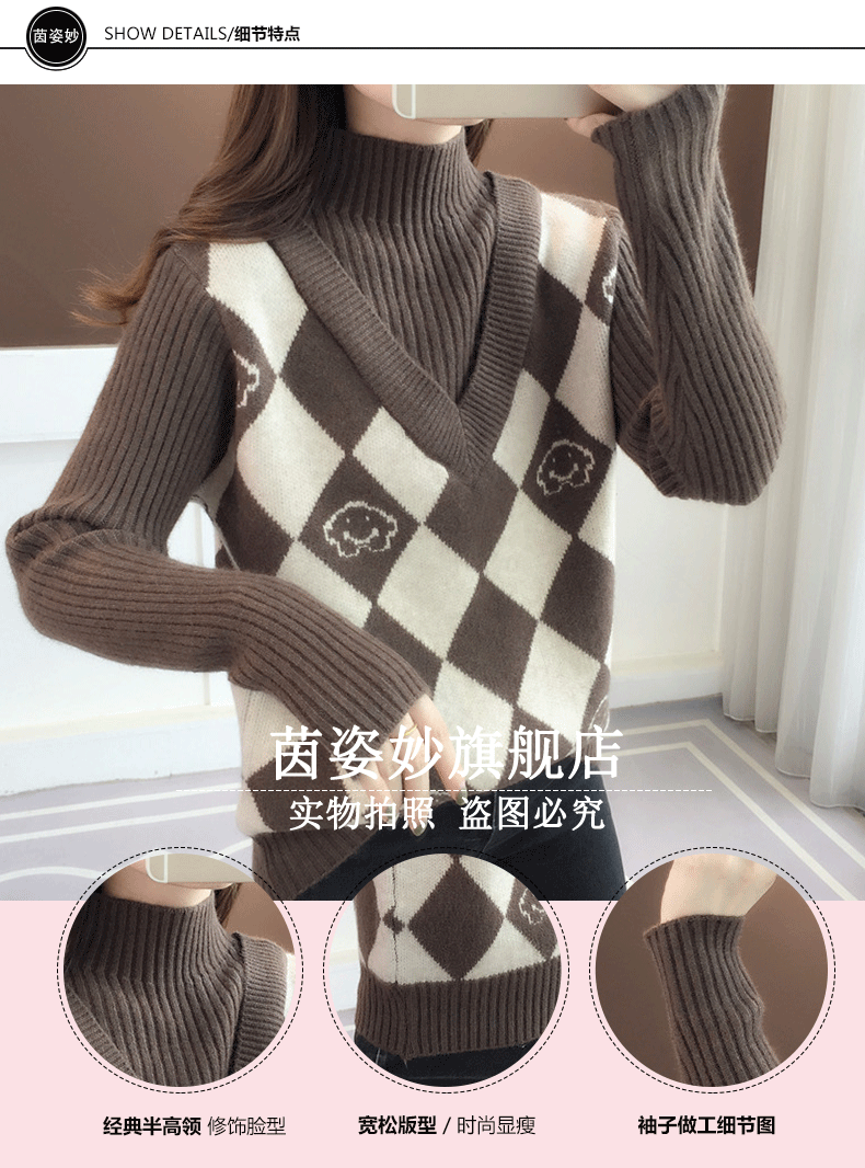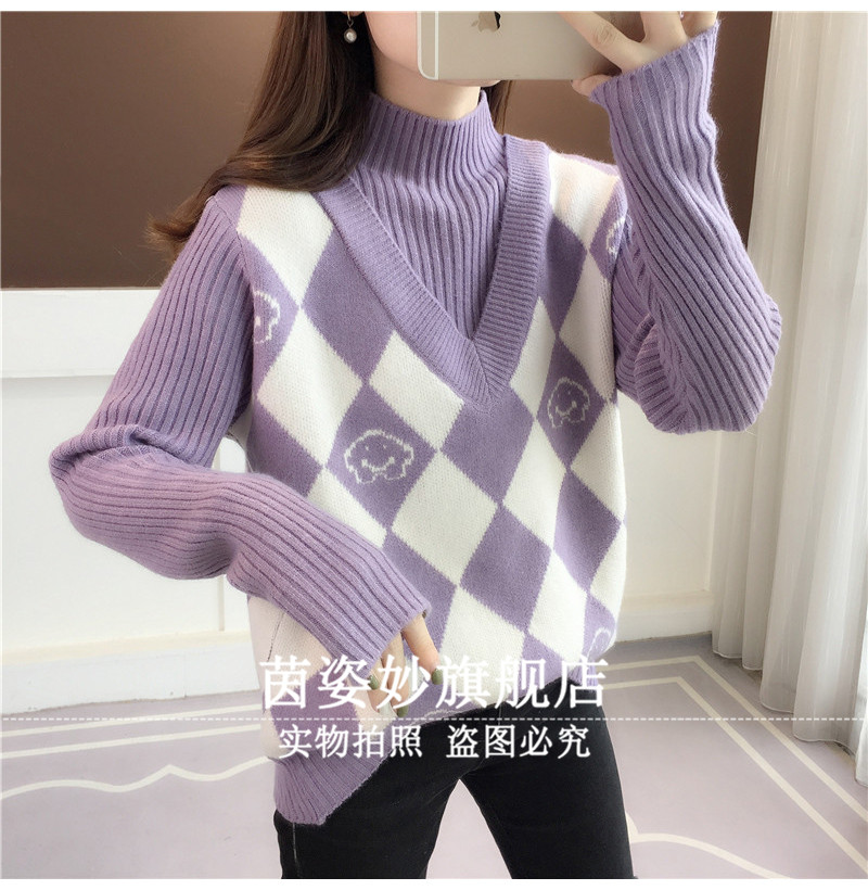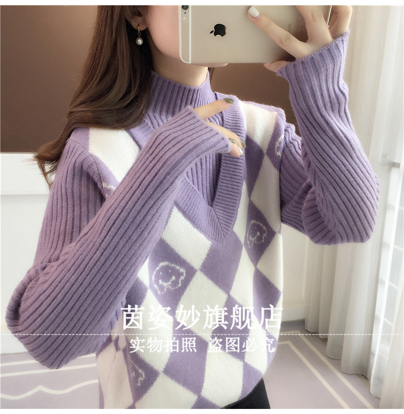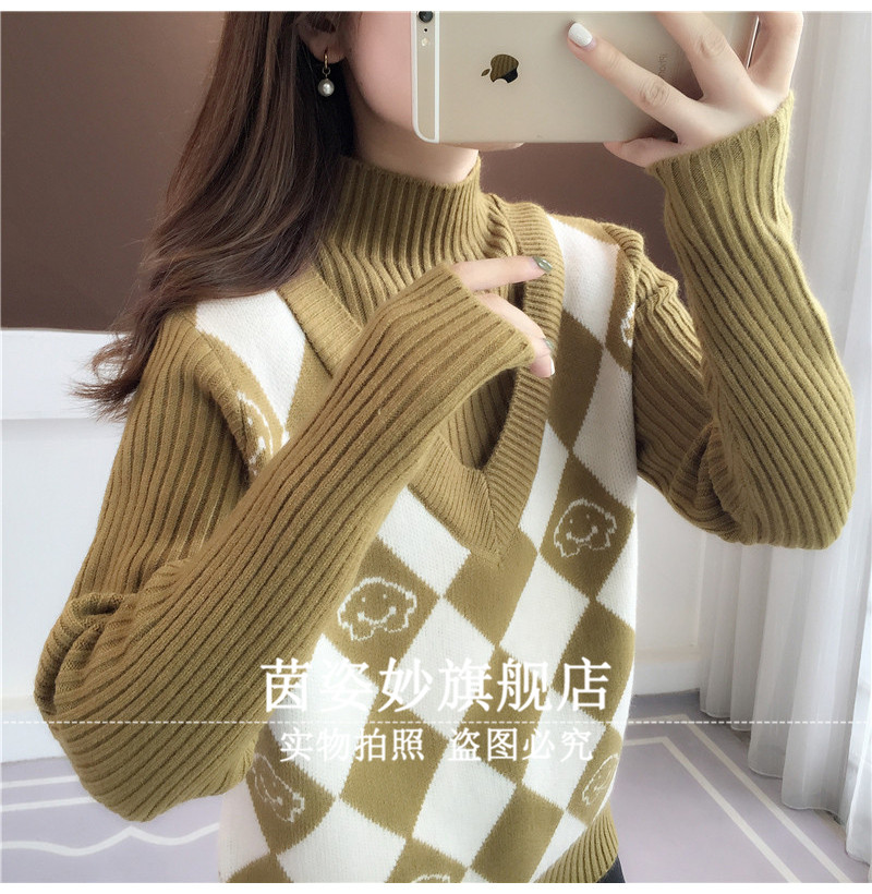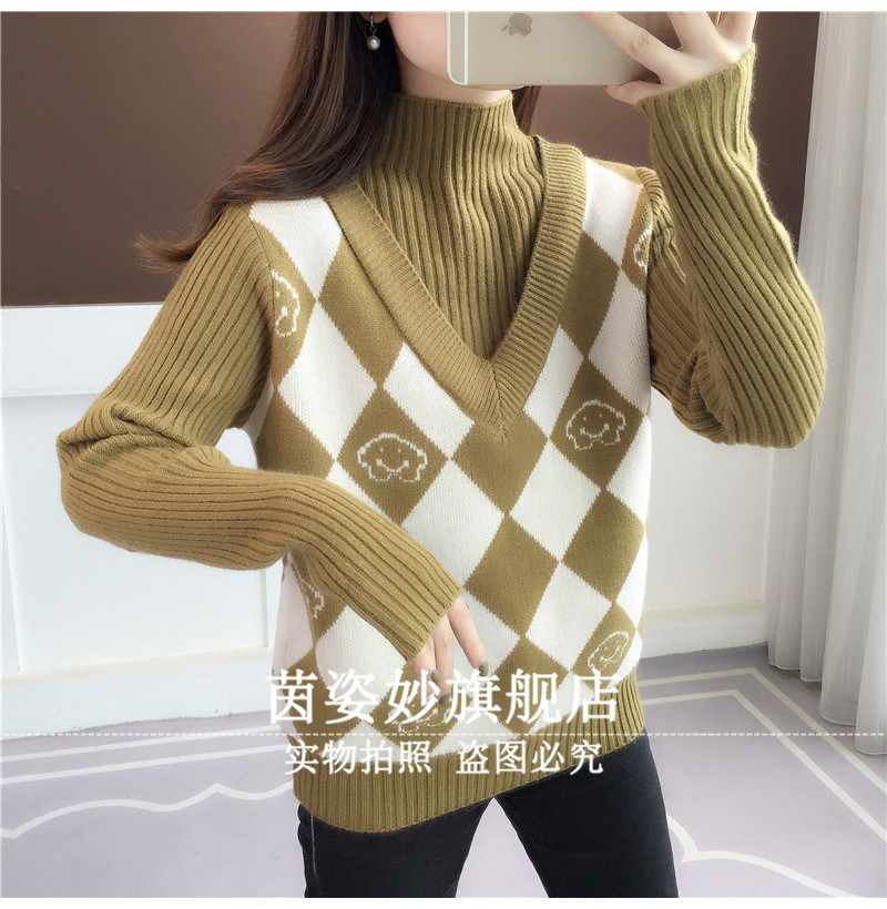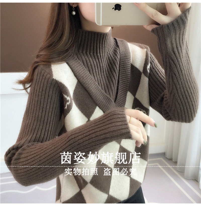 秋季假兩件半高領高級感超好看毛衣女秋冬2024新款針織打底衫上衣