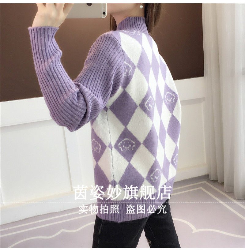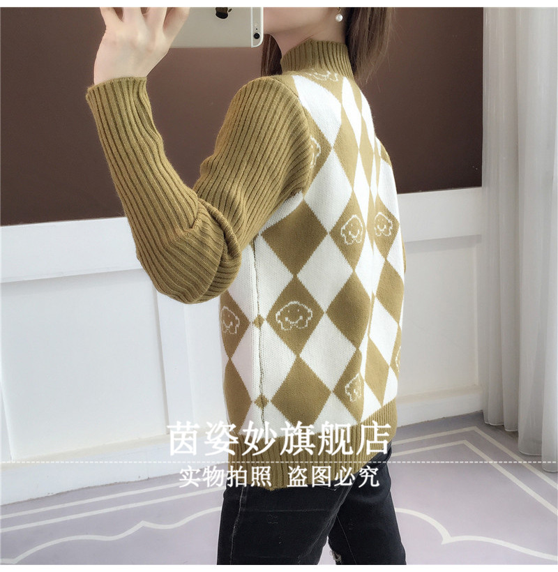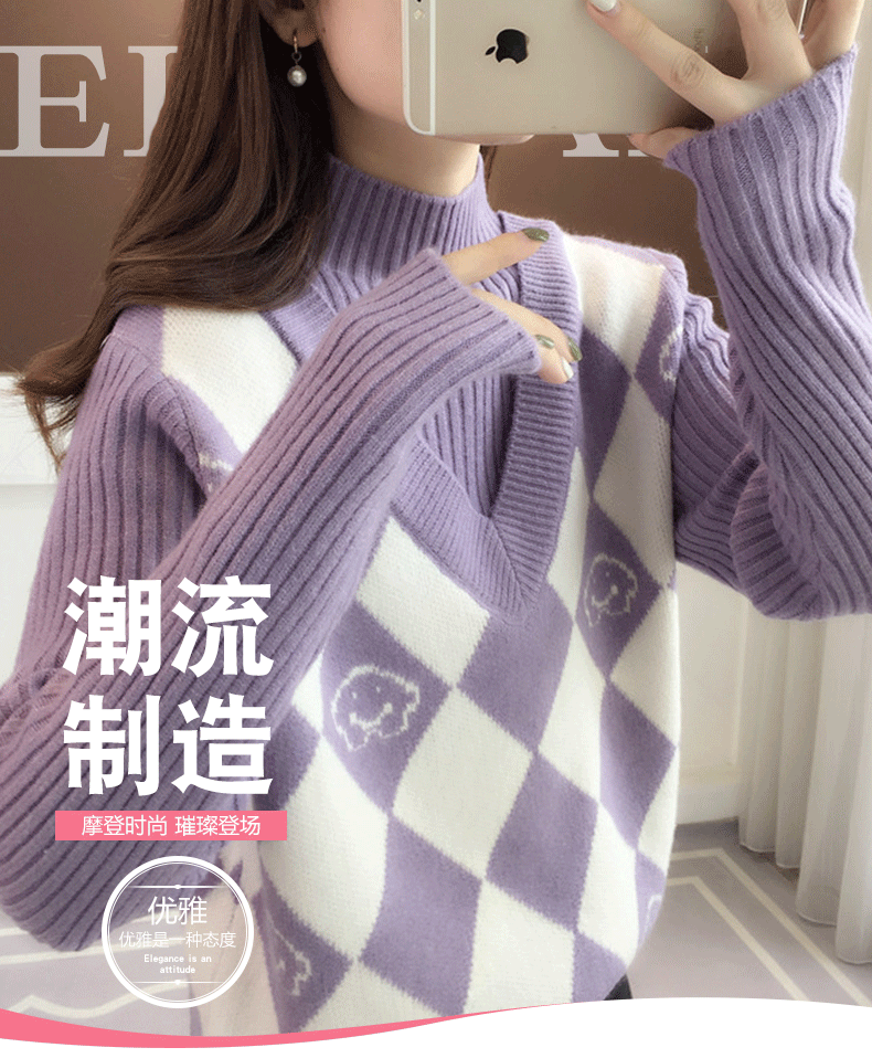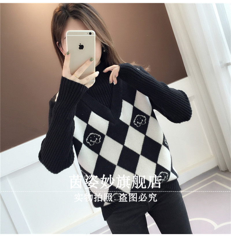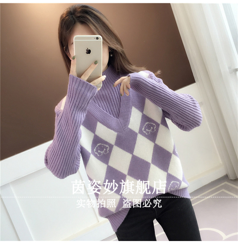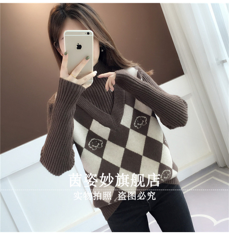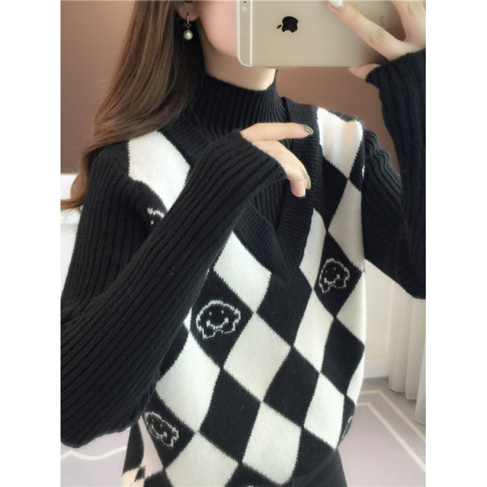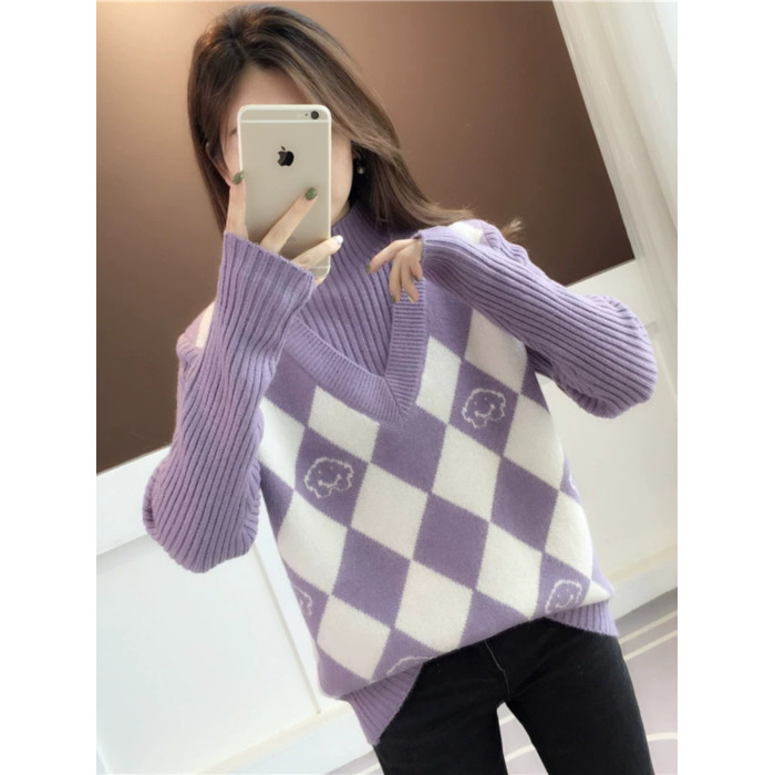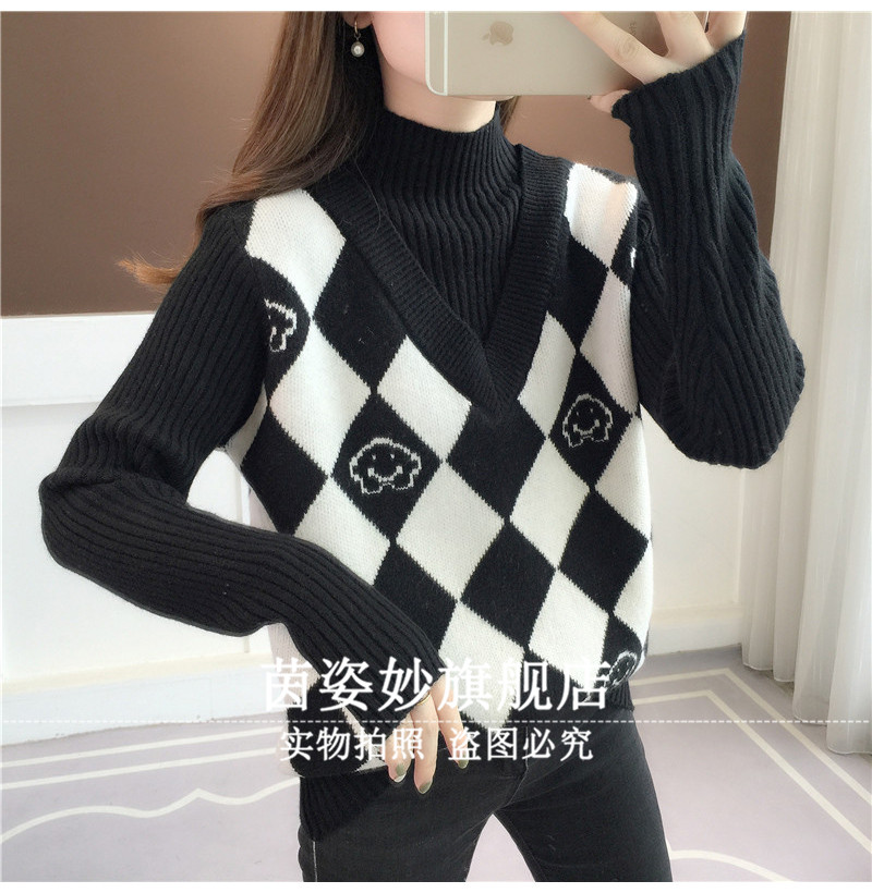 秋季假兩件半高領高級感超好看毛衣女秋冬2024新款針織打底衫上衣