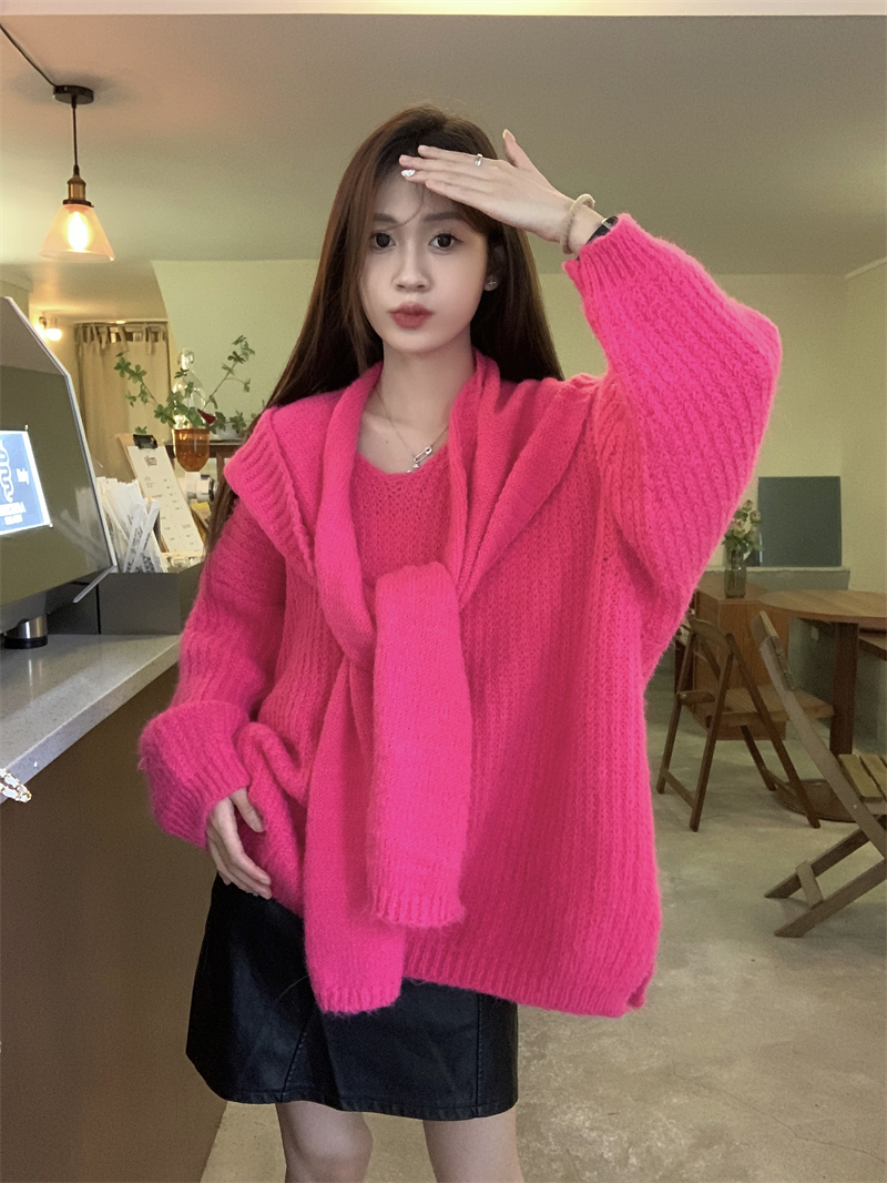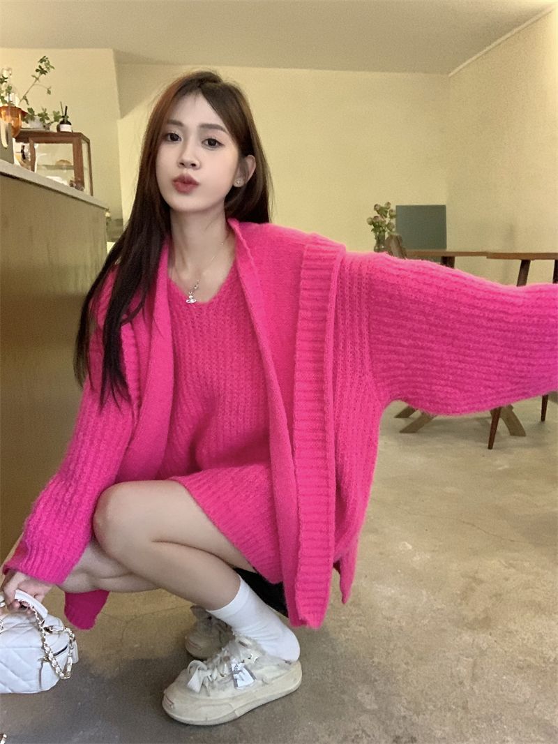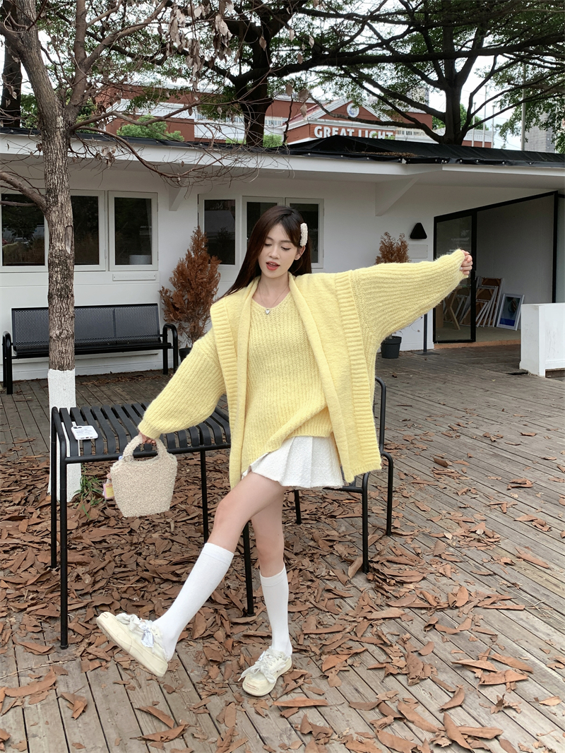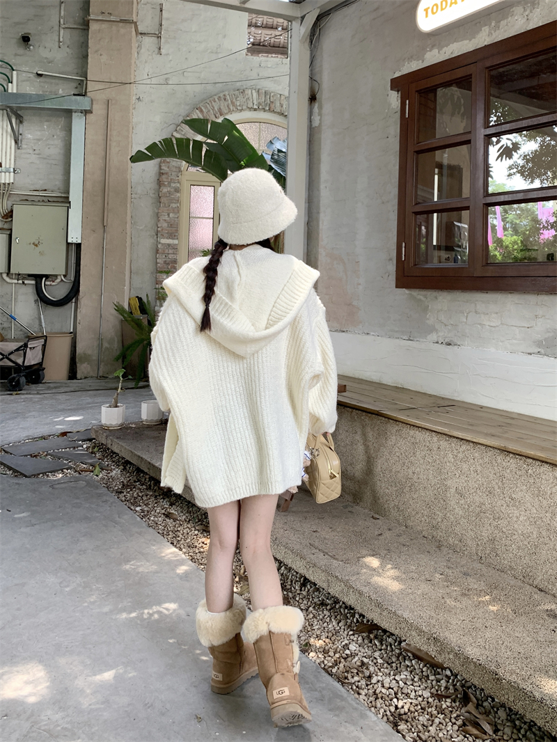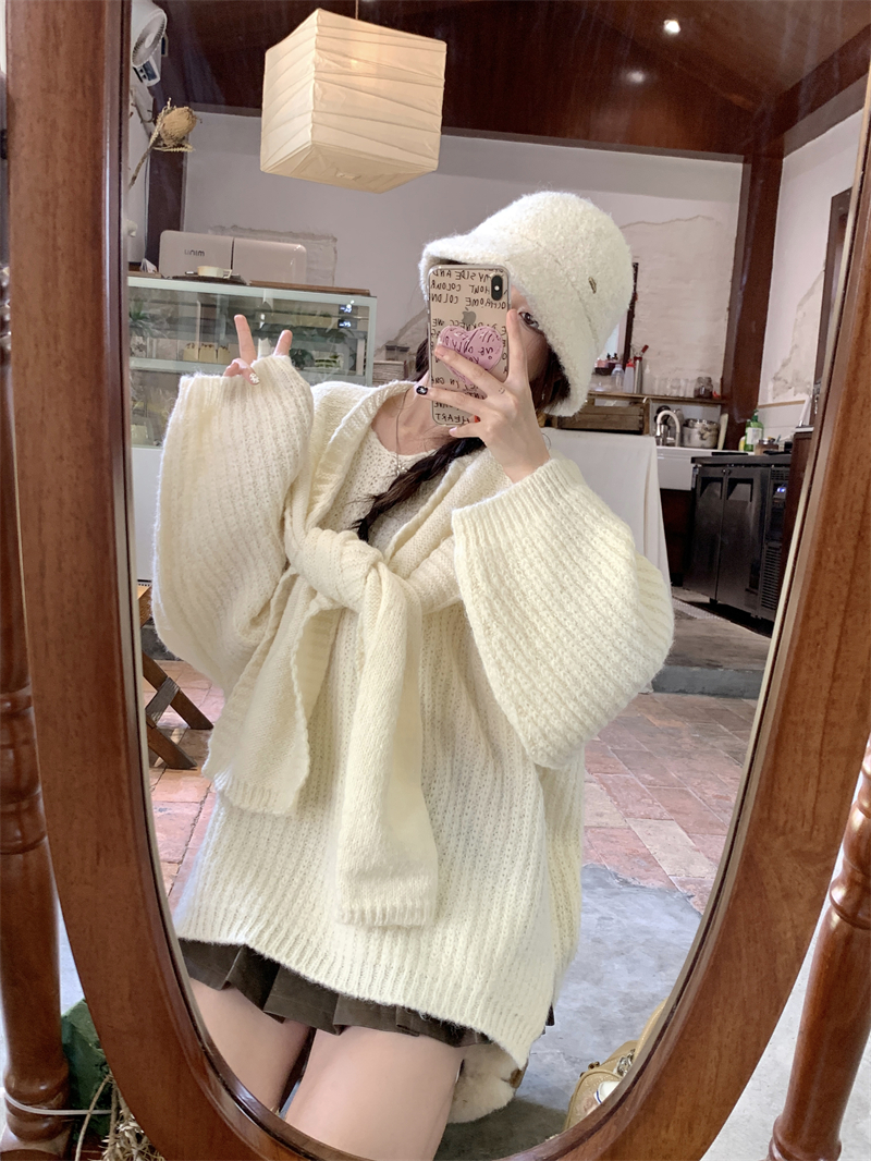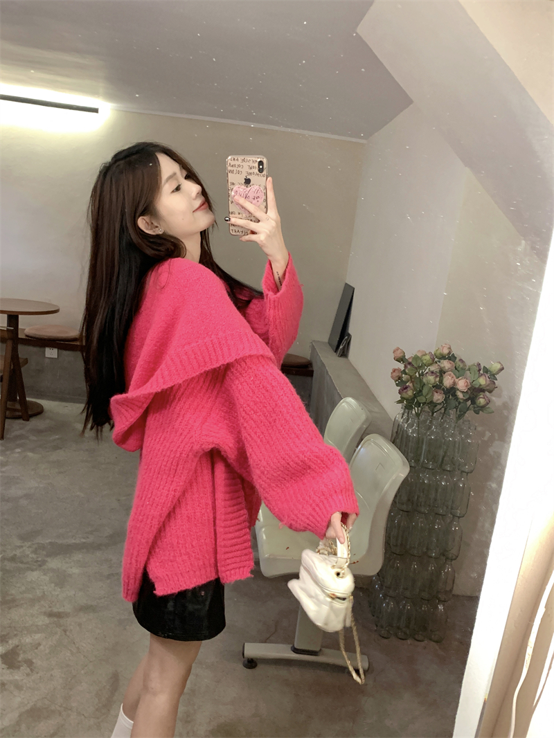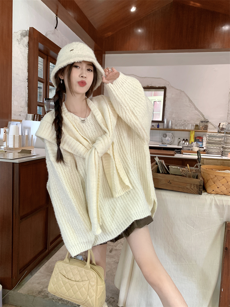 慵懶風寬松長袖連帽毛衣女初秋穿搭韓系爆款通勤針織衫兩件套上衣