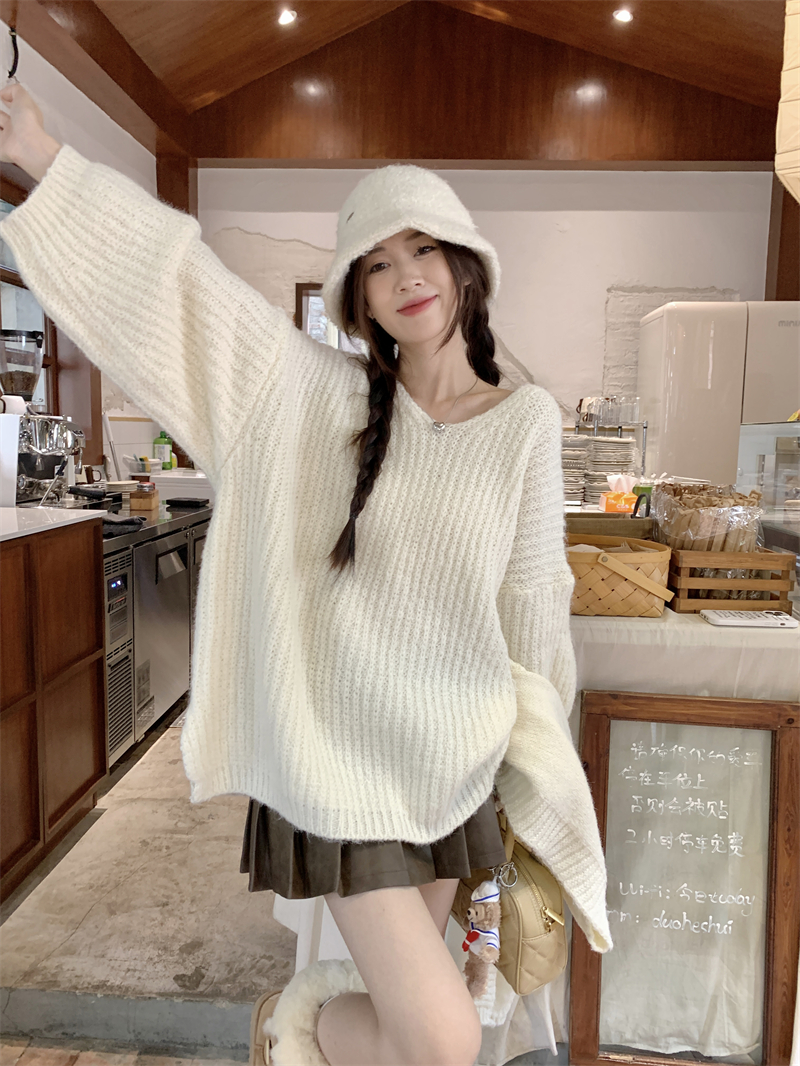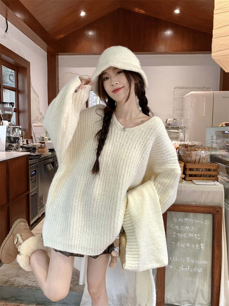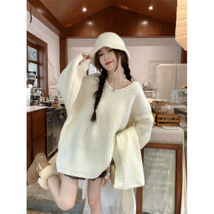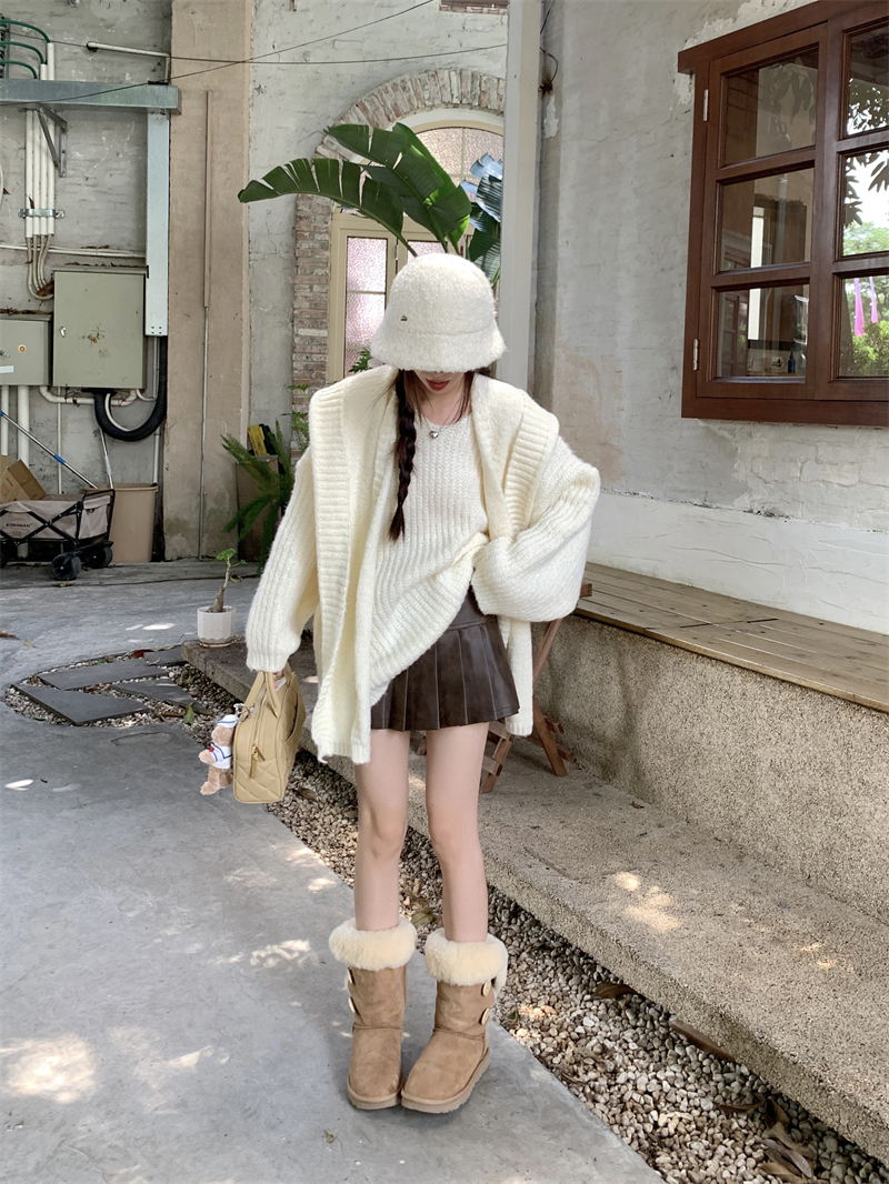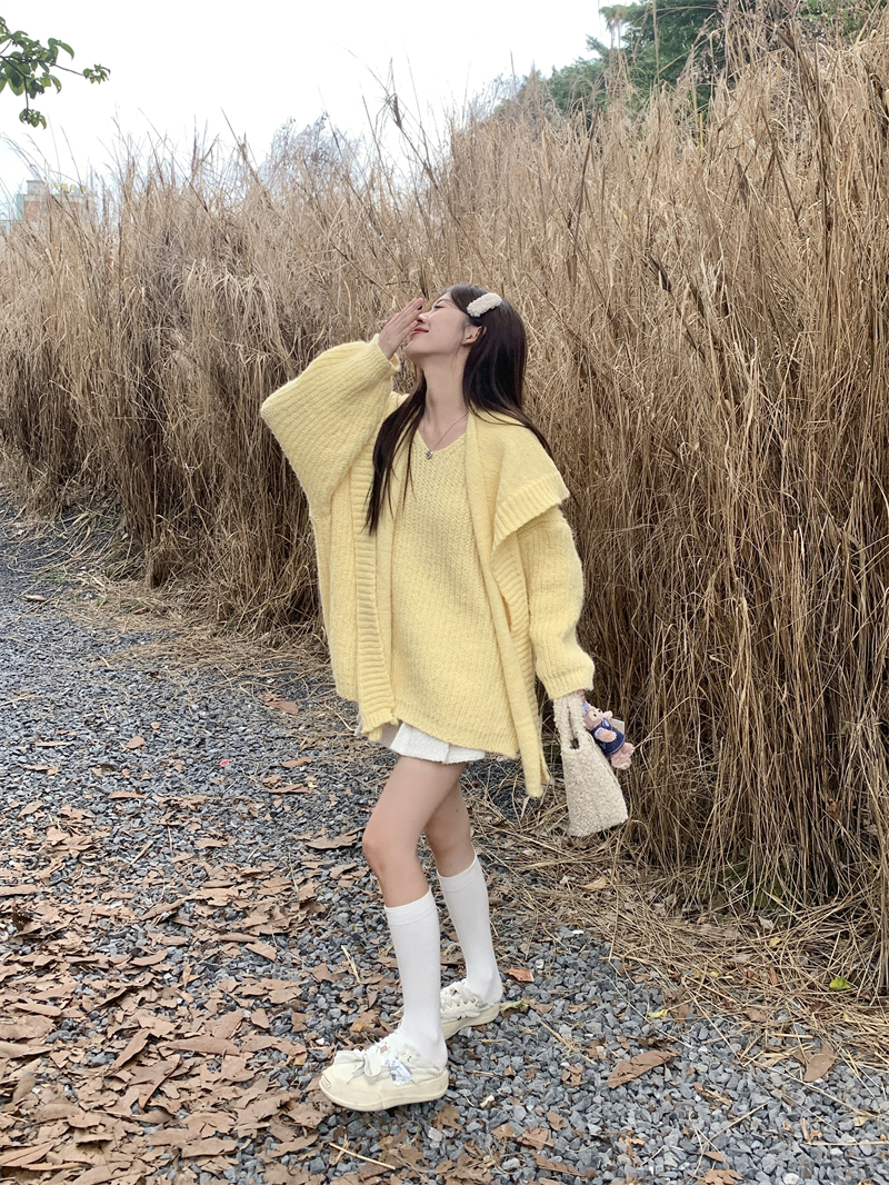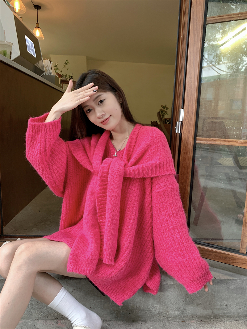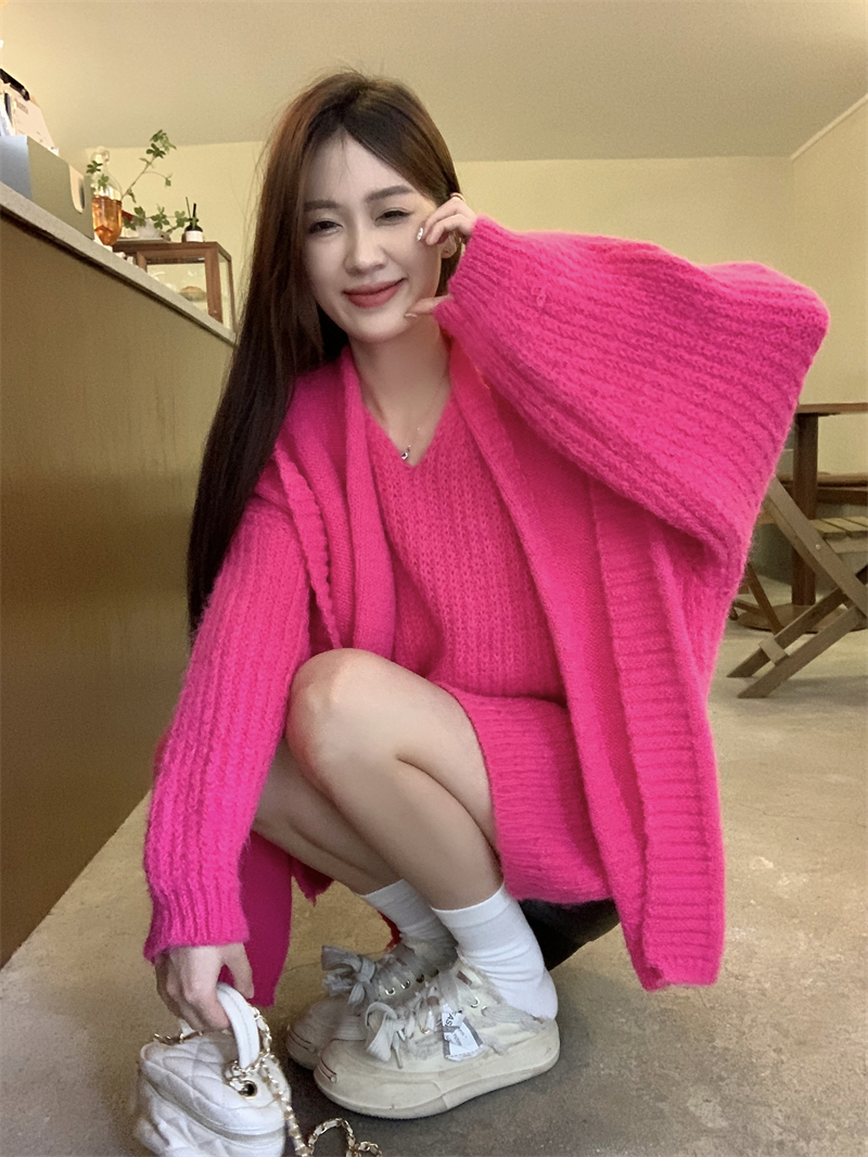 慵懶風寬松長袖連帽毛衣女初秋穿搭韓系爆款通勤針織衫兩件套上衣