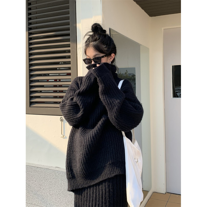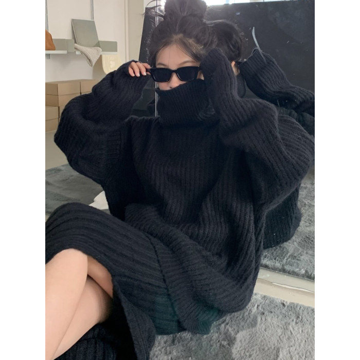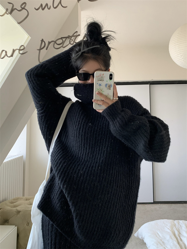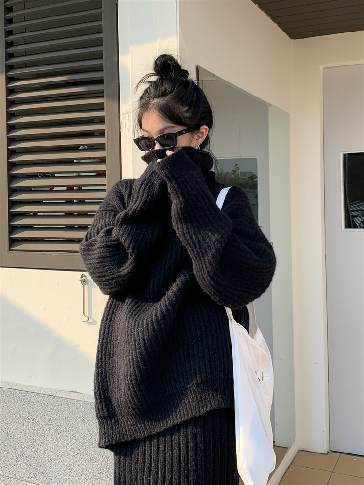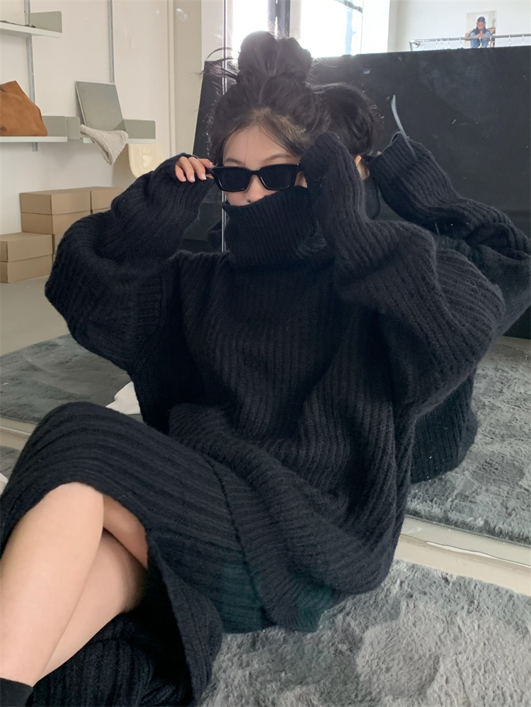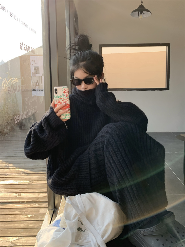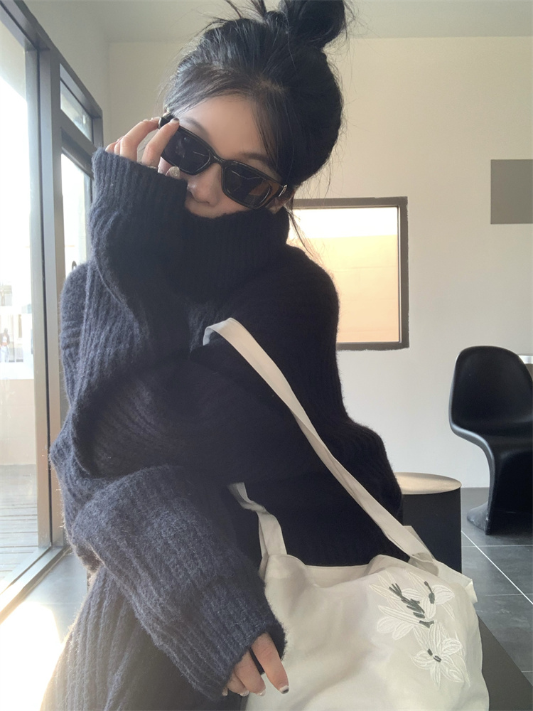 法式慵懶風黑色高領套頭毛衣女秋冬軟糯高級感氣質加厚針織衫上衣