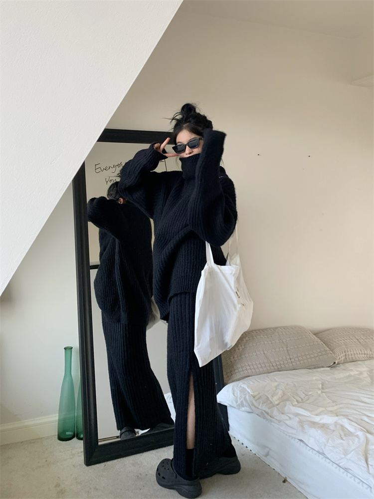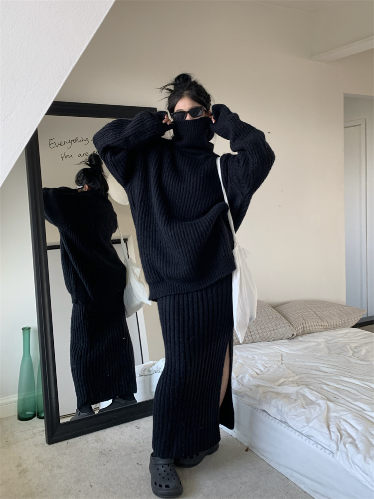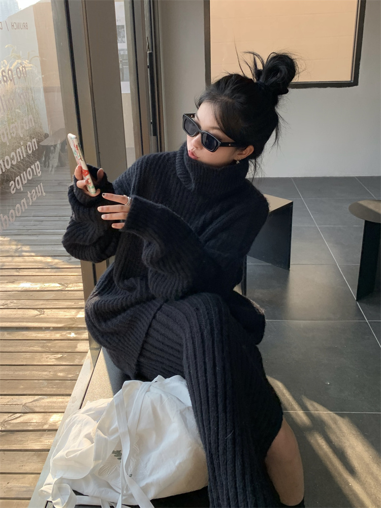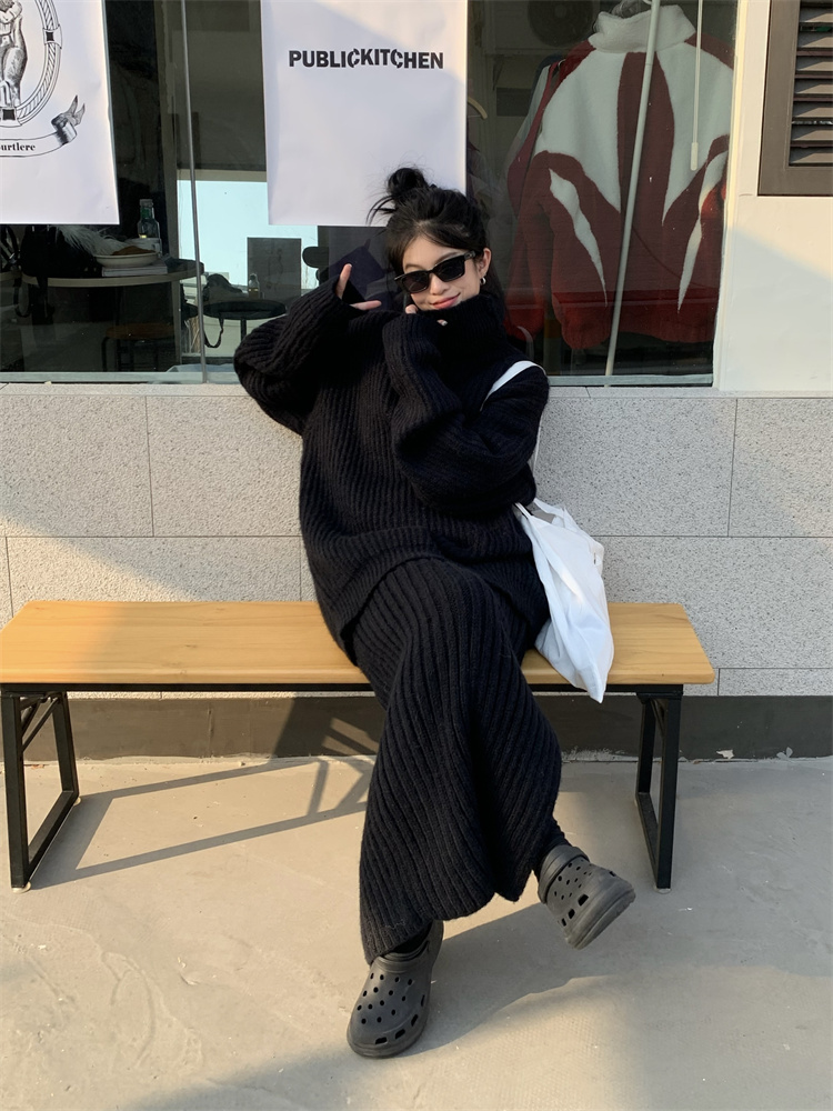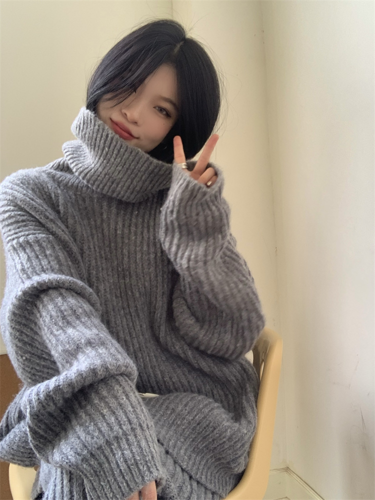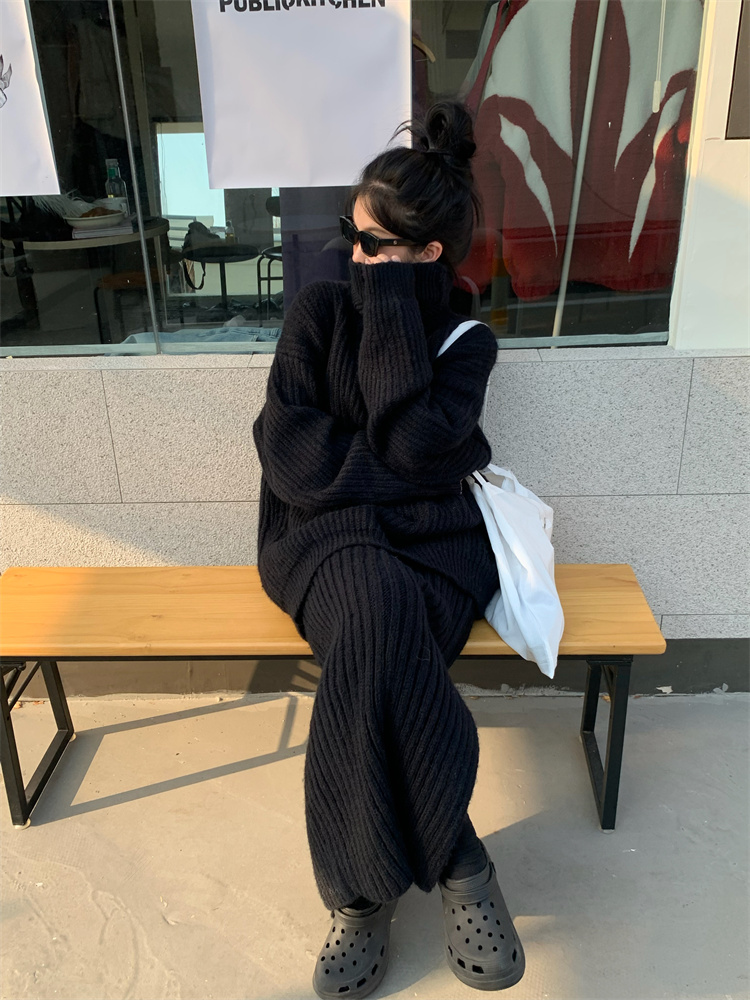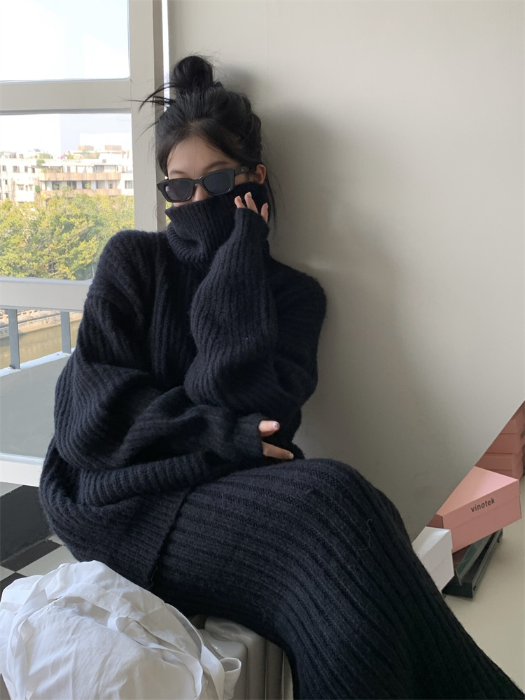 法式慵懶風黑色高領套頭毛衣女秋冬軟糯高級感氣質加厚針織衫上衣