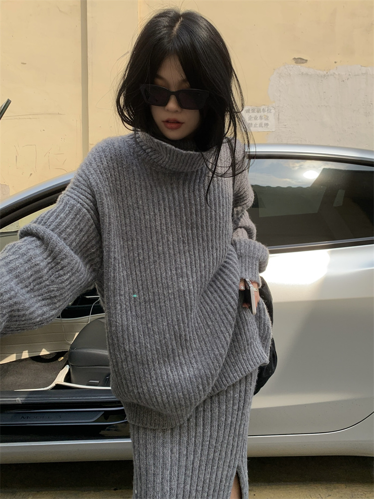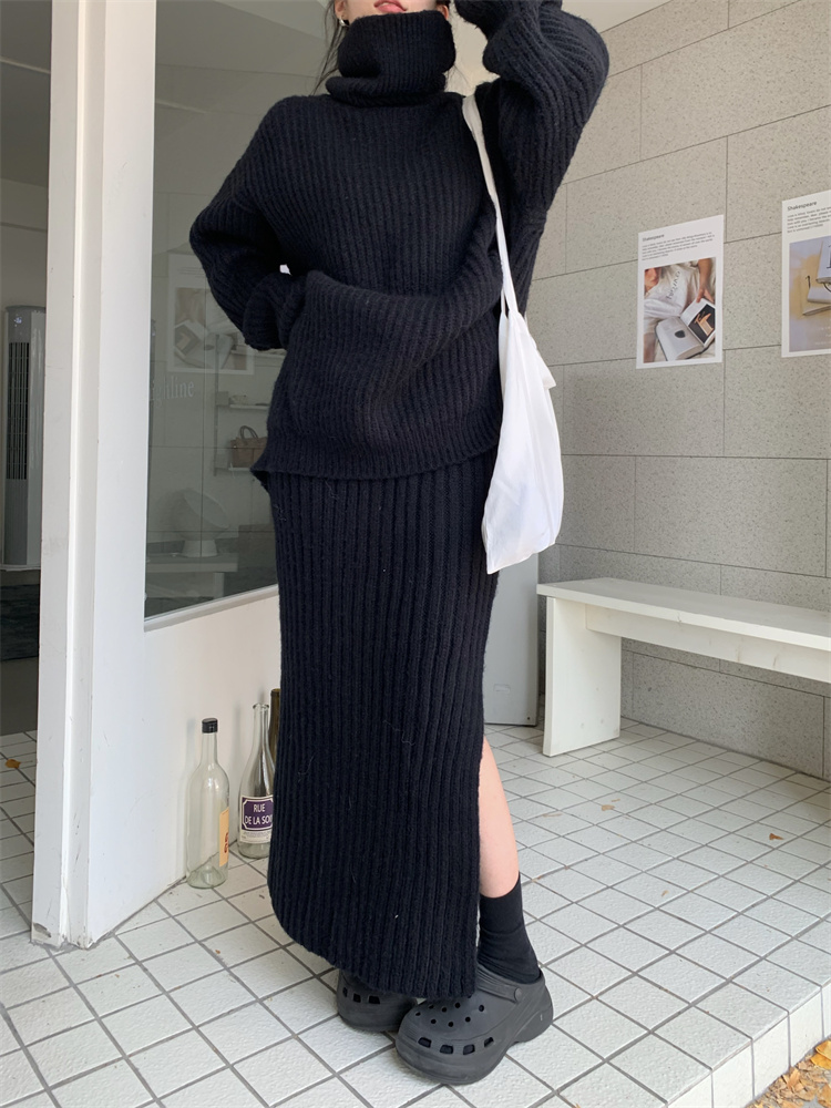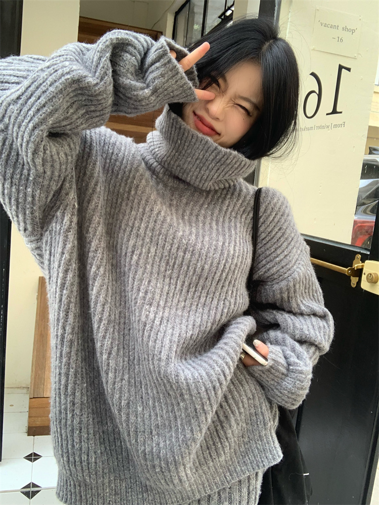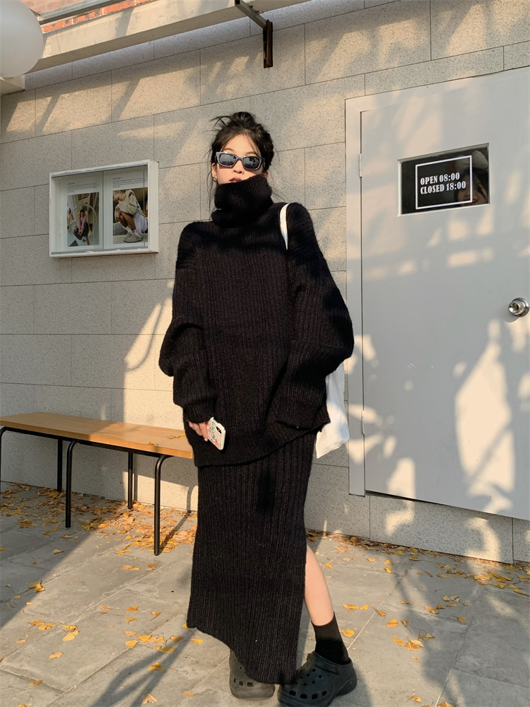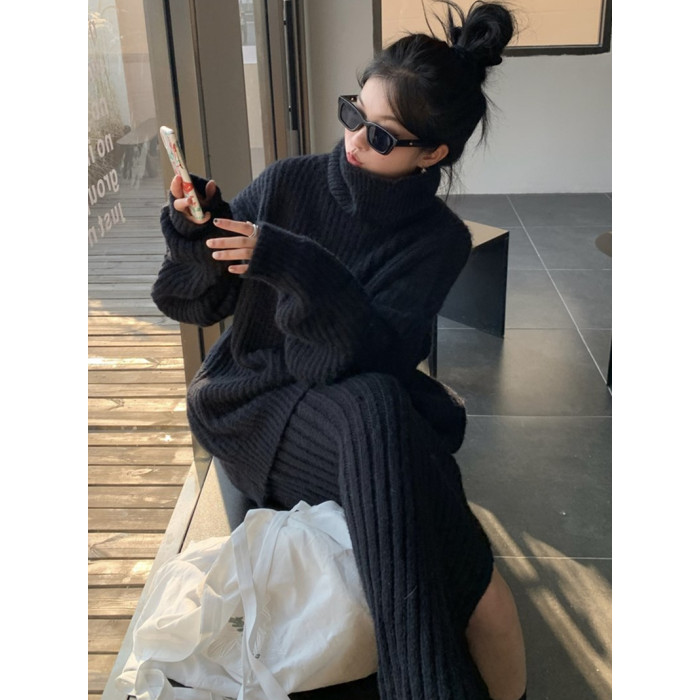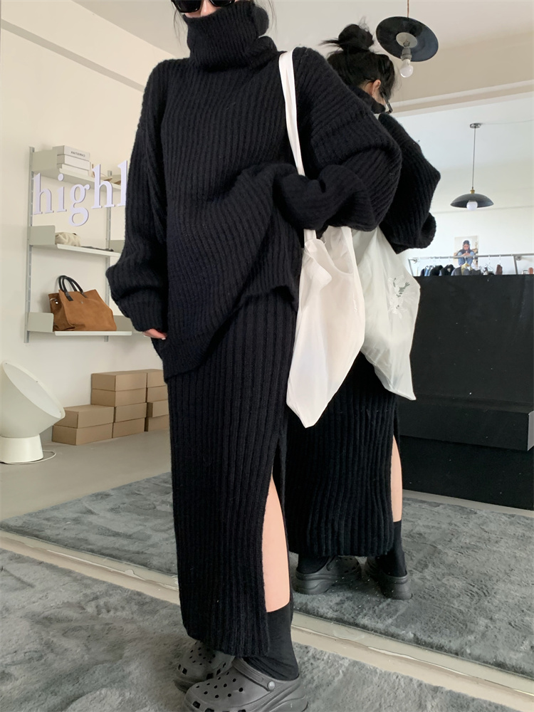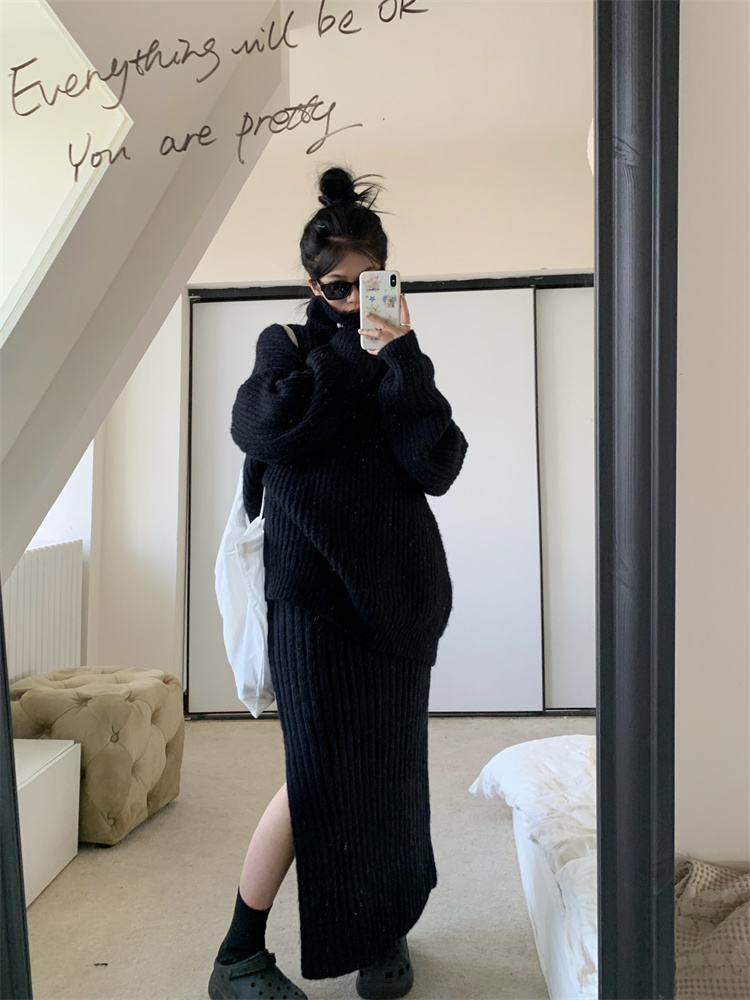 法式慵懶風黑色高領套頭毛衣女秋冬軟糯高級感氣質加厚針織衫上衣