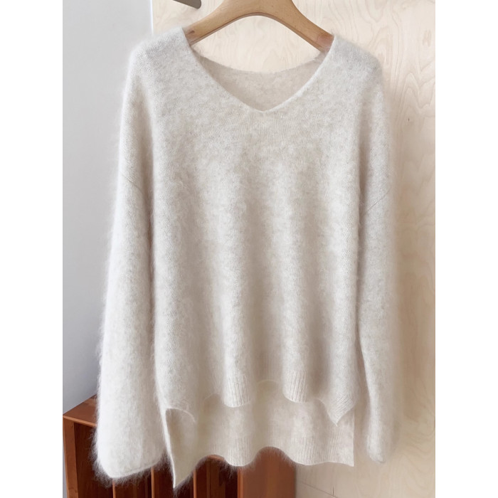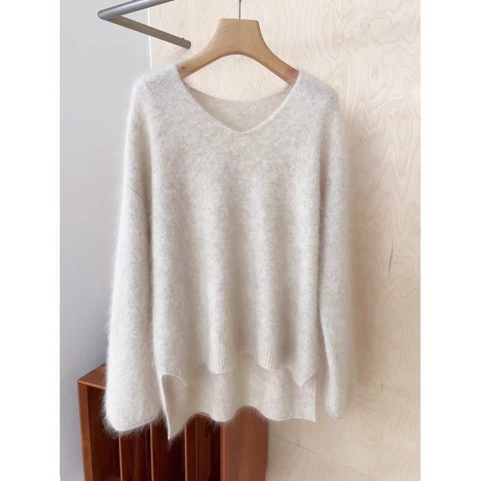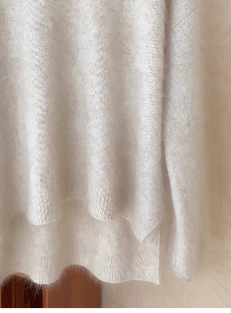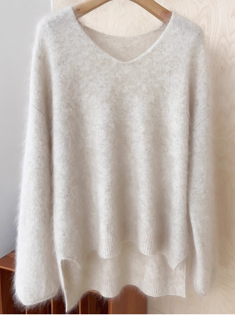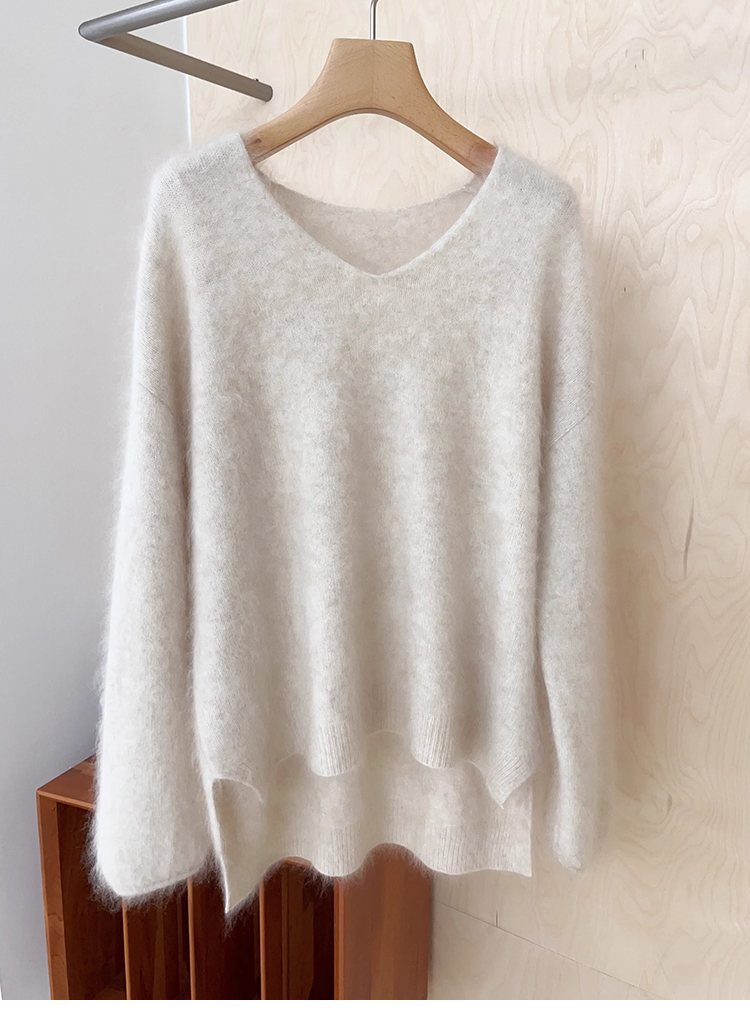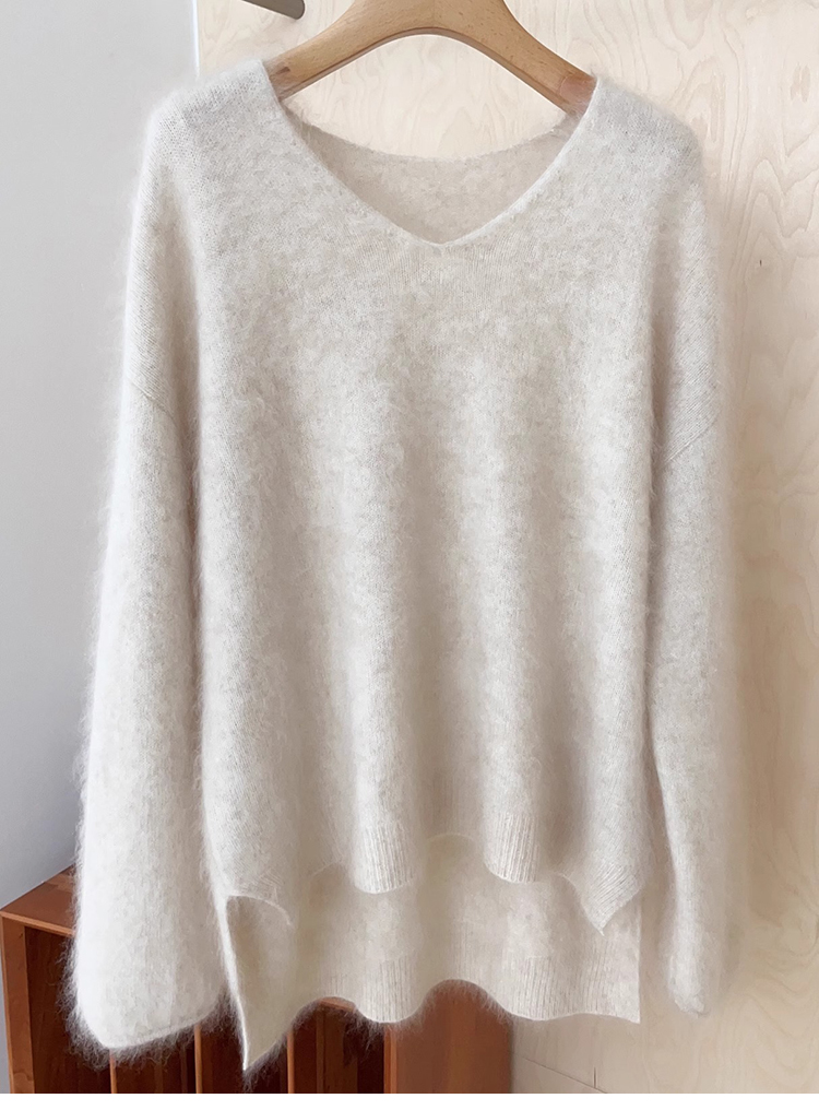 奶fufu浣熊絨v領前短後長毛衣女秋冬溫柔慵懶風高級感軟糯針織衫