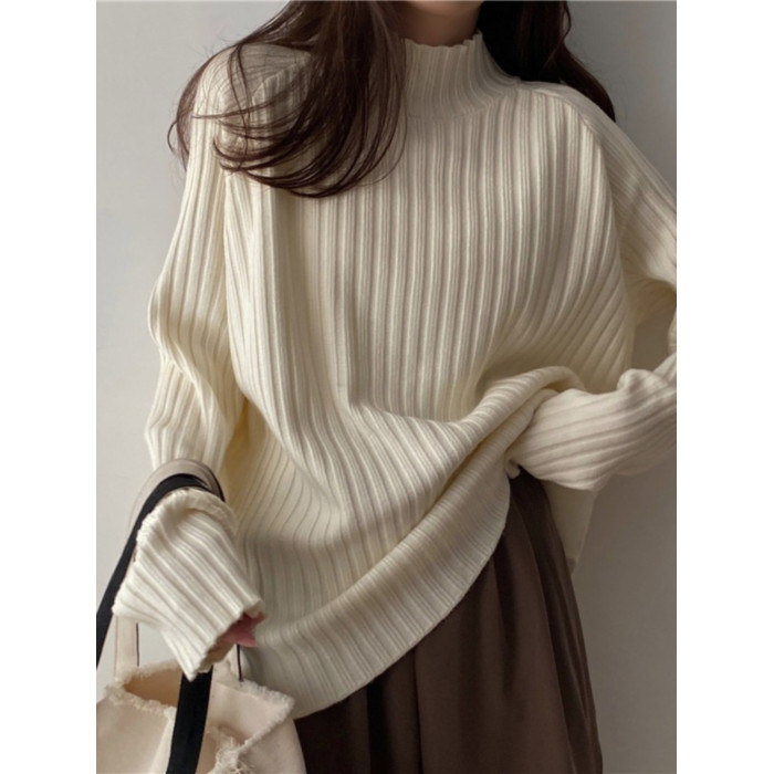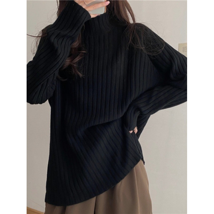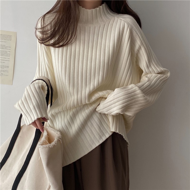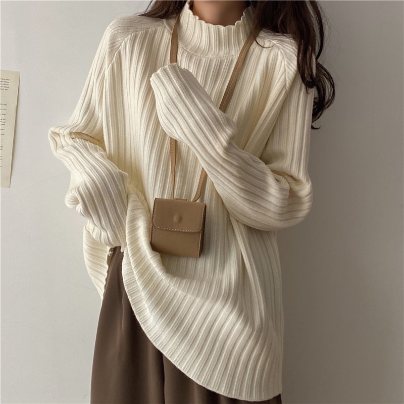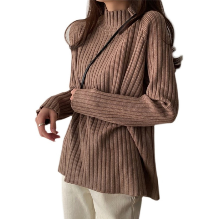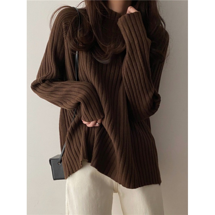 大碼咖色毛衣女早春秋冬季胖mm中長款寬松慵懶風半高領針織打底衫