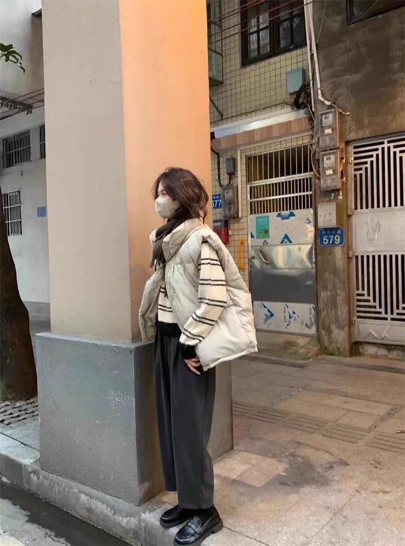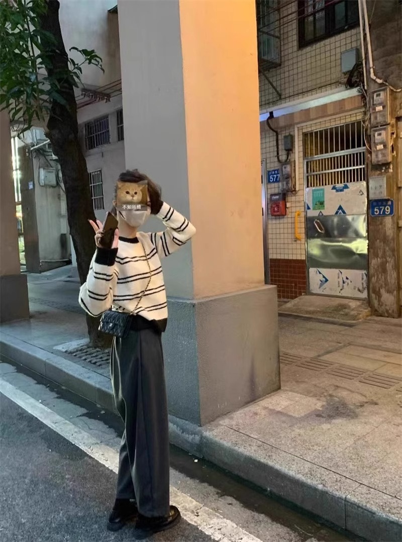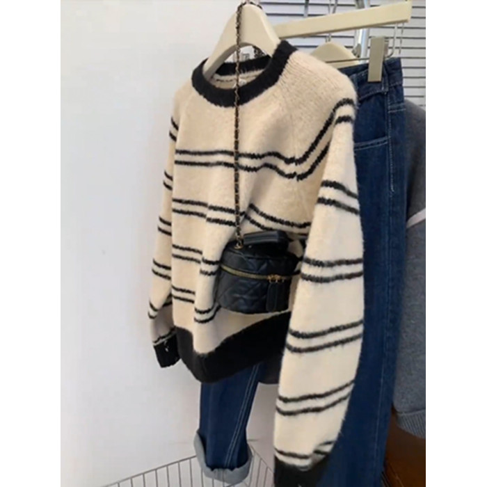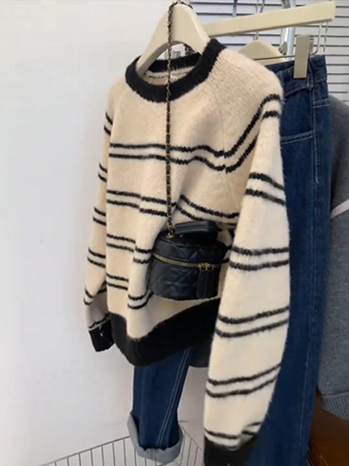 浣熊絨軟糯套頭短款條紋毛衣女秋冬冬季加厚內搭小個子打底針織衫