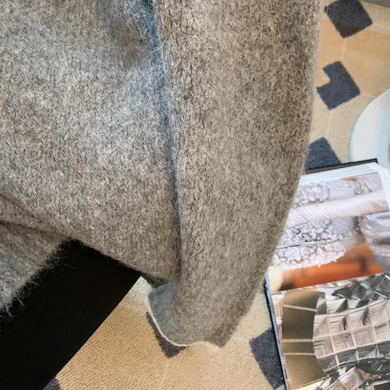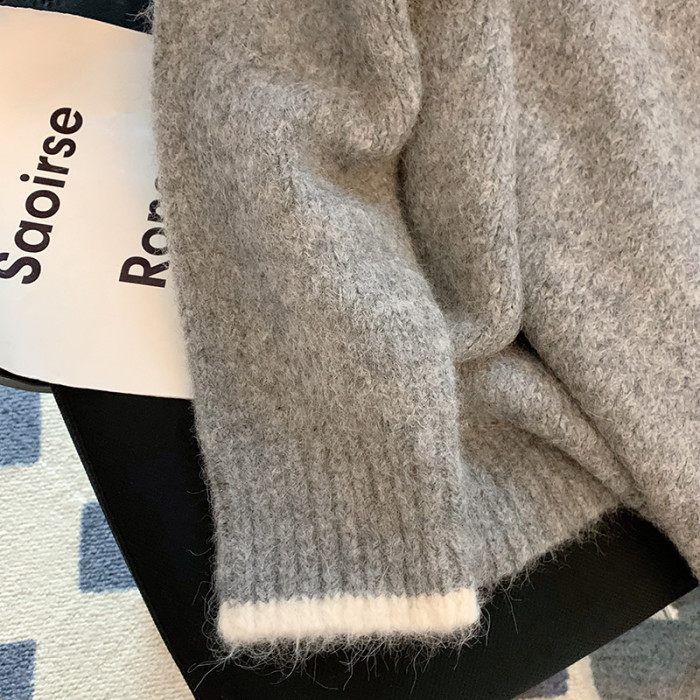 韓系復古灰色毛衣女秋冬2023新款小衆軟糯慵懶風寬松針織打底上衣