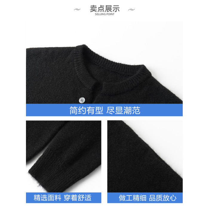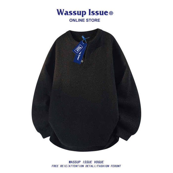 WASSUP ISSUE美式痞帥羊毛衫男款春秋季潮流寬松休閒紐釦領上衣男
