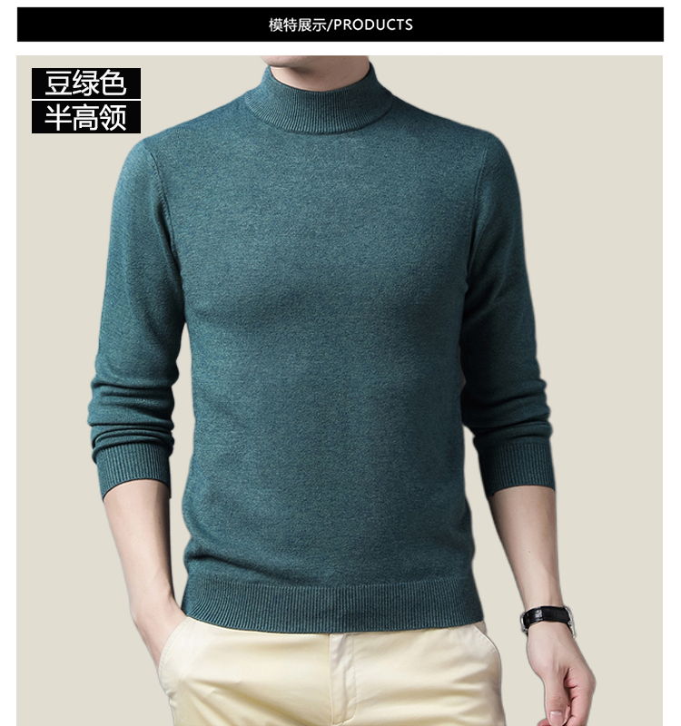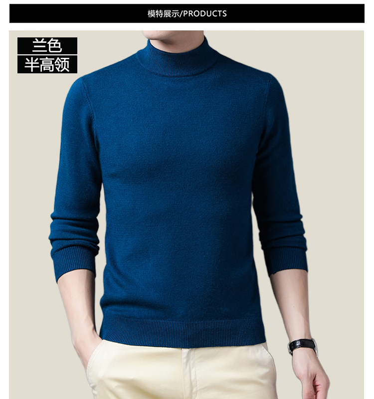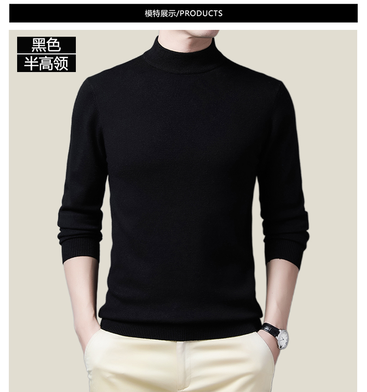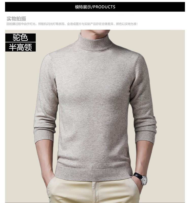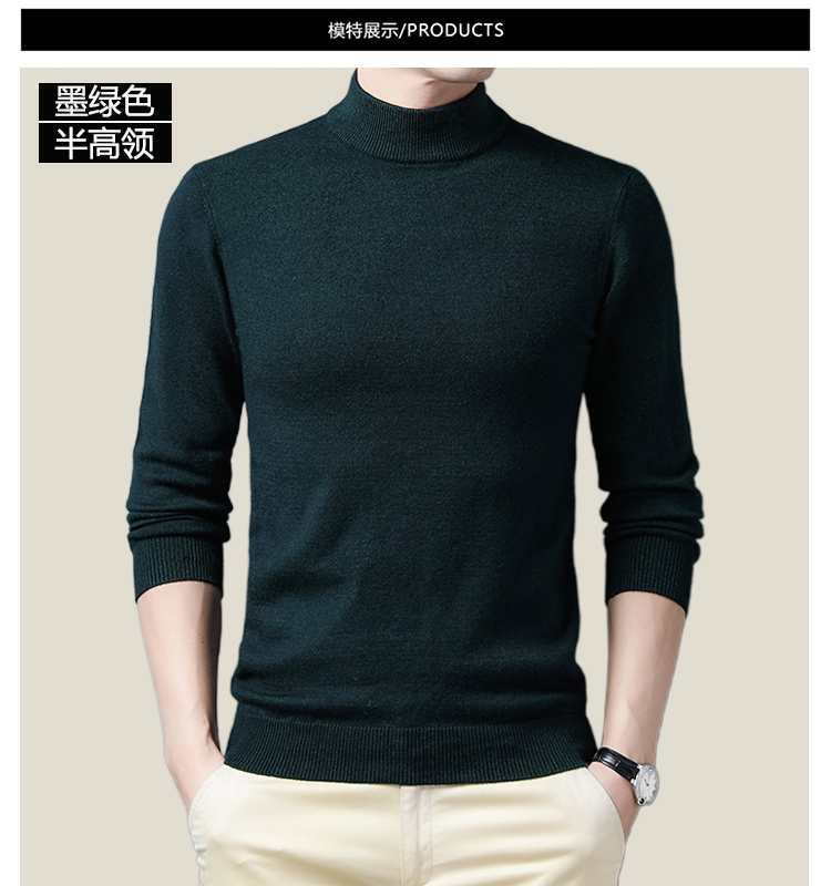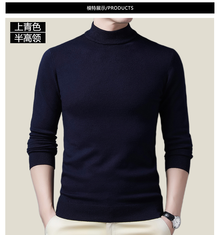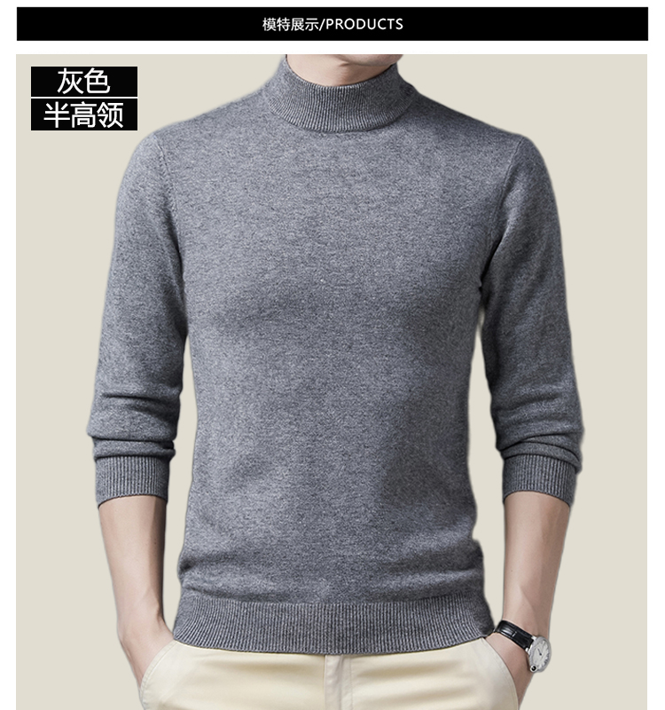 鄂爾多斯市半高領100%純羊毛衫男休閒中厚保暖毛衣針織打底羊絨衫