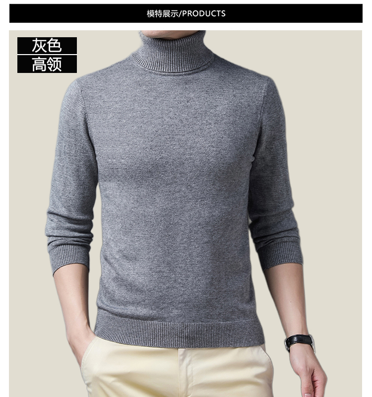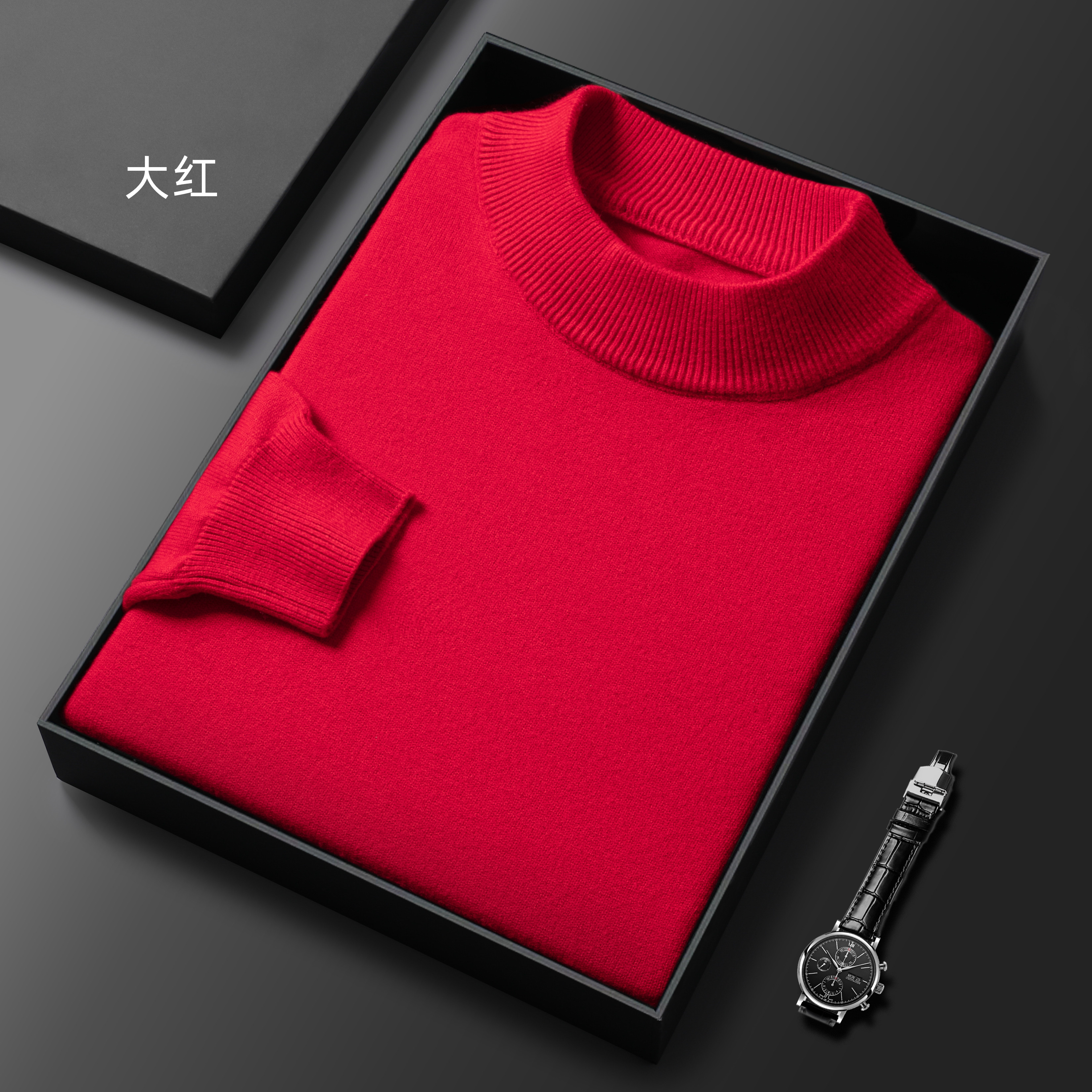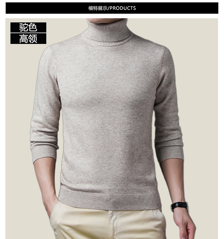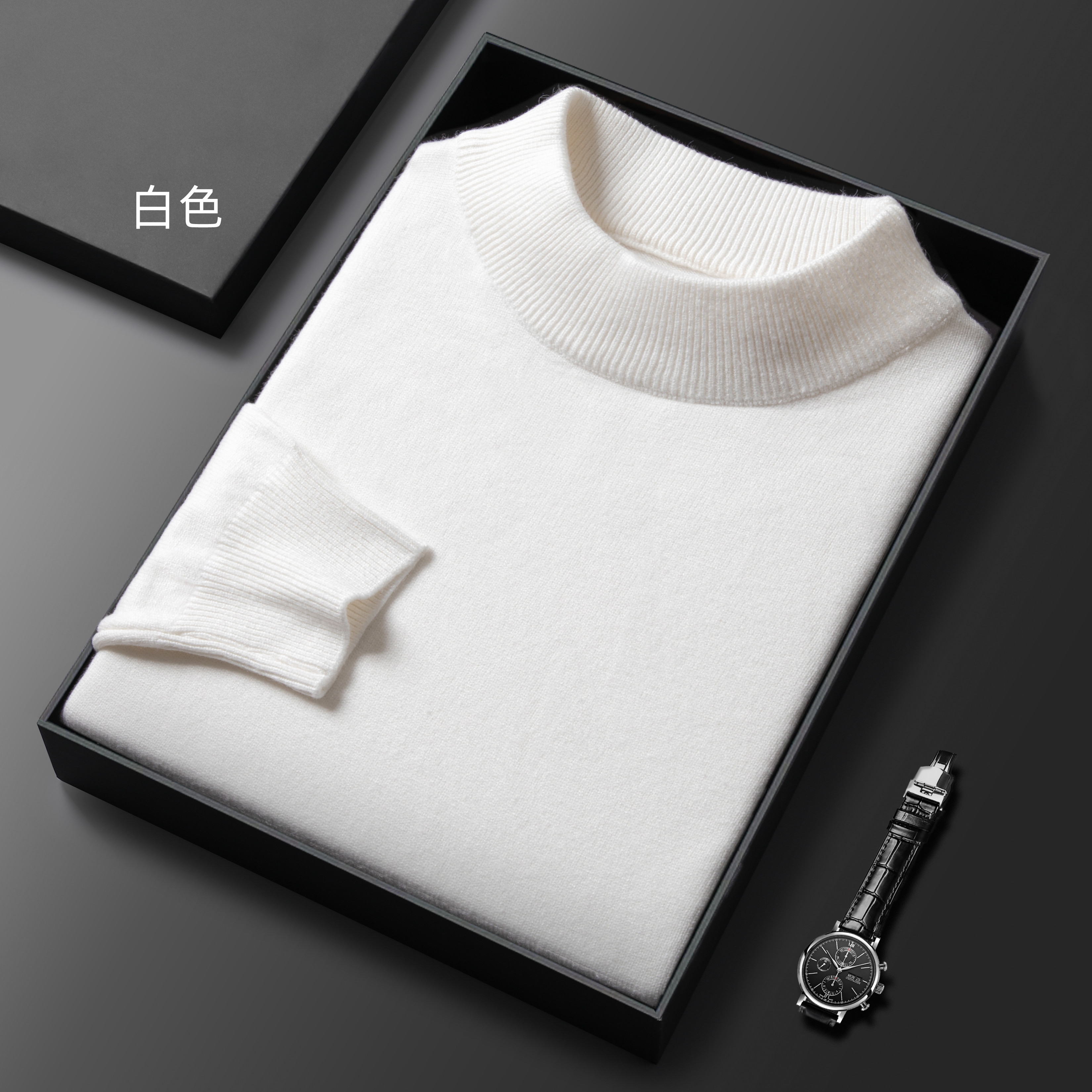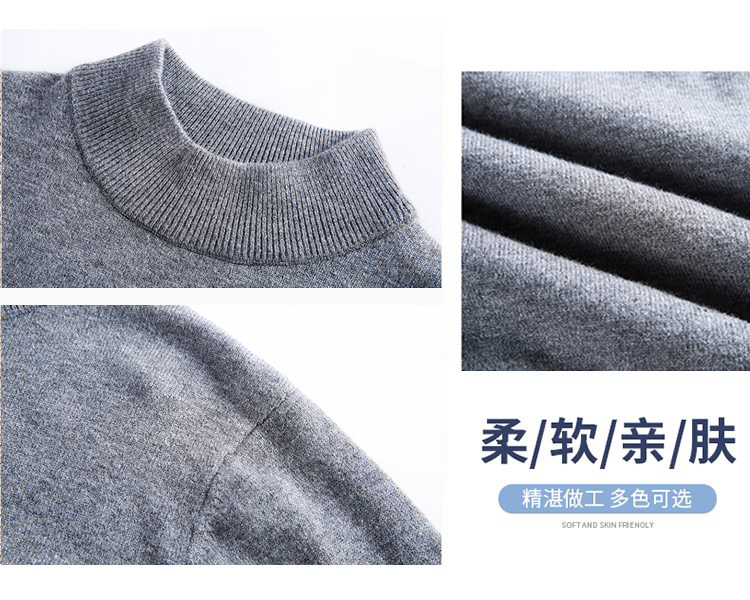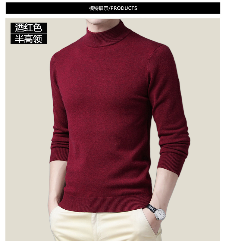 鄂爾多斯市半高領100%純羊毛衫男休閒中厚保暖毛衣針織打底羊絨衫