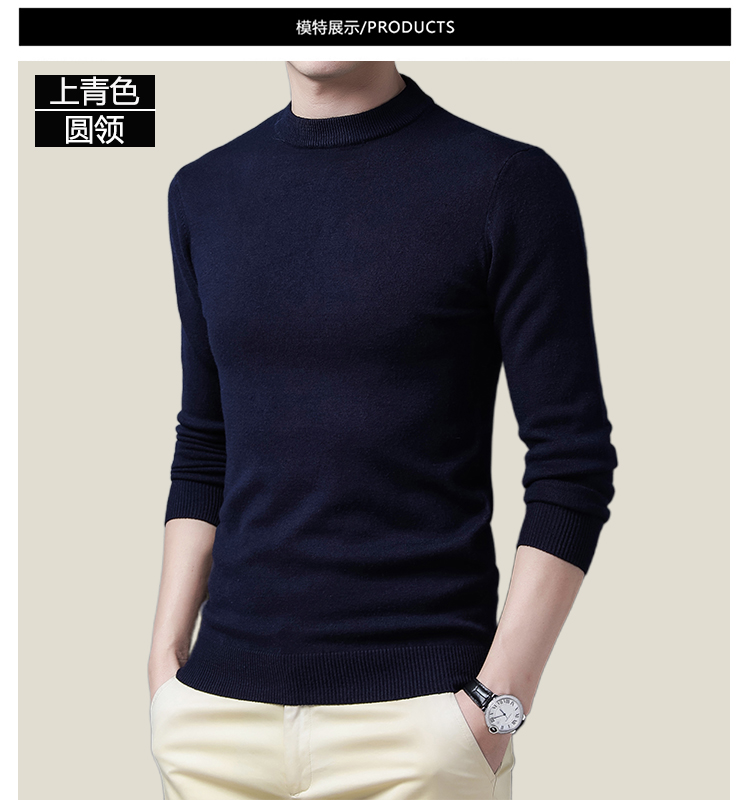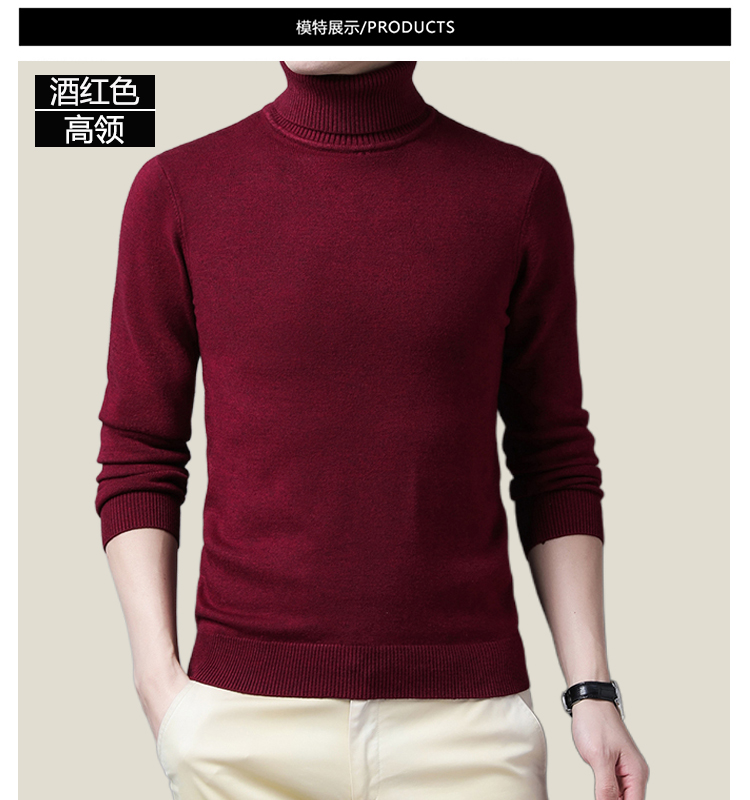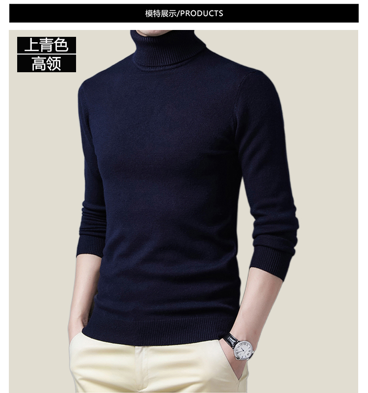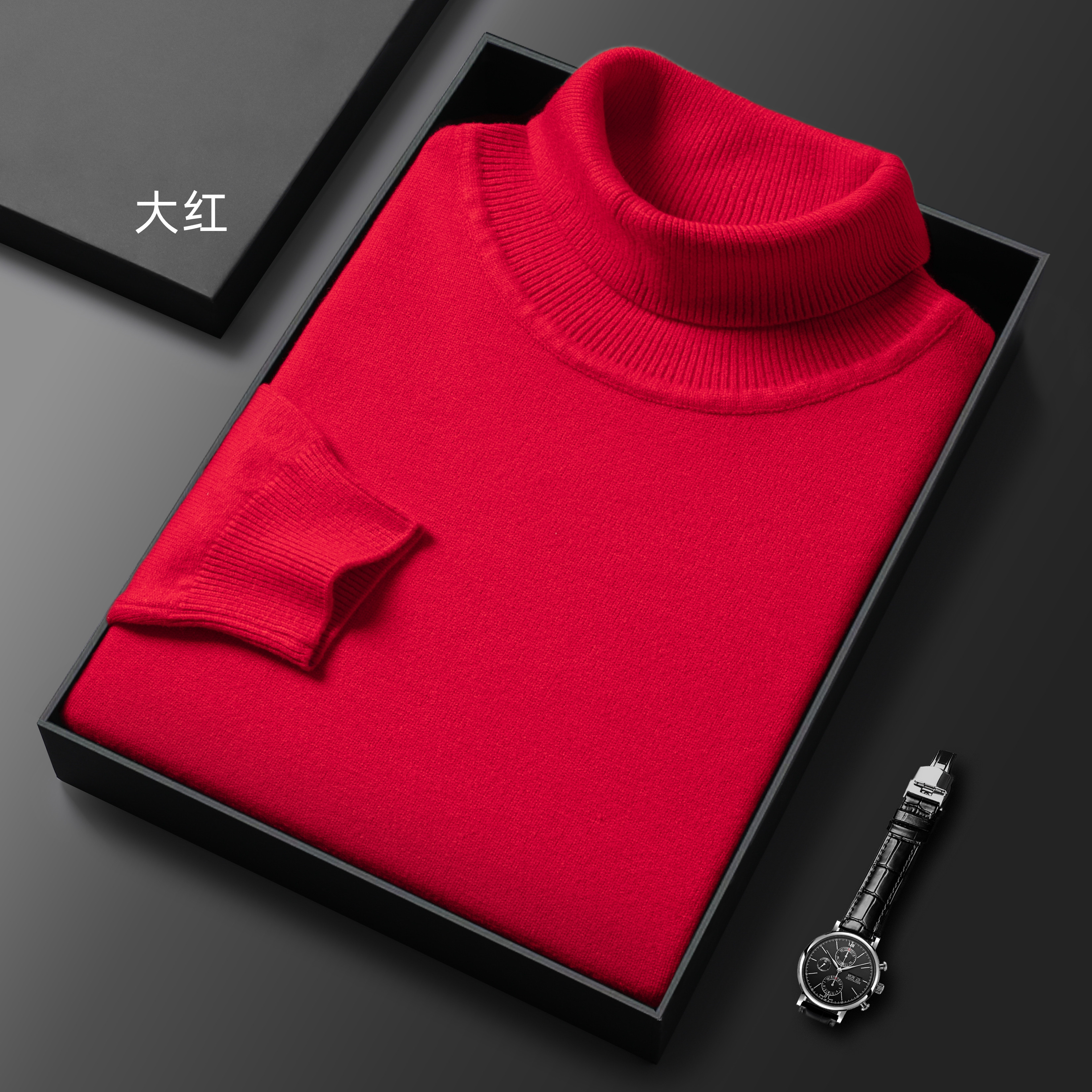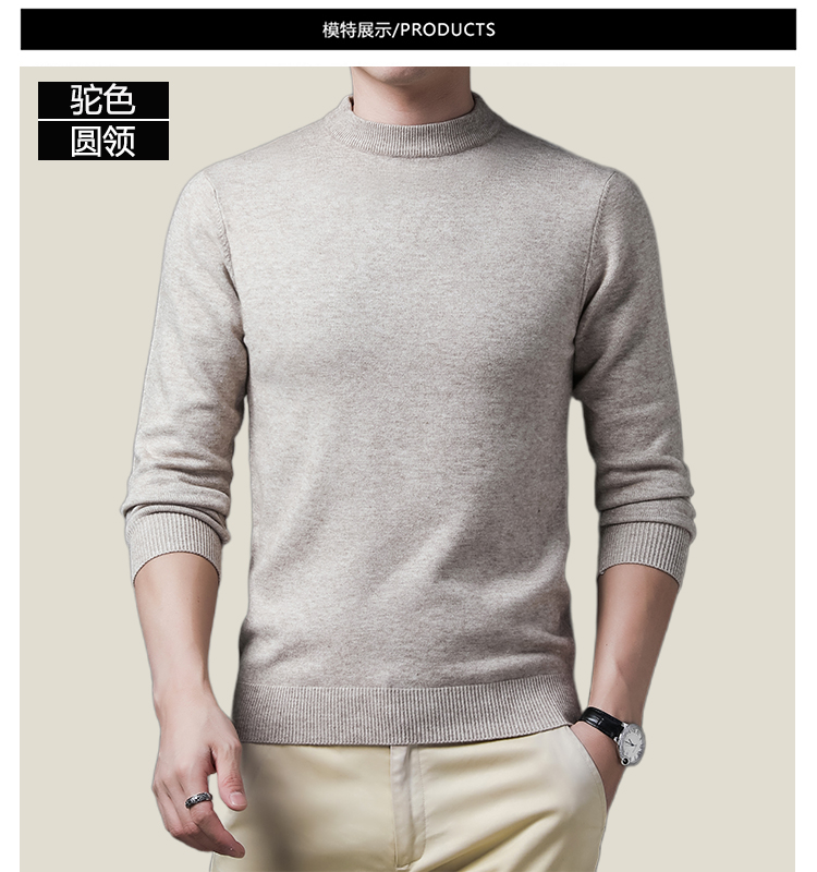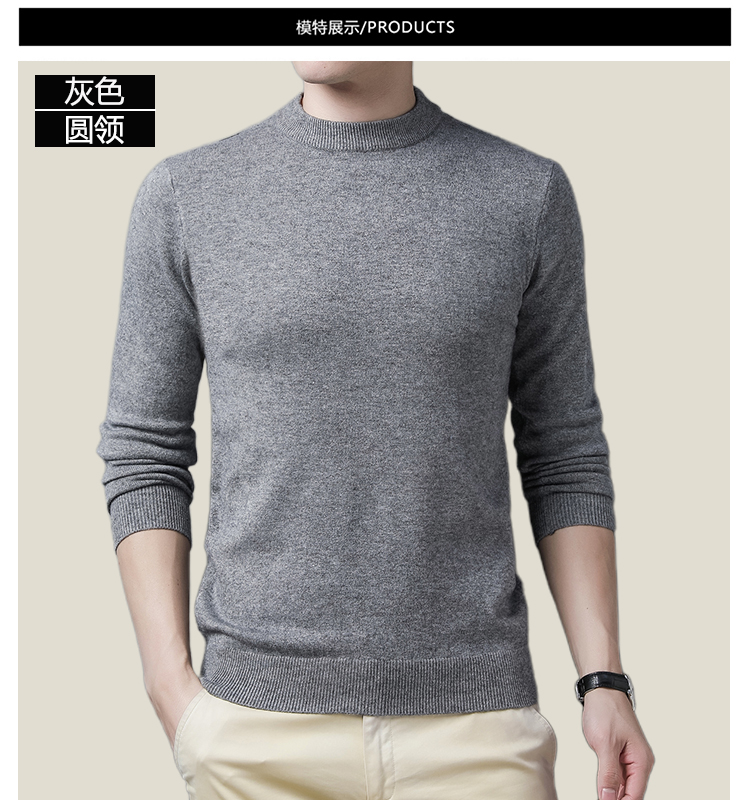 鄂爾多斯市半高領100%純羊毛衫男休閒中厚保暖毛衣針織打底羊絨衫